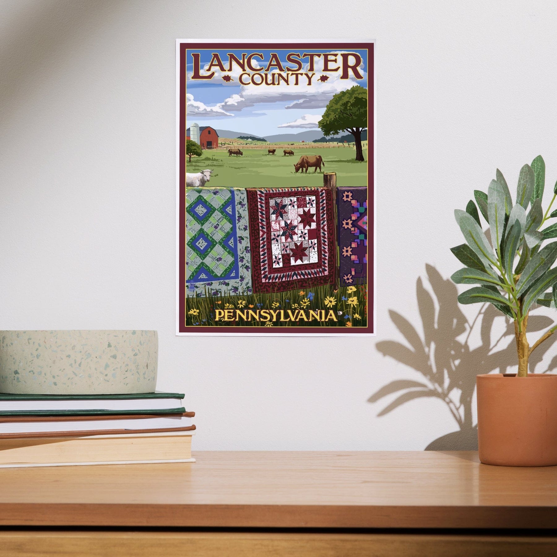 Lancaster County, Pennsylvania, View with Quilts on Fence, Art & Giclee Prints - Lantern Press