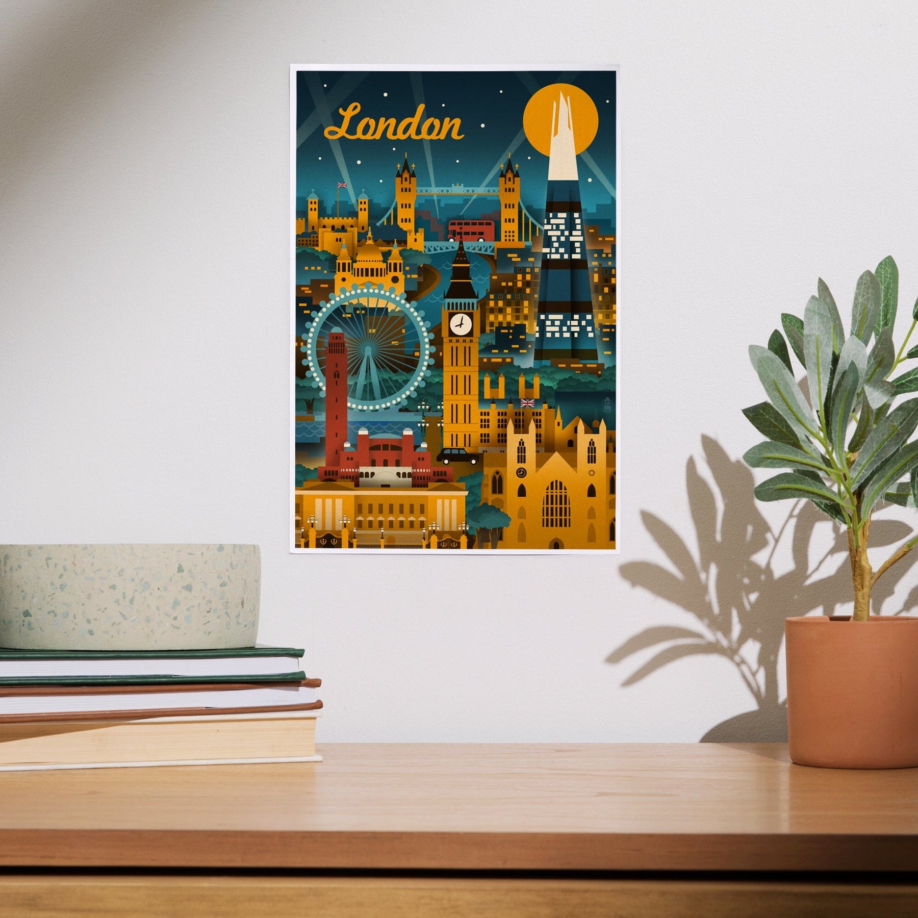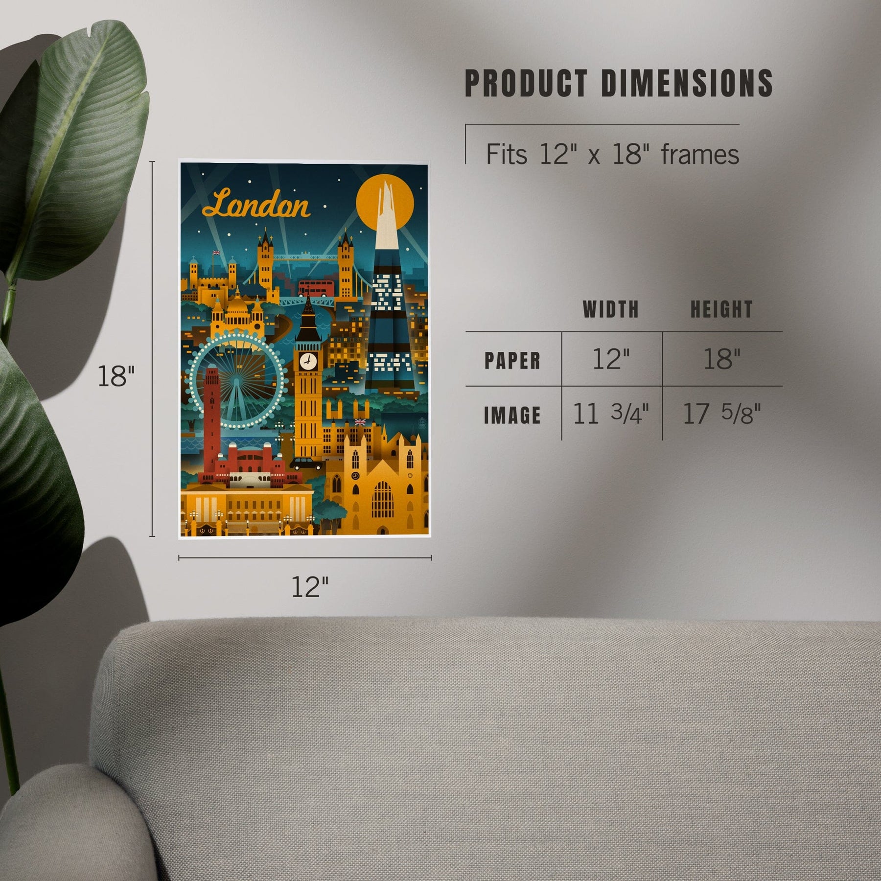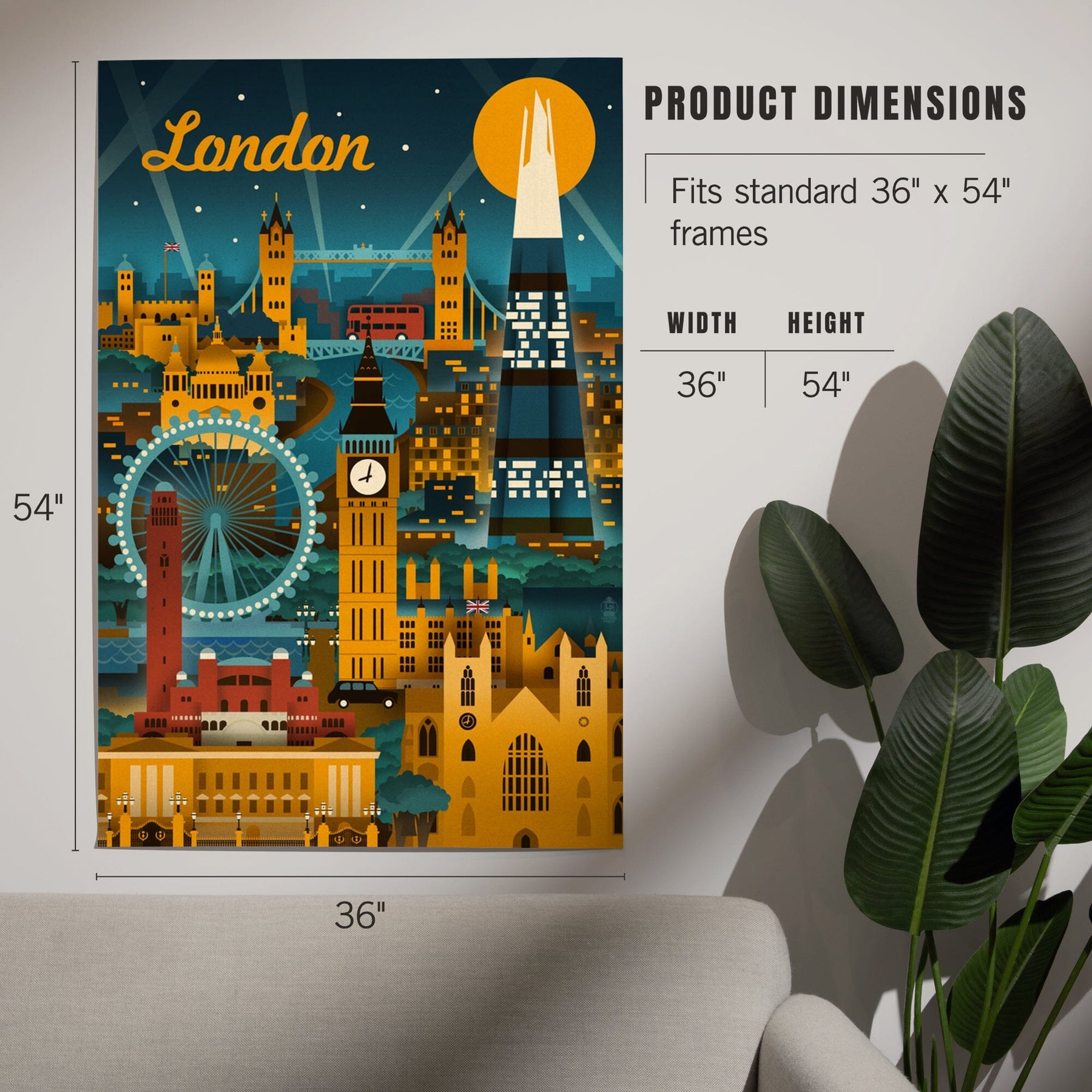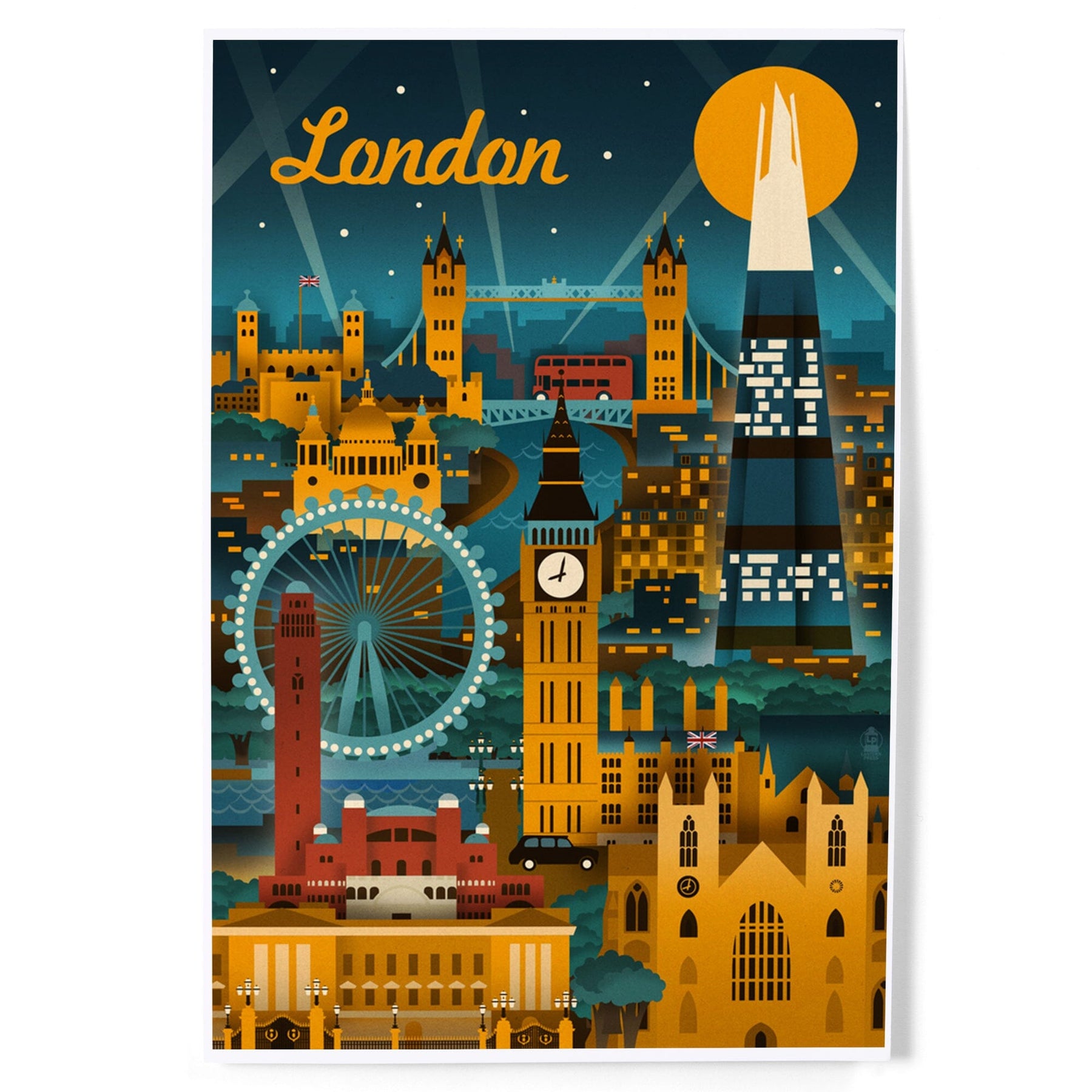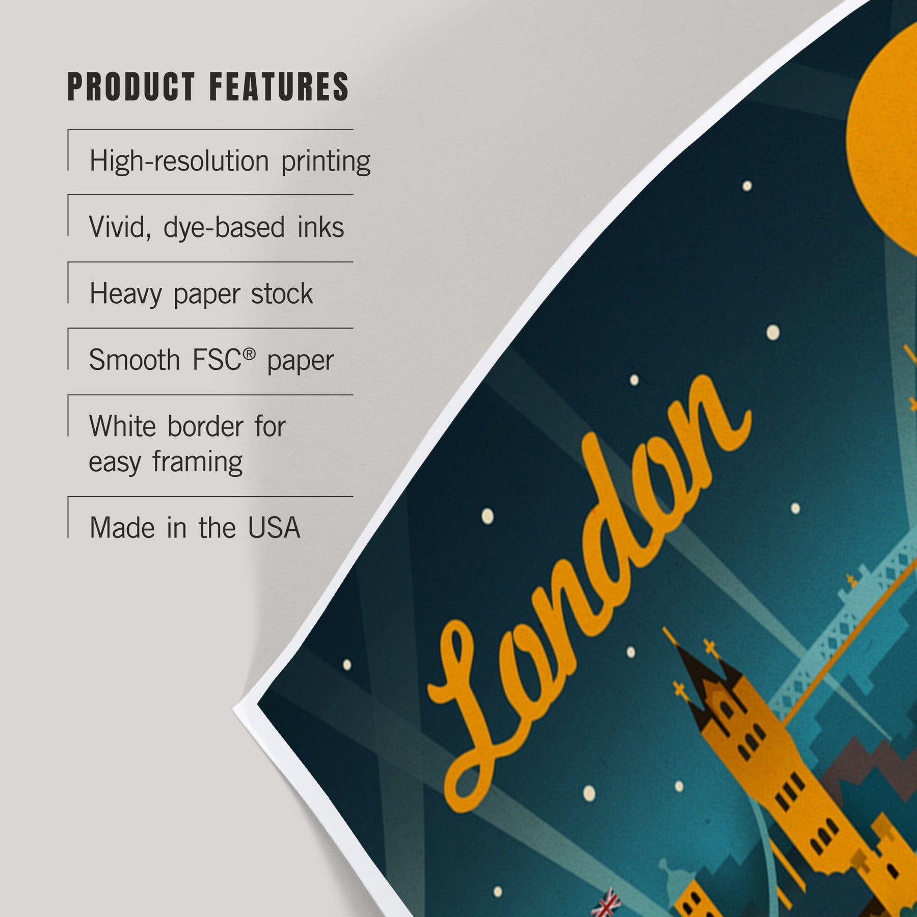 London, England, Retro Skyline, Art & Giclee Prints - Lantern Press