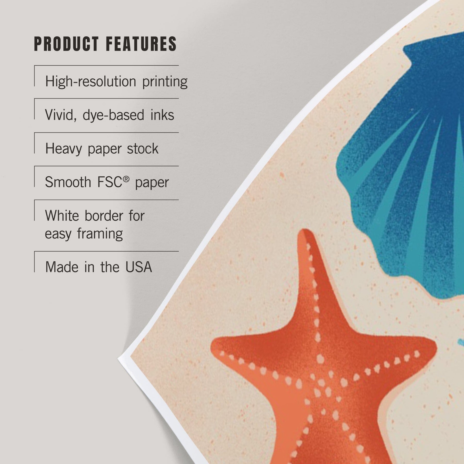 Long Beach Island, New Jersey, Sun-faded Shoreline Collection, Shells on Beach, Art & Giclee Prints - Lantern Press