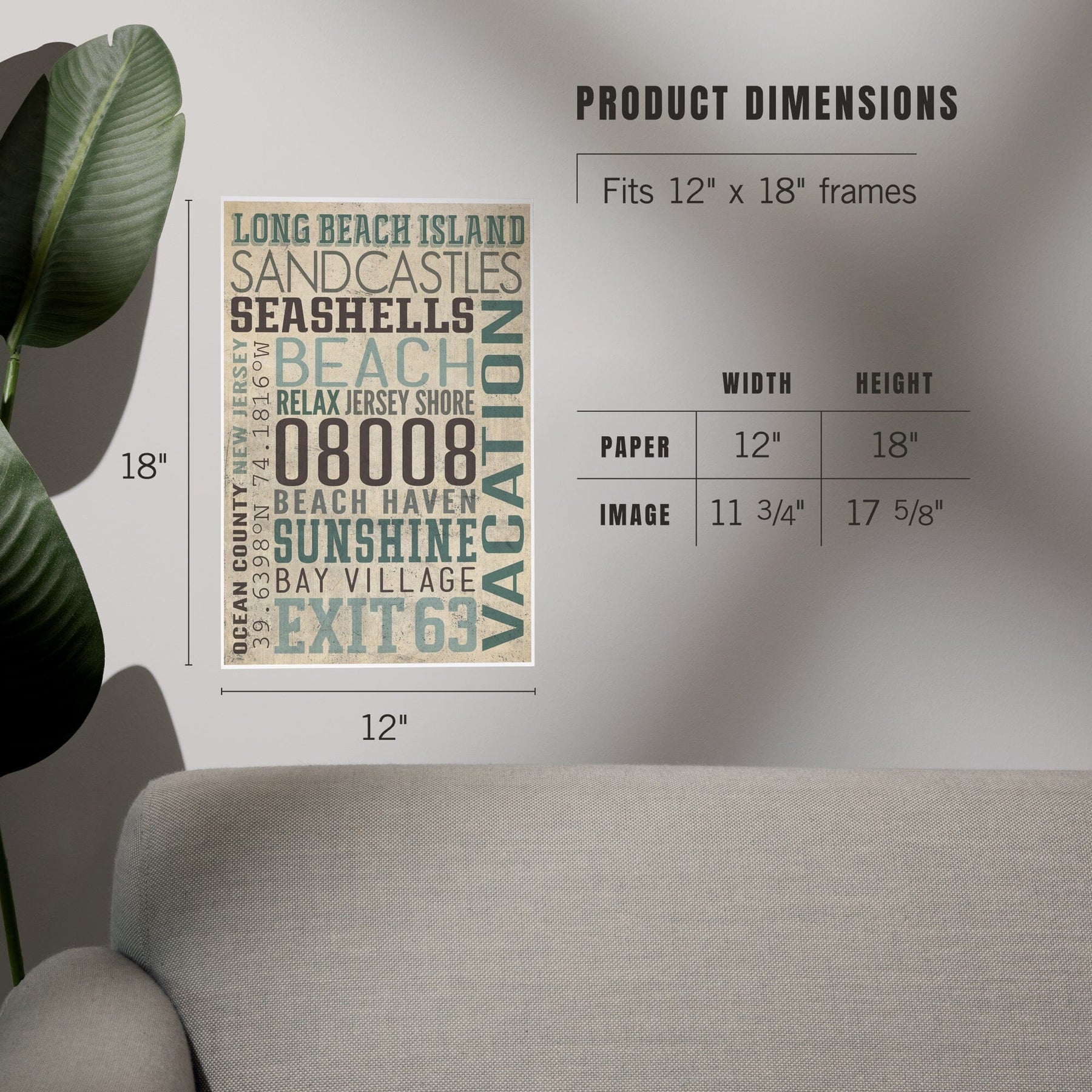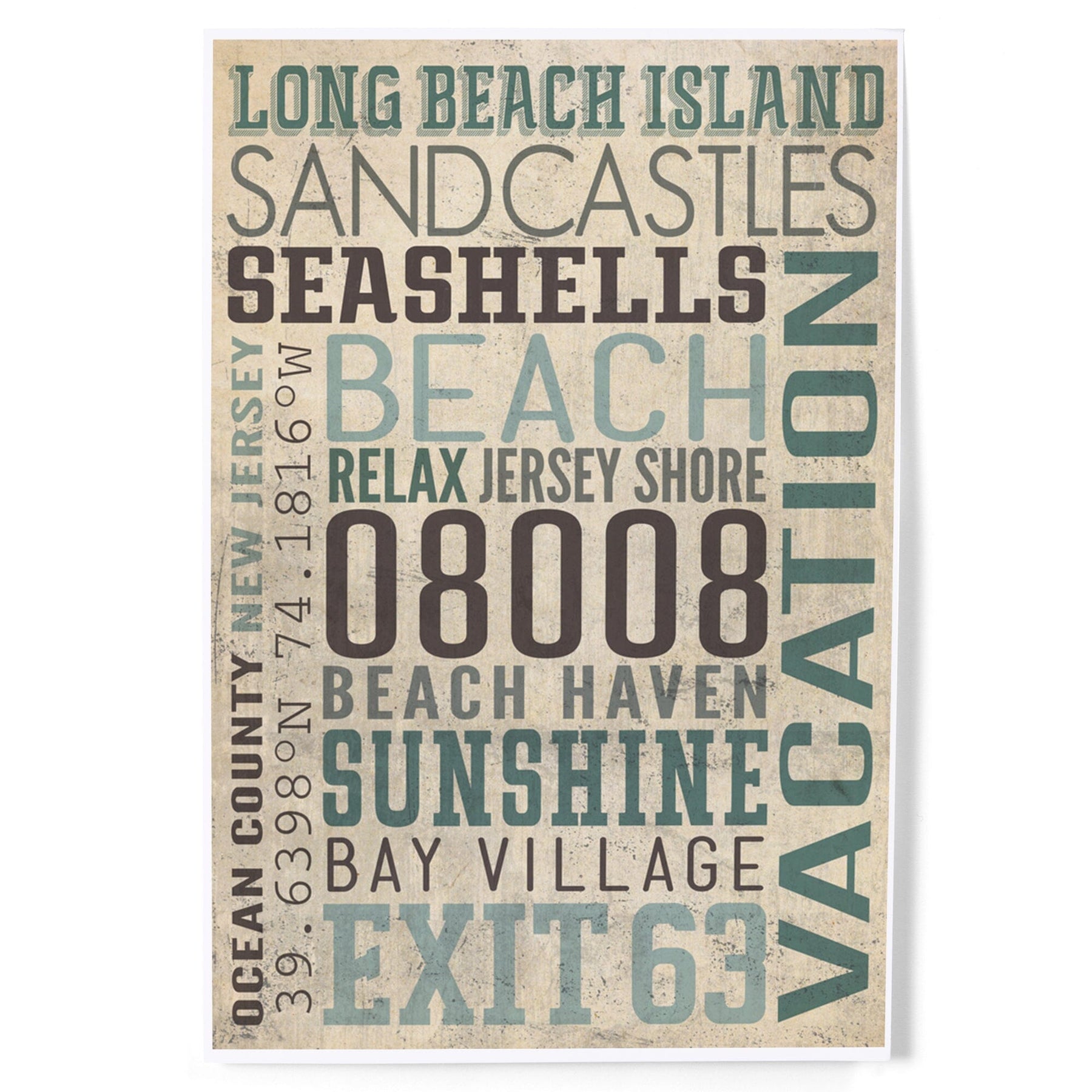 Long Beach Island, New Jersey, Typography (#2), Art & Giclee Prints - Lantern Press
