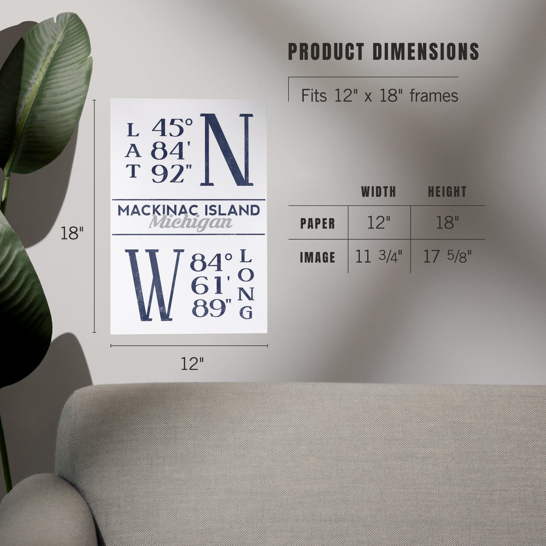Mackinac Island, Michigan, Latitude and Longitude (Blue), Art & Giclee Prints