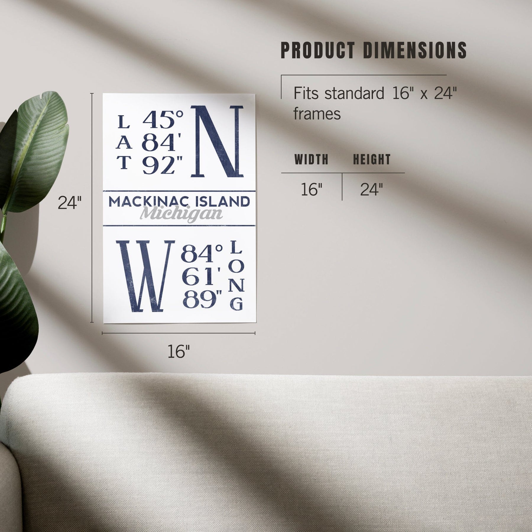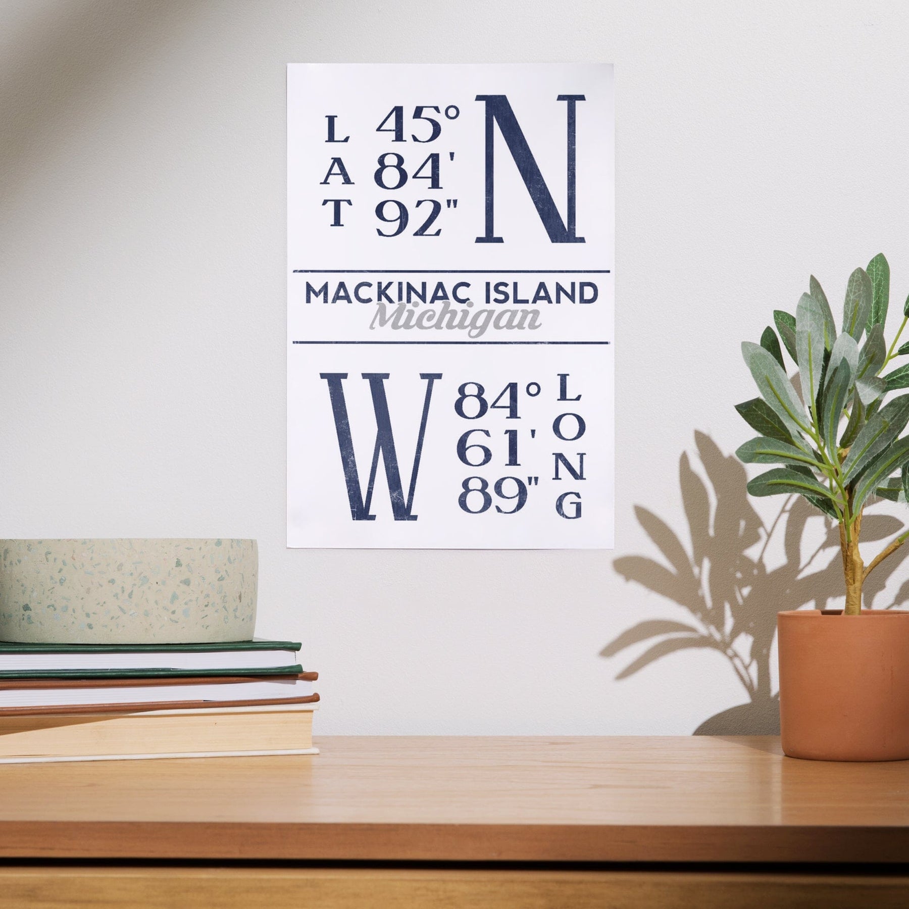 Mackinac Island, Michigan, Latitude and Longitude (Blue), Art & Giclee Prints - Lantern Press