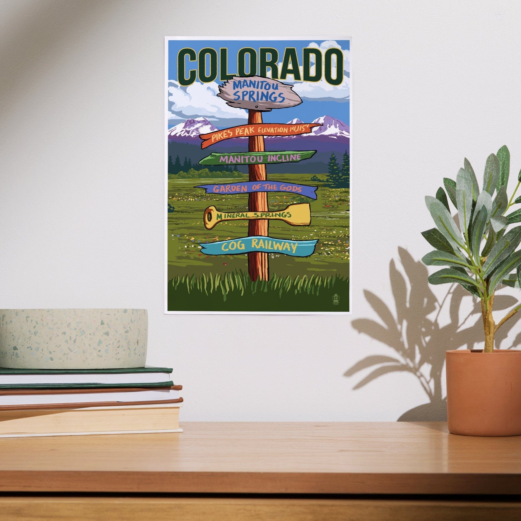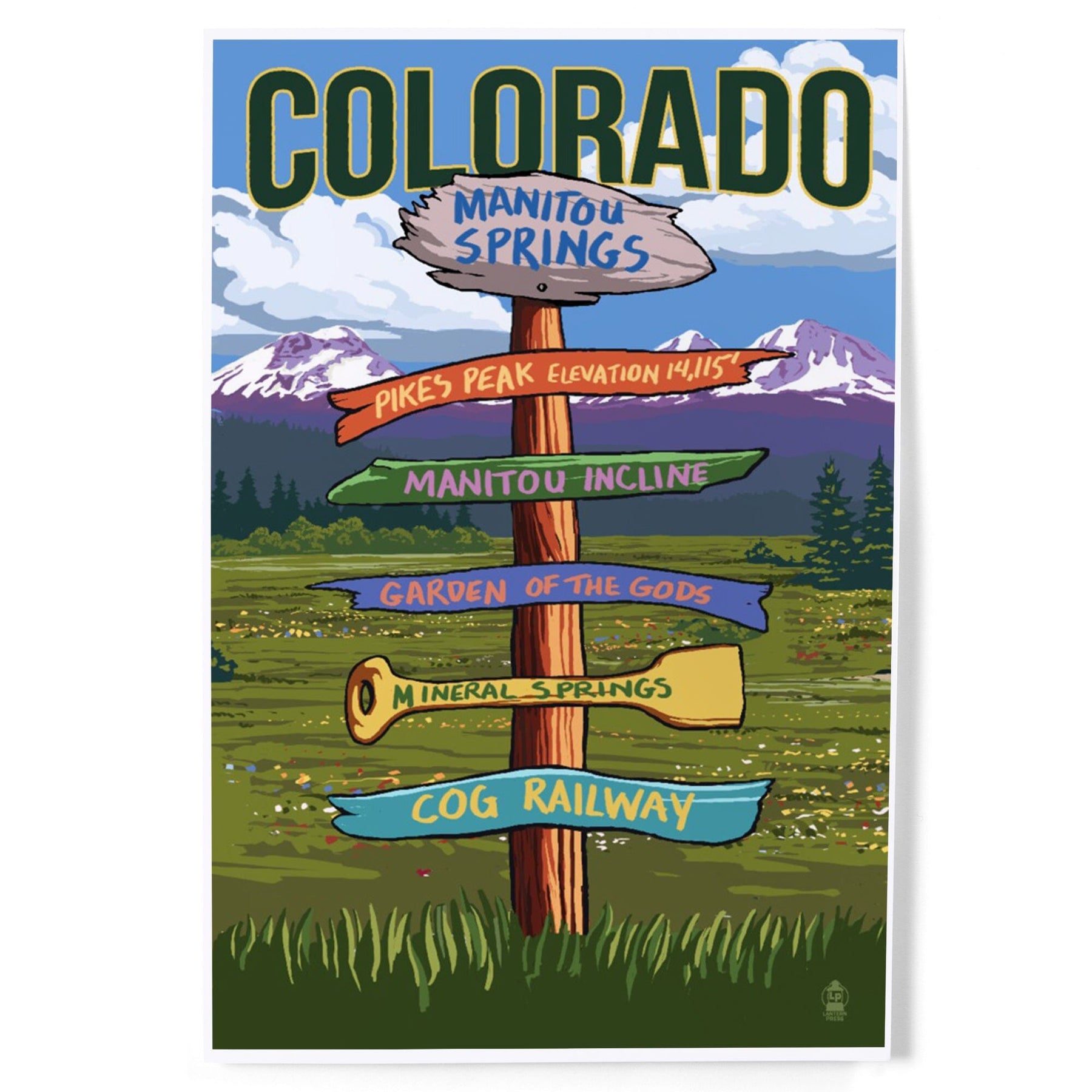 Manitou Springs, Colorado, Destination Signpost, Art & Giclee Prints - Lantern Press