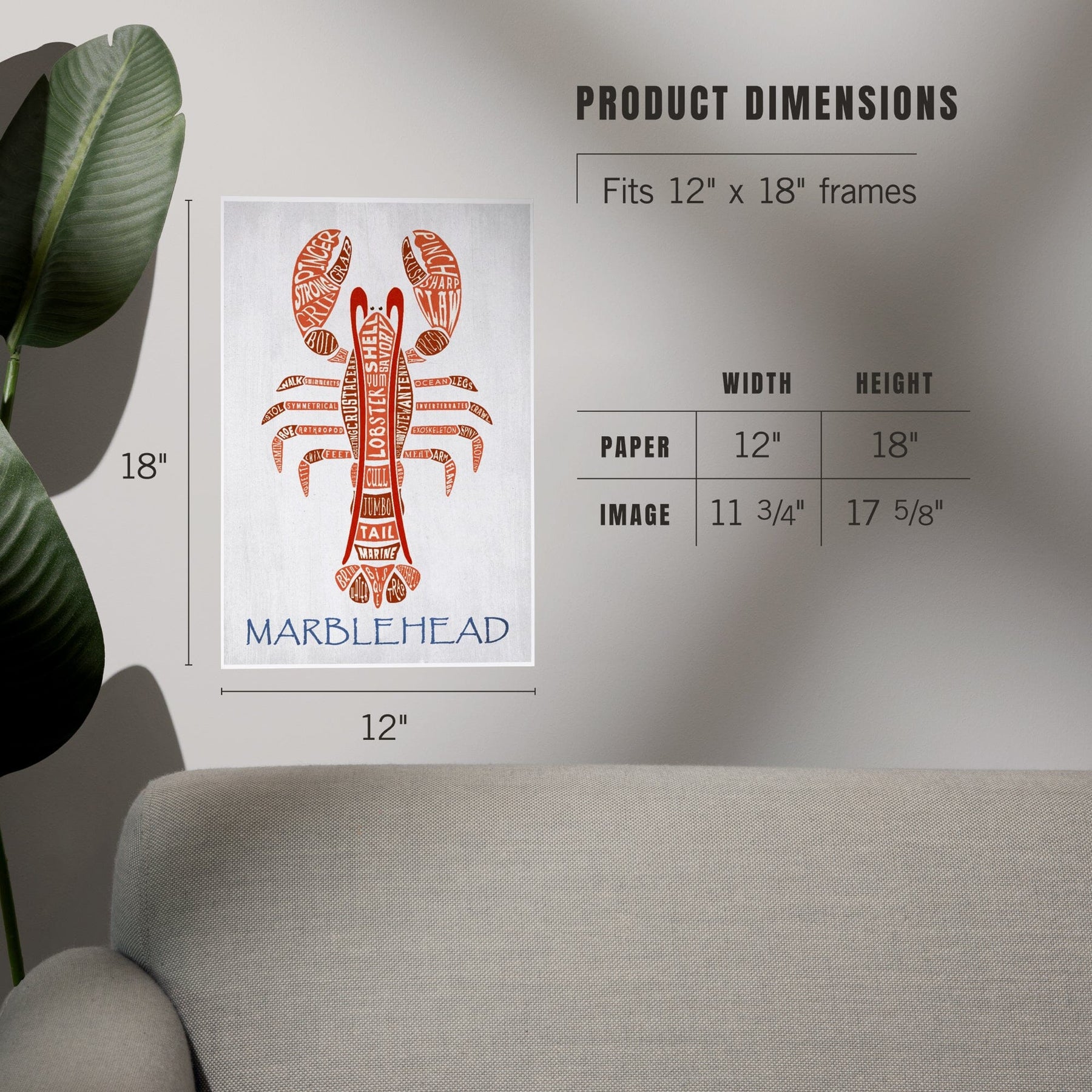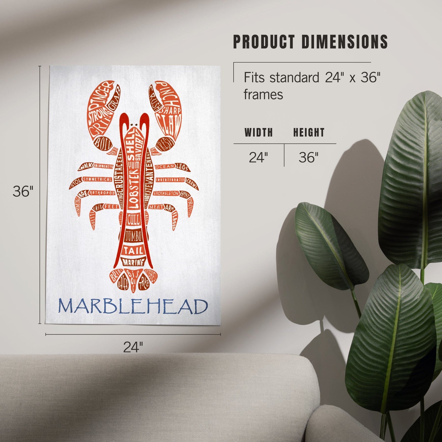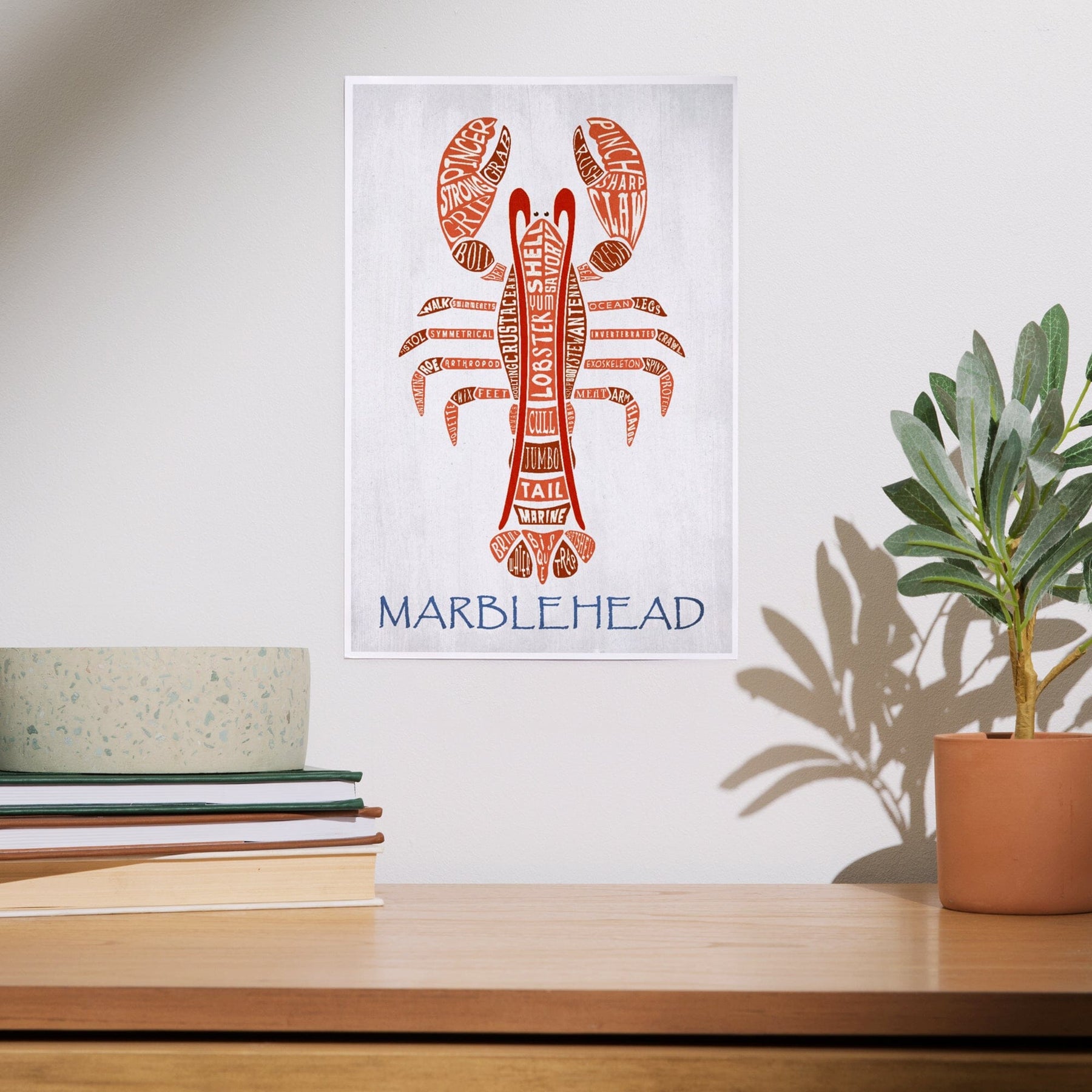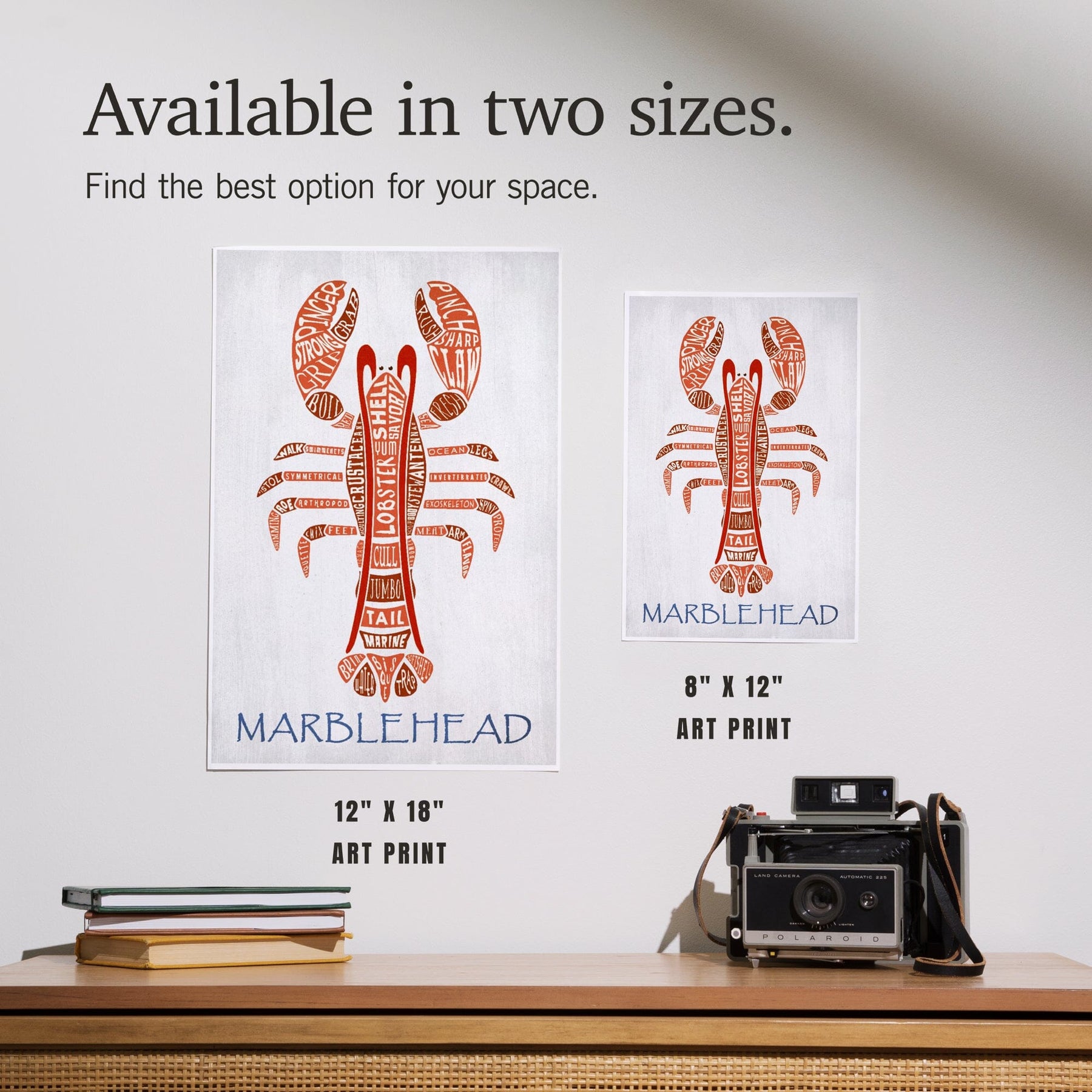 Marblehead, Massachusetts, Red Lobster, Typography, Art & Giclee Prints
