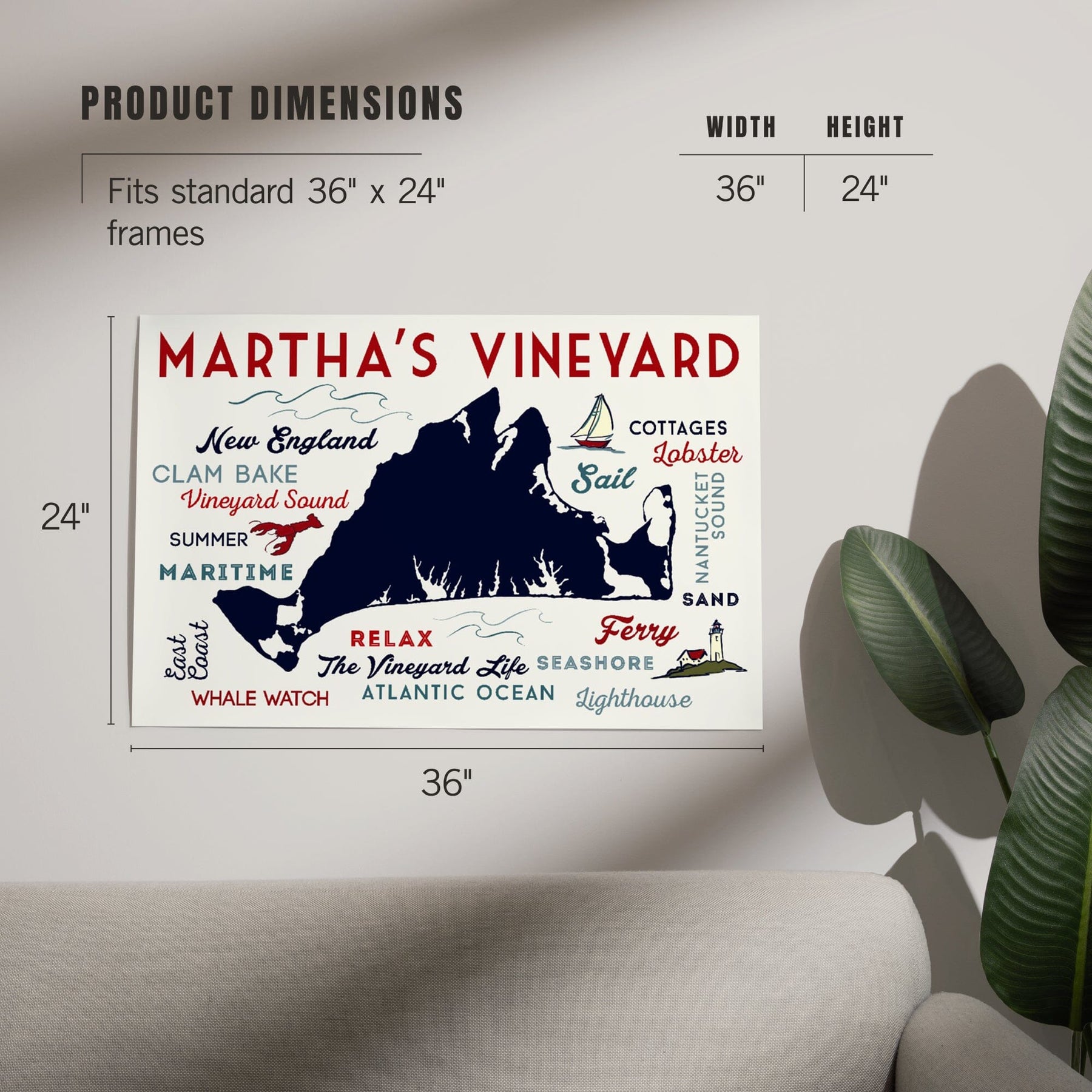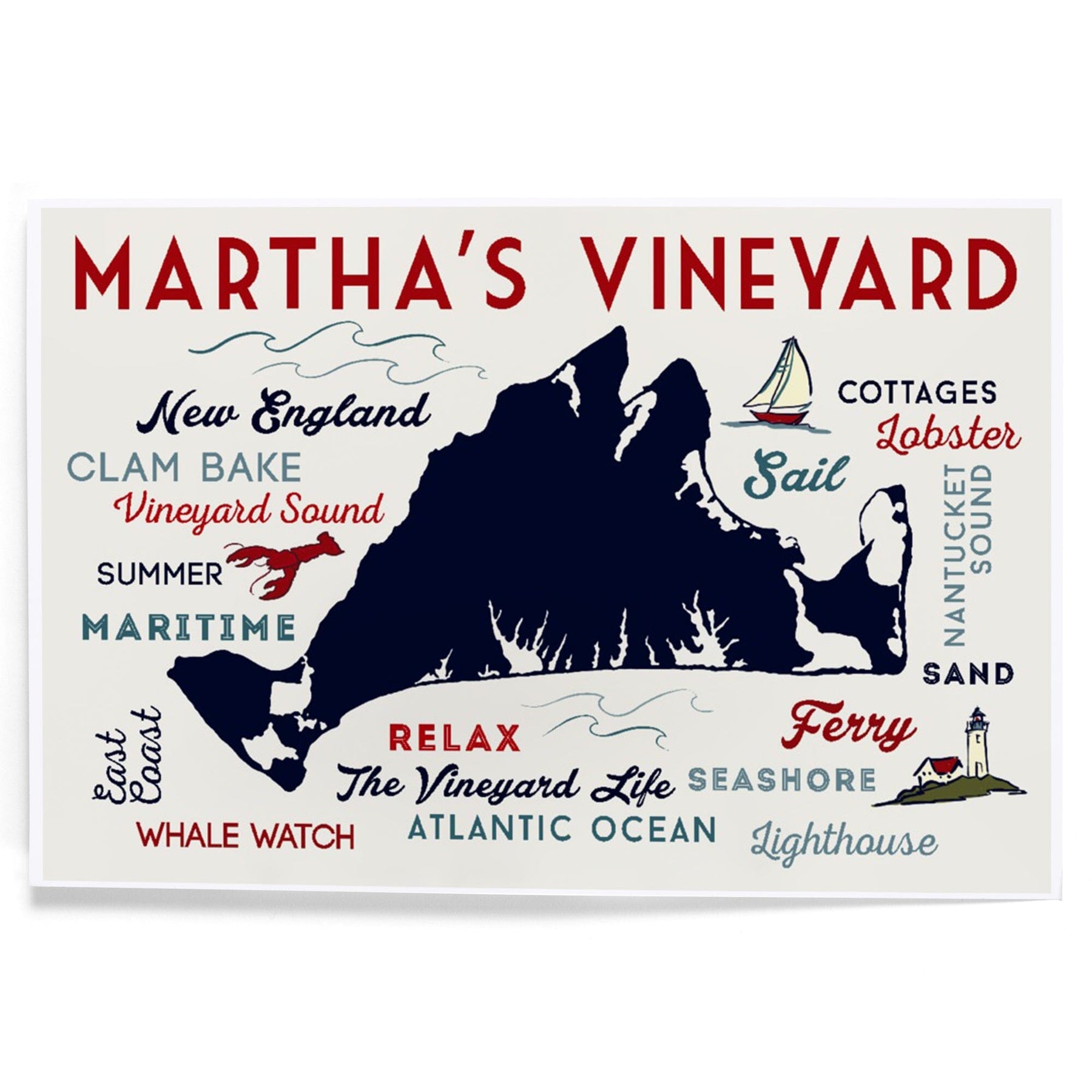 Martha's Vineyard, Massachusetts, Typography and Icons, Art & Giclee Prints