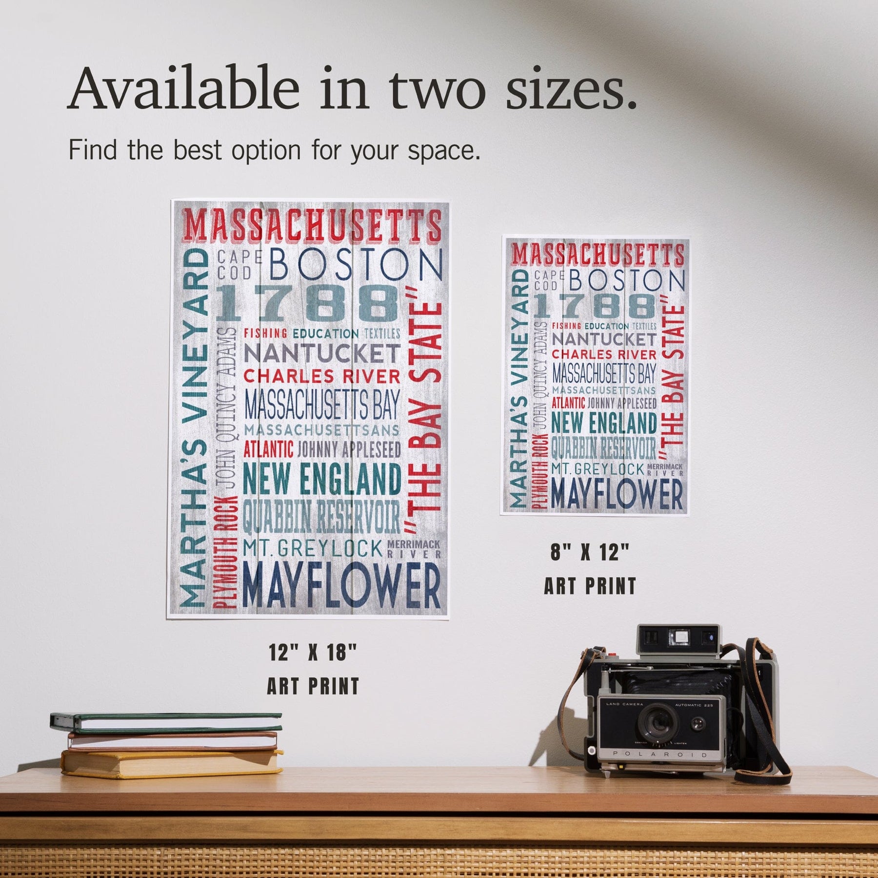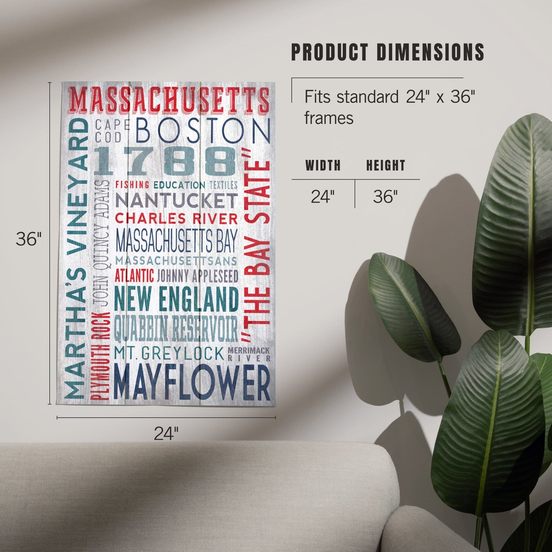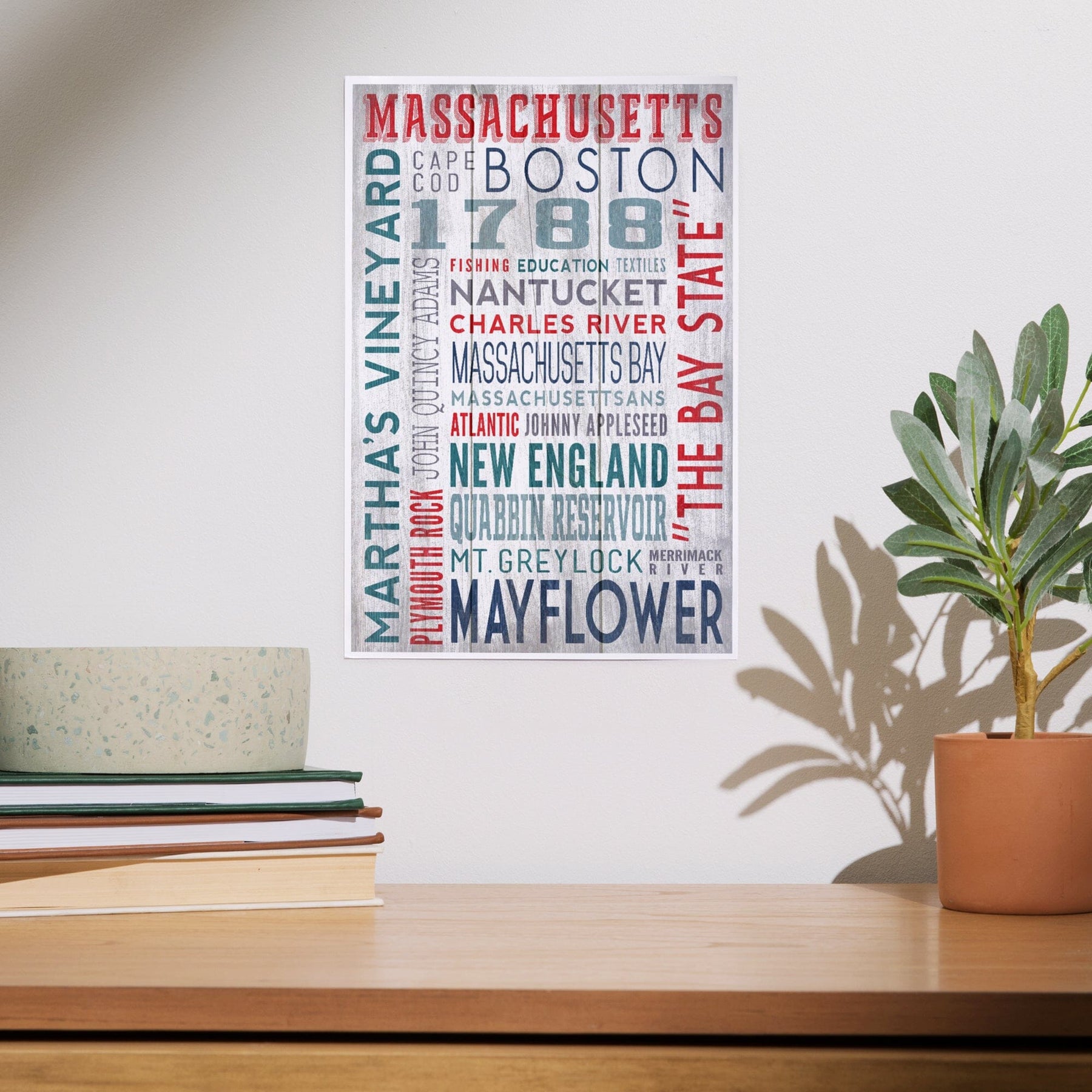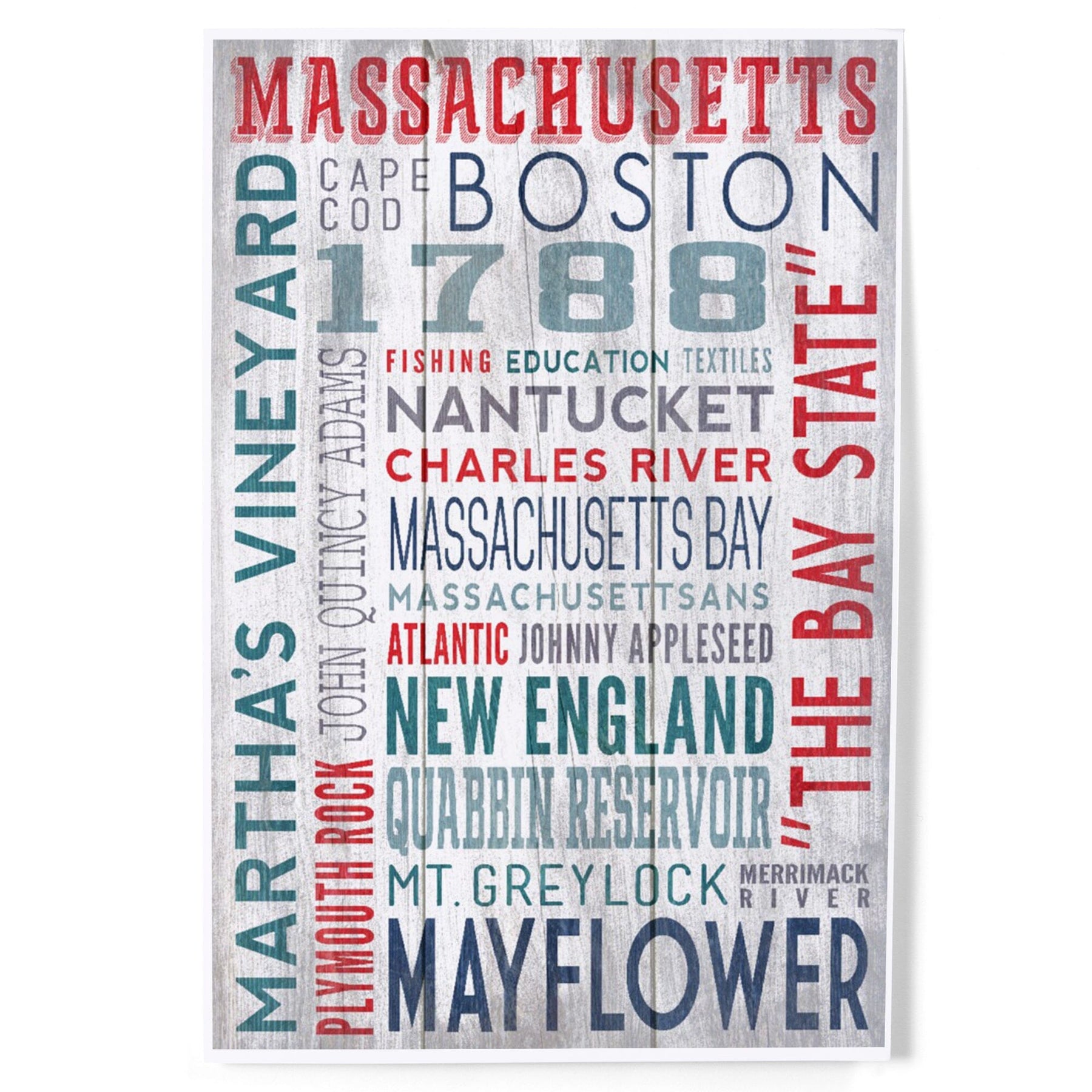 Massachusetts, Rustic Typography, Art & Giclee Prints - Lantern Press