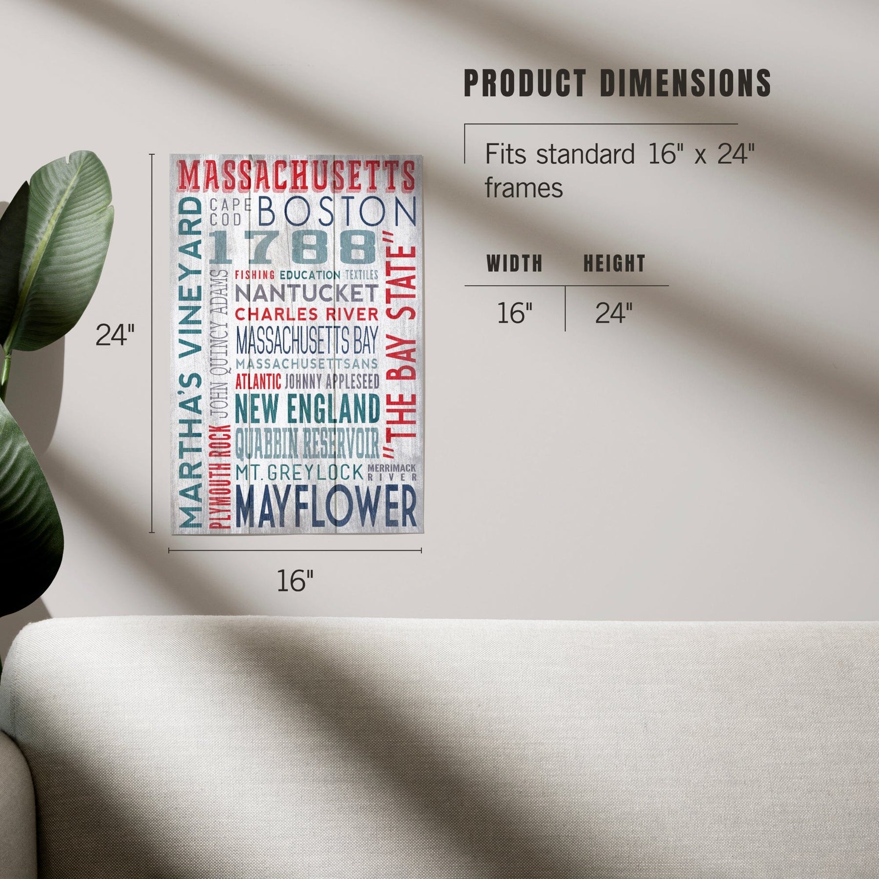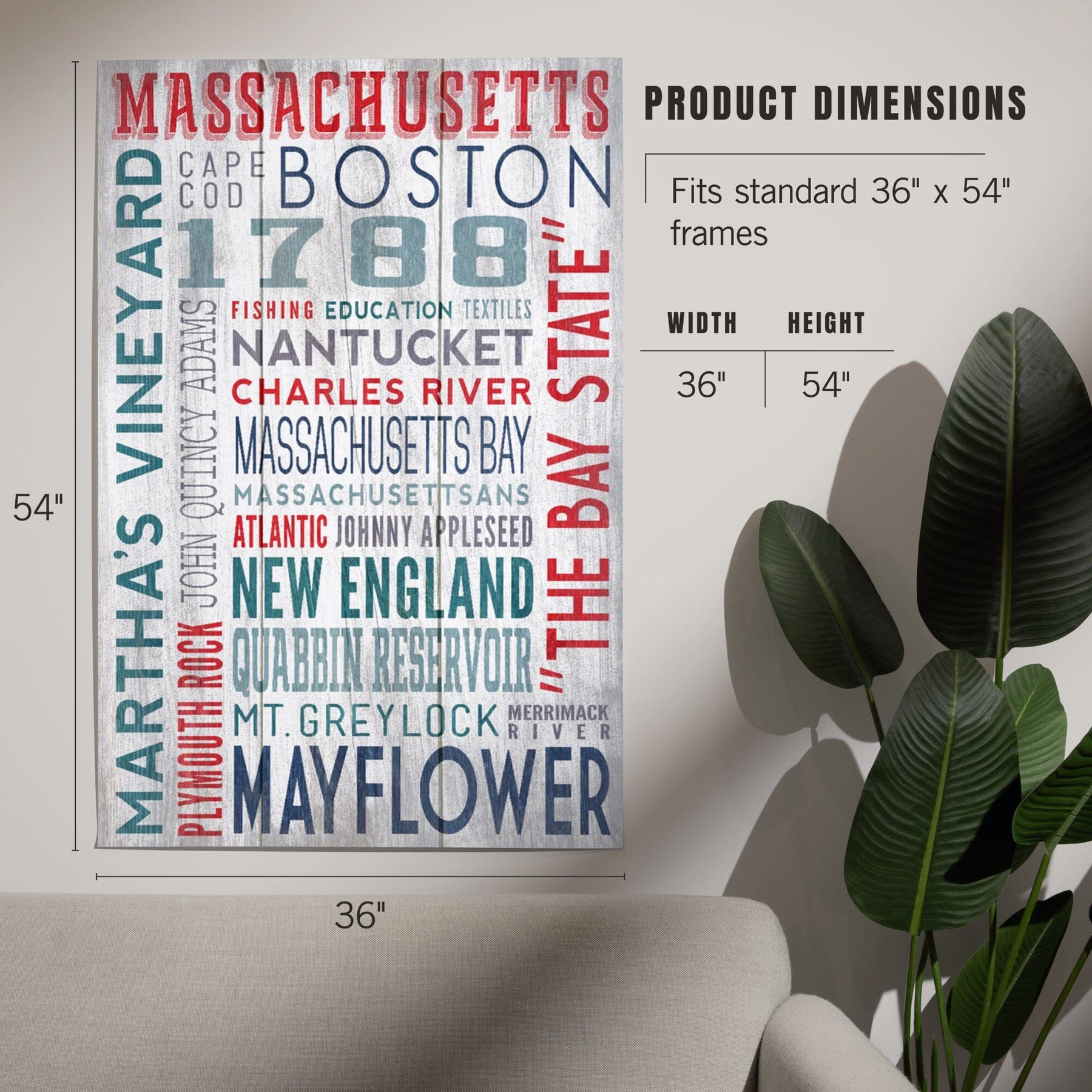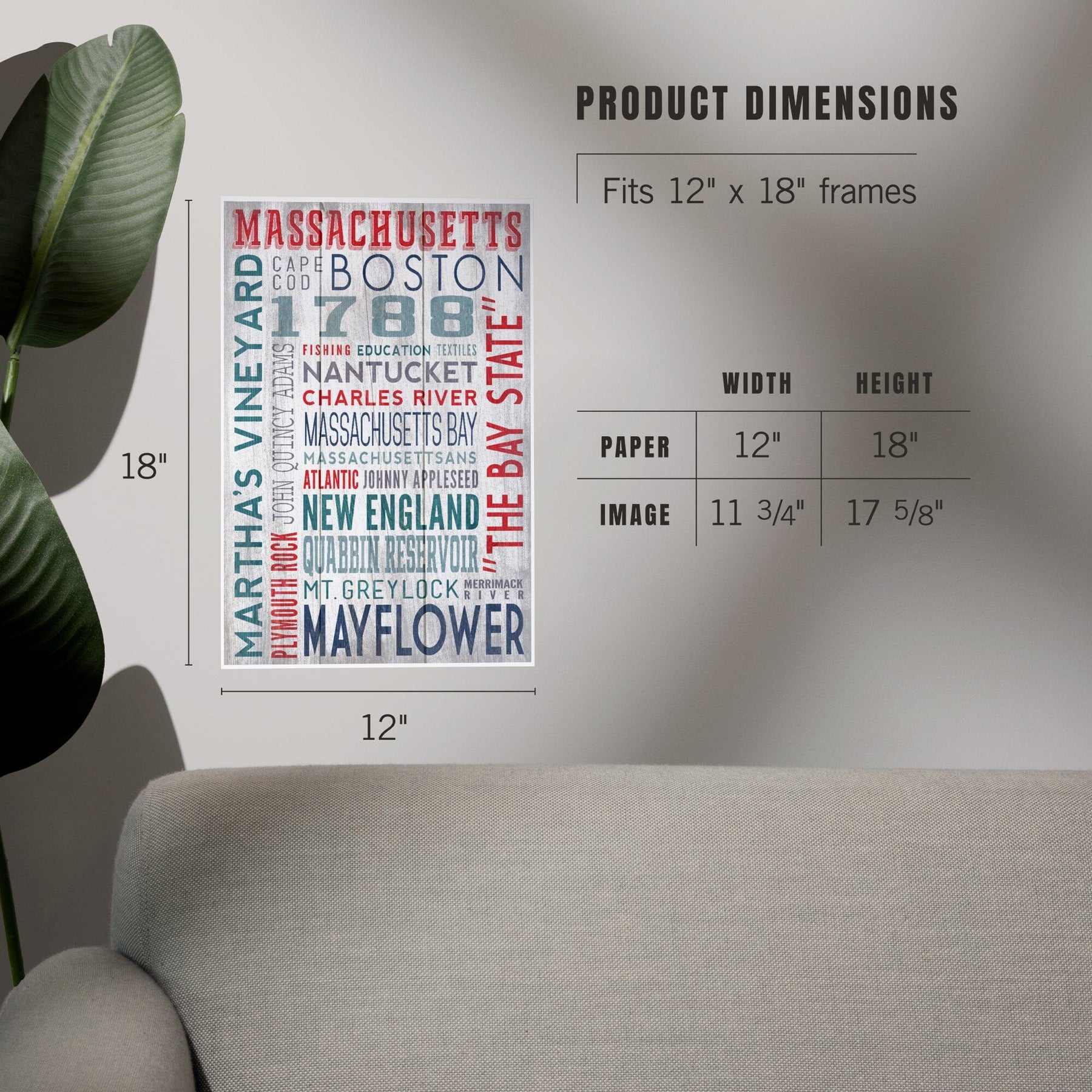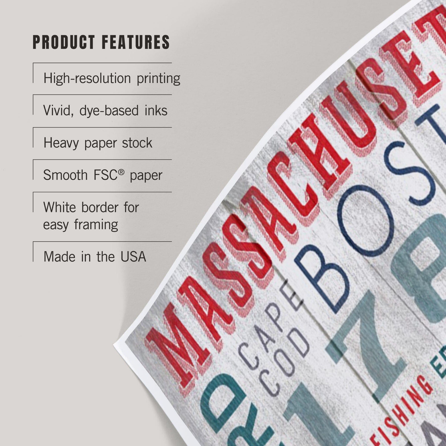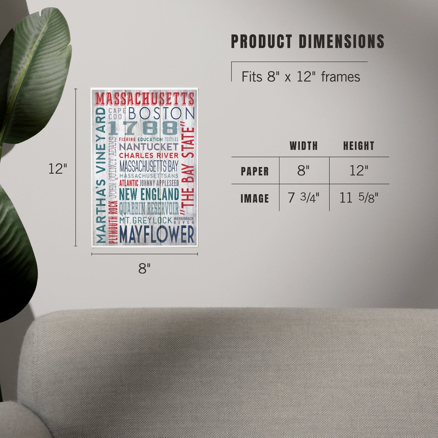 Massachusetts, Rustic Typography, Art & Giclee Prints - Lantern Press