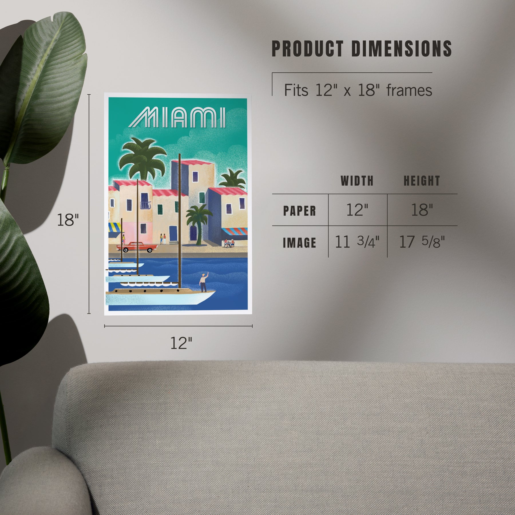 Miami, Florida, Waterfront Litho, Art & Giclee Prints Art Lantern Press