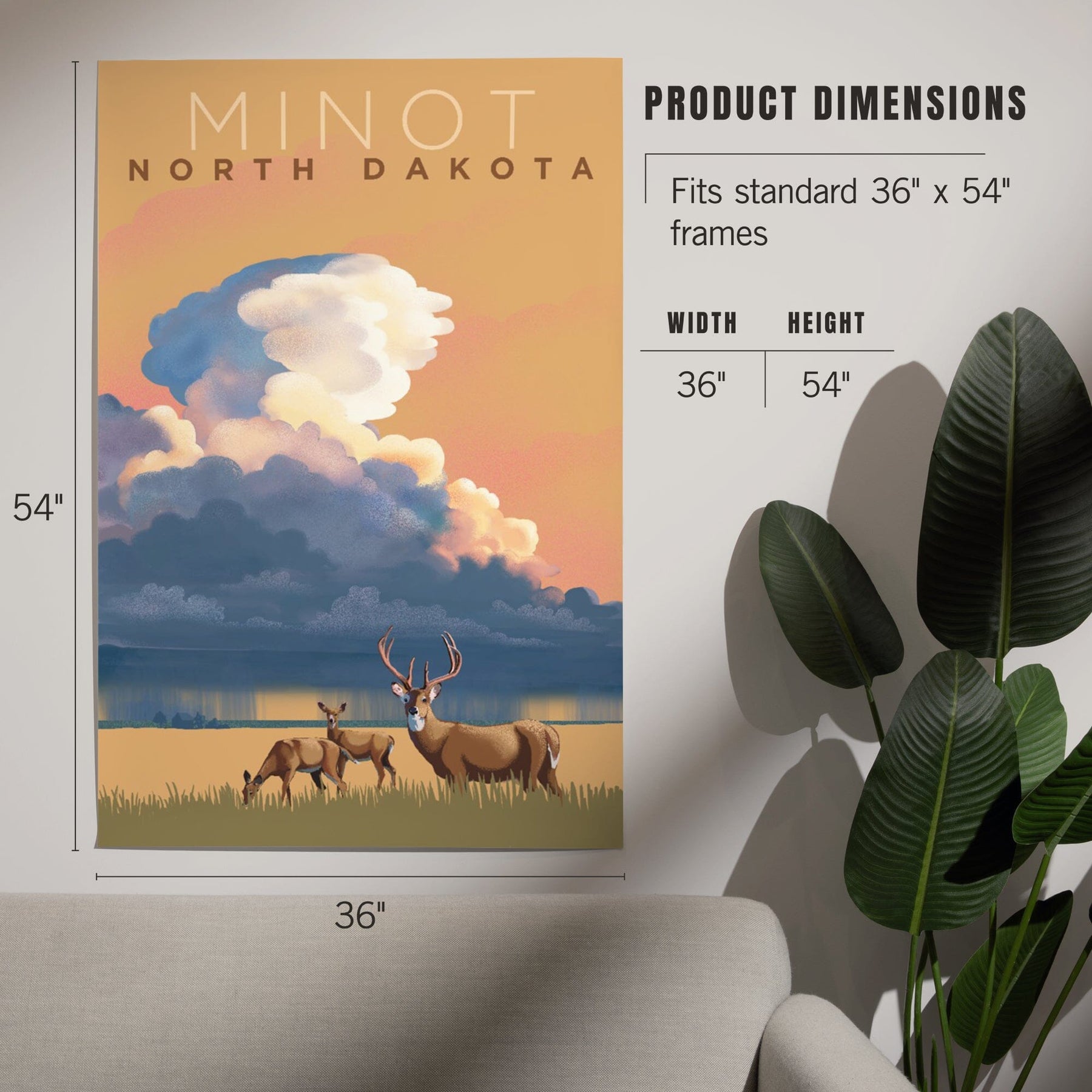 Minot, North Dakota, White-tailed Deer and Rain Cloud, Lithograph, Art & Giclee Prints Art Lantern Press