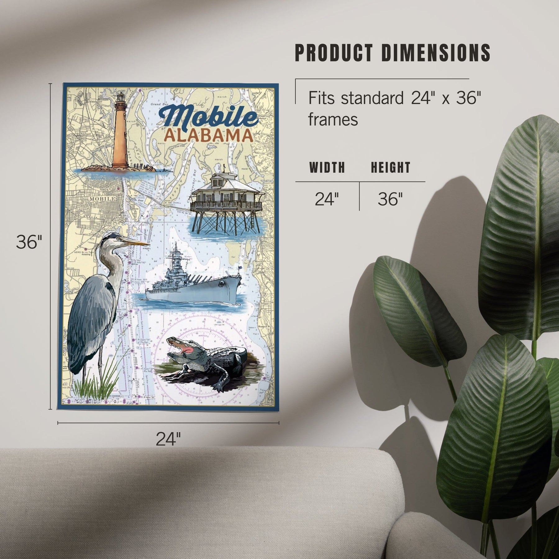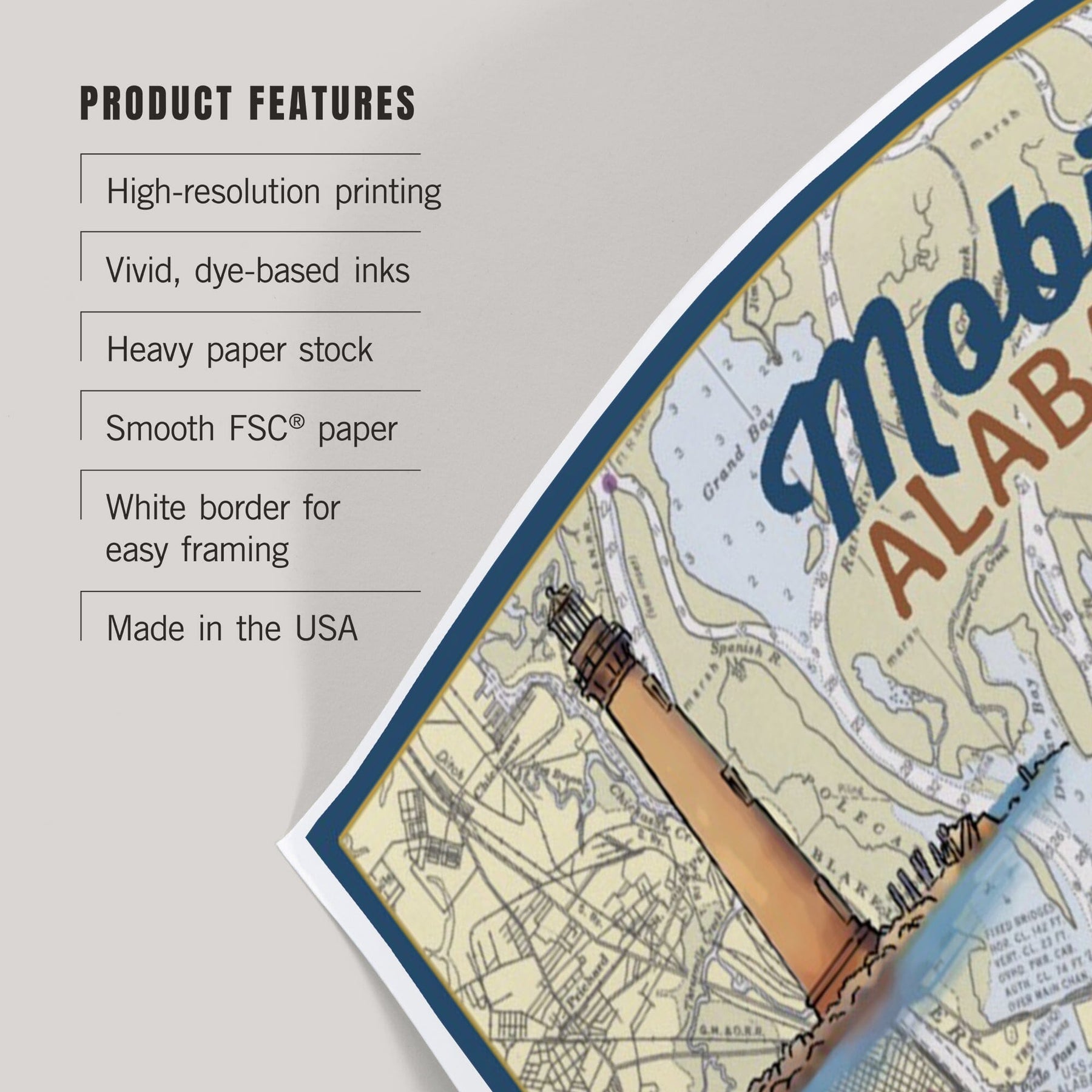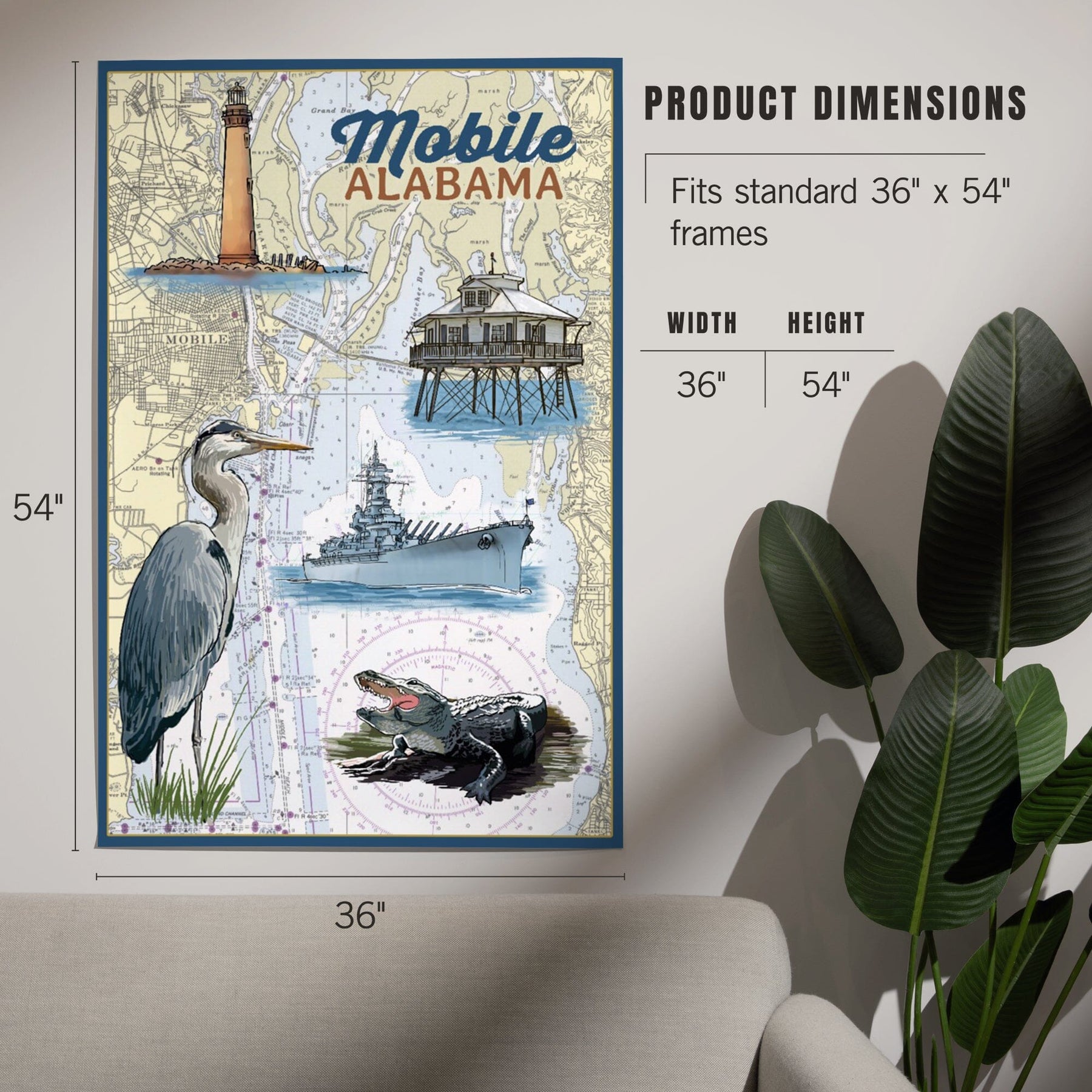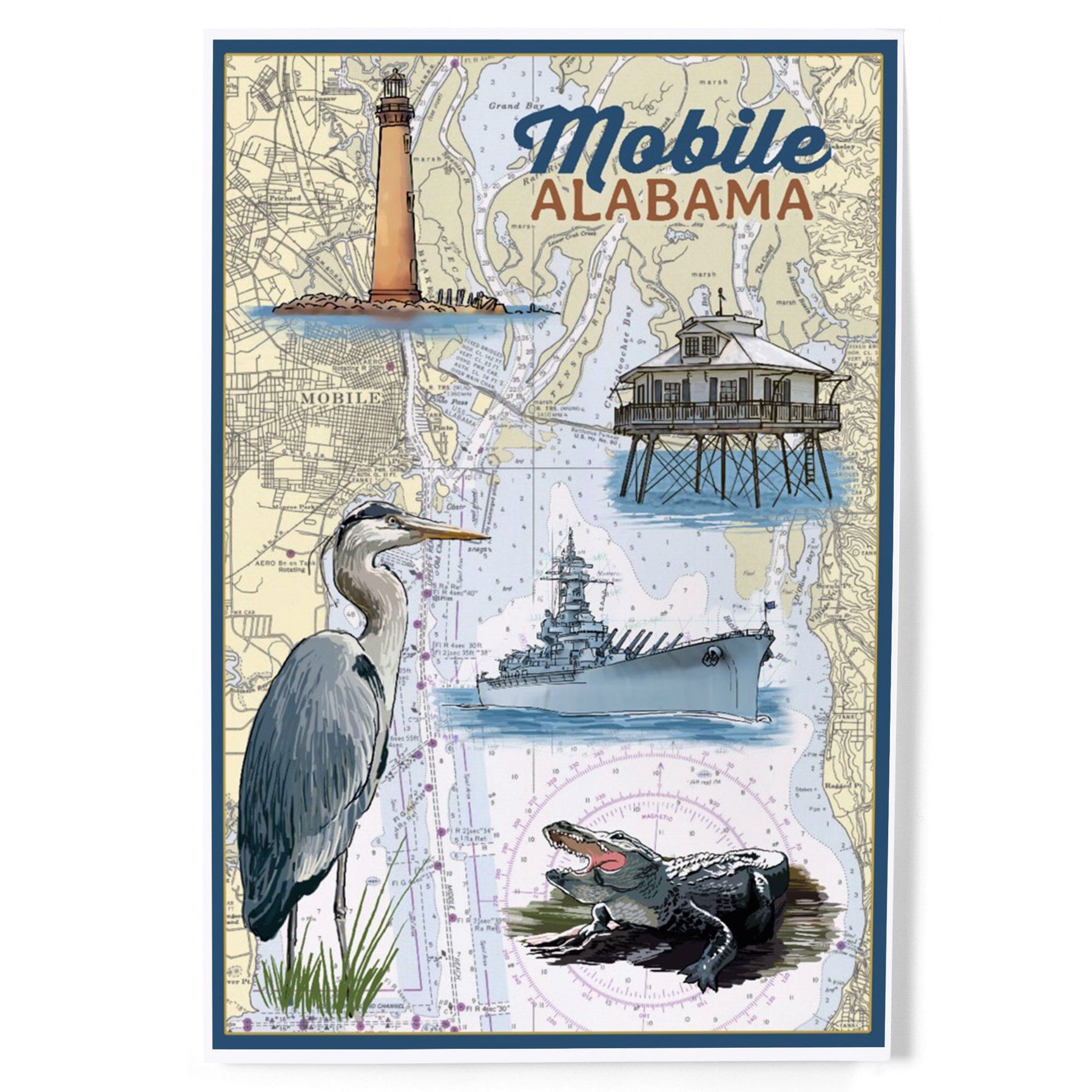 Mobile, Alabama, Nautical Chart, Art & Giclee Prints Art Lantern Press