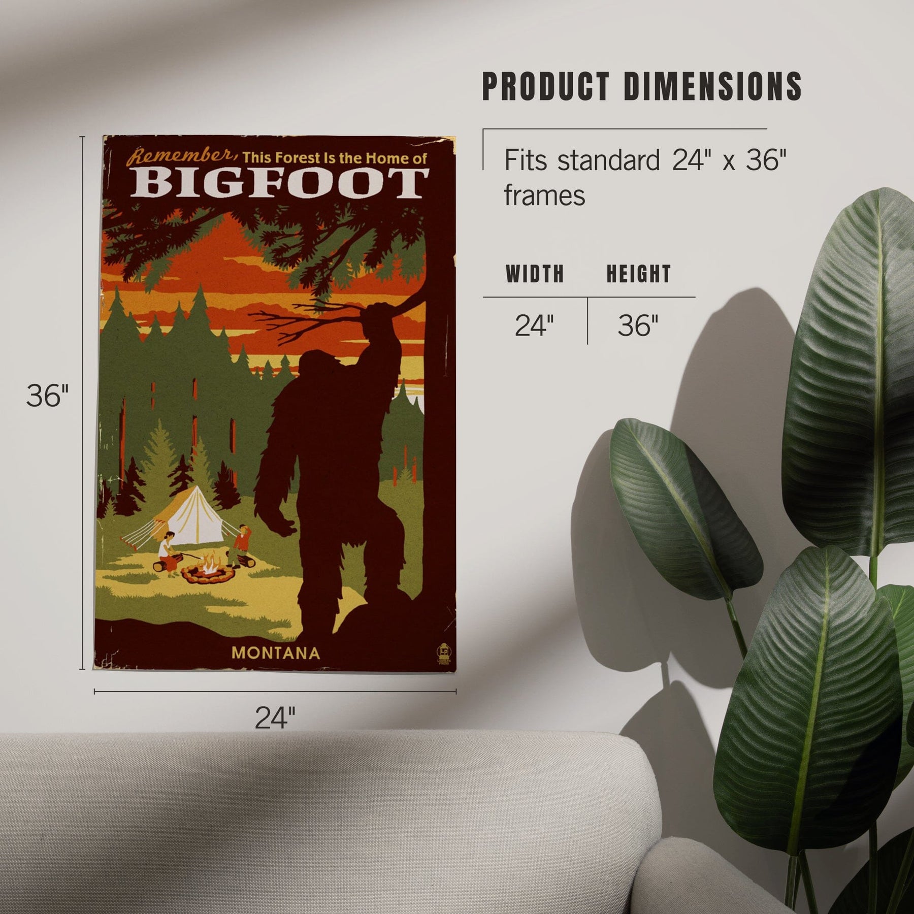 Montana, Home of Bigfoot, WPA Style, Art & Giclee Prints