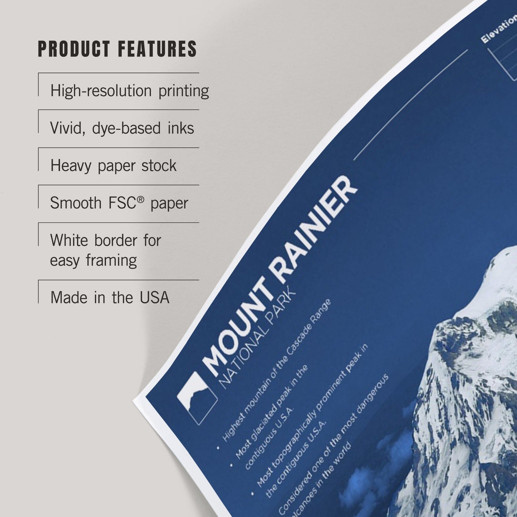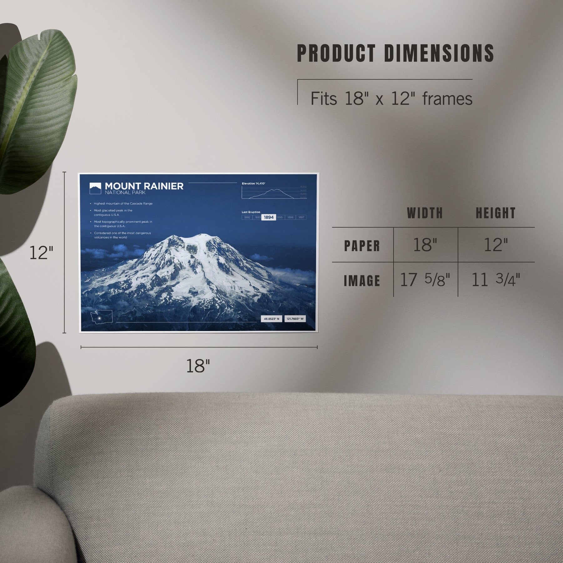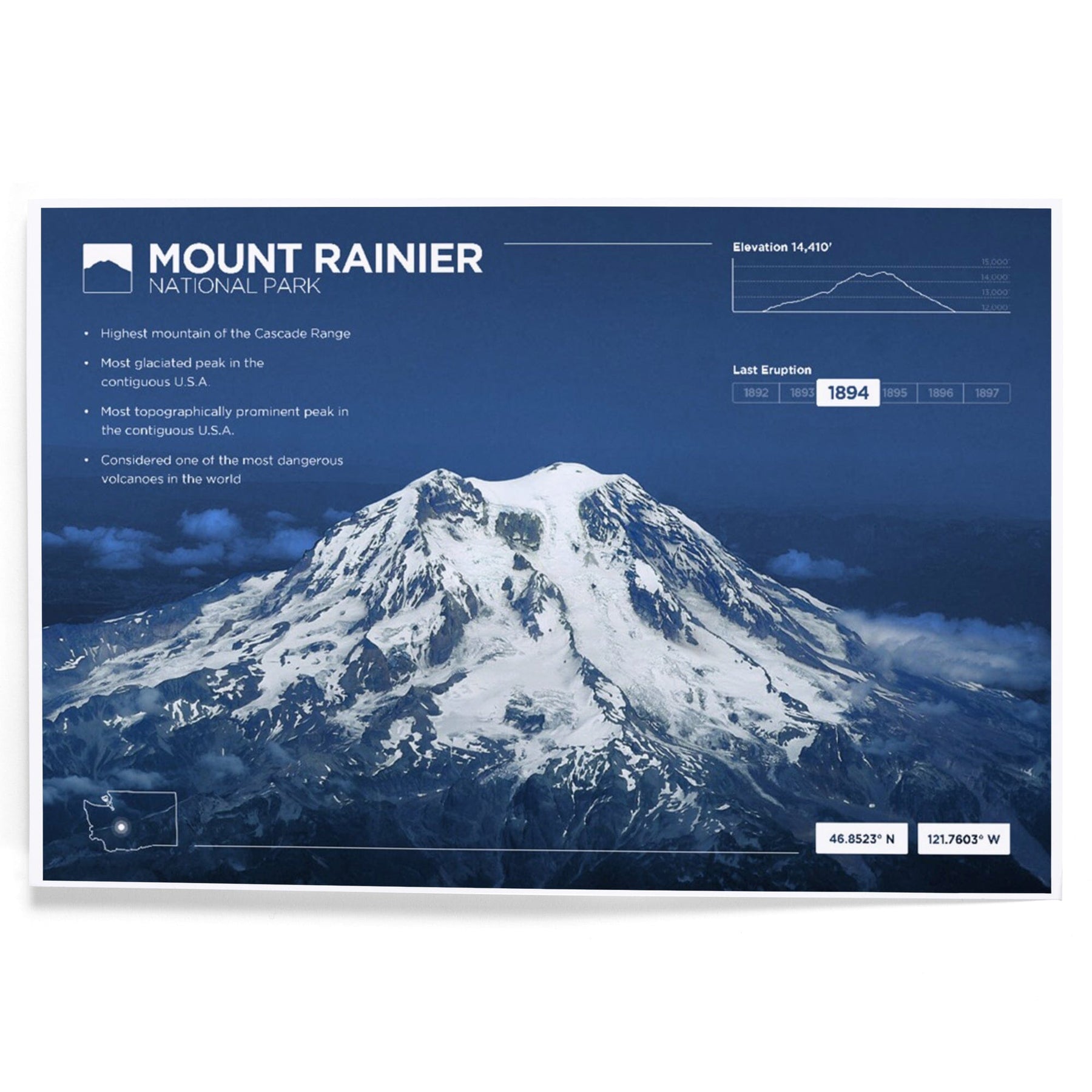 Mount Rainier National Park, Washington, Aerial View, Infographic, Art & Giclee Prints Art Lantern Press