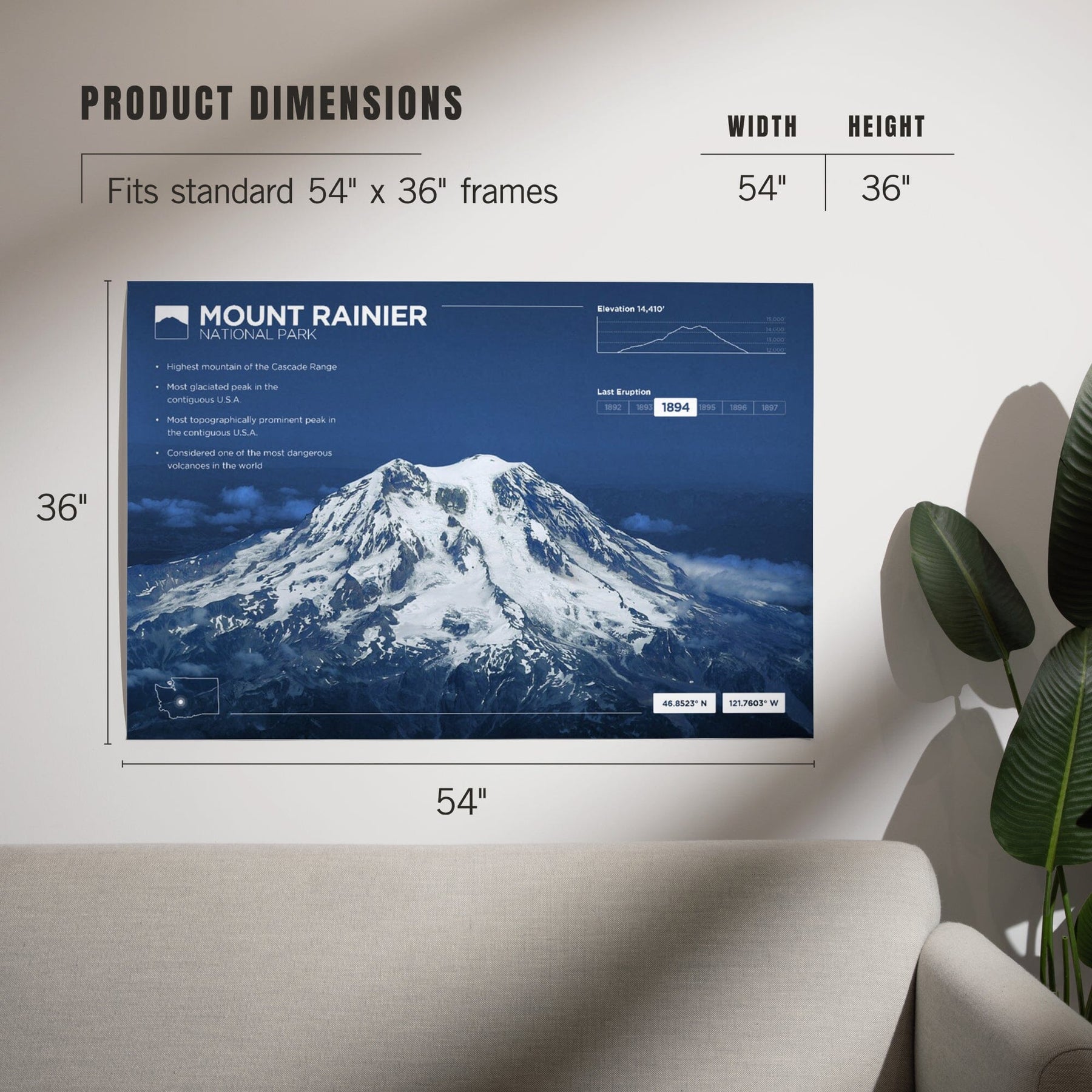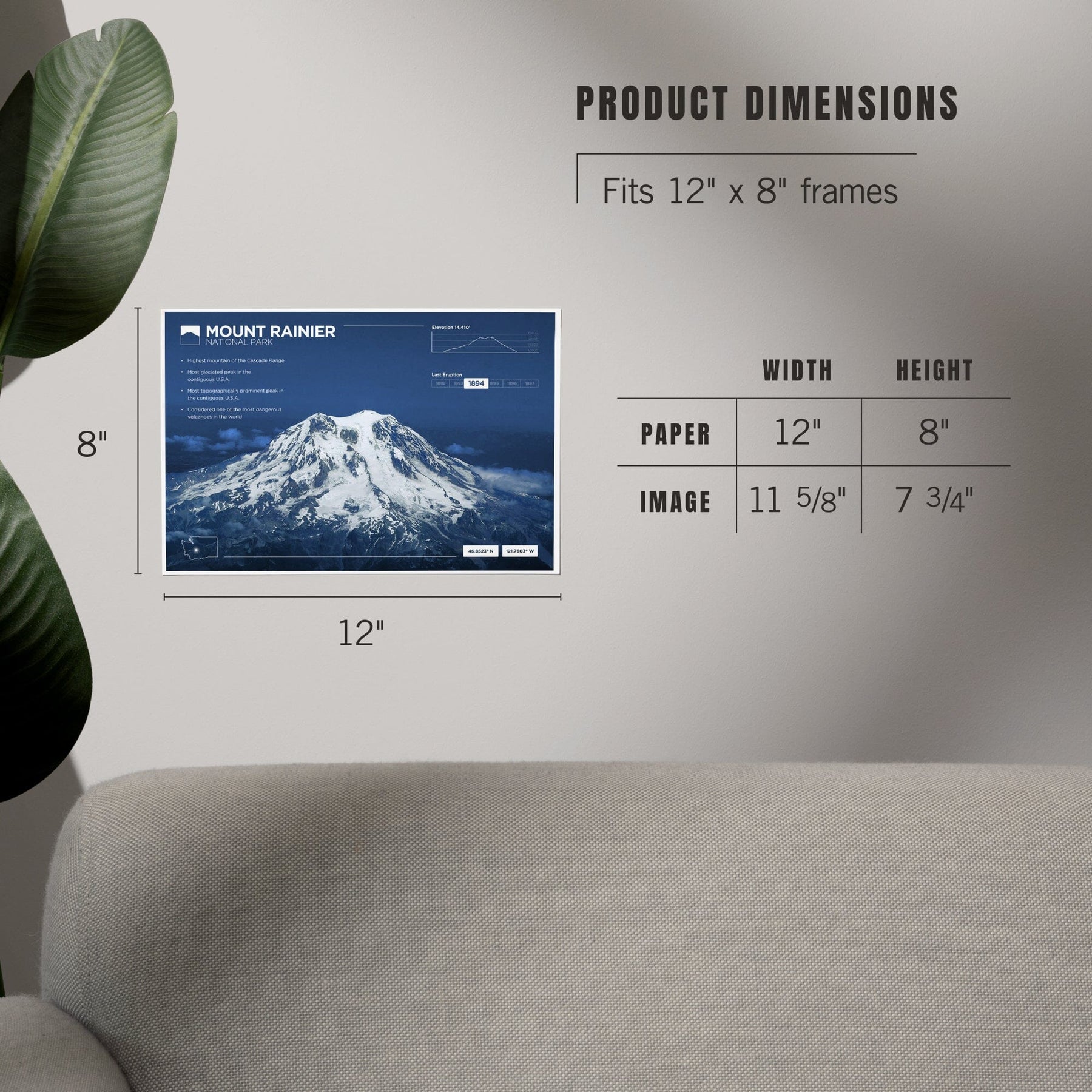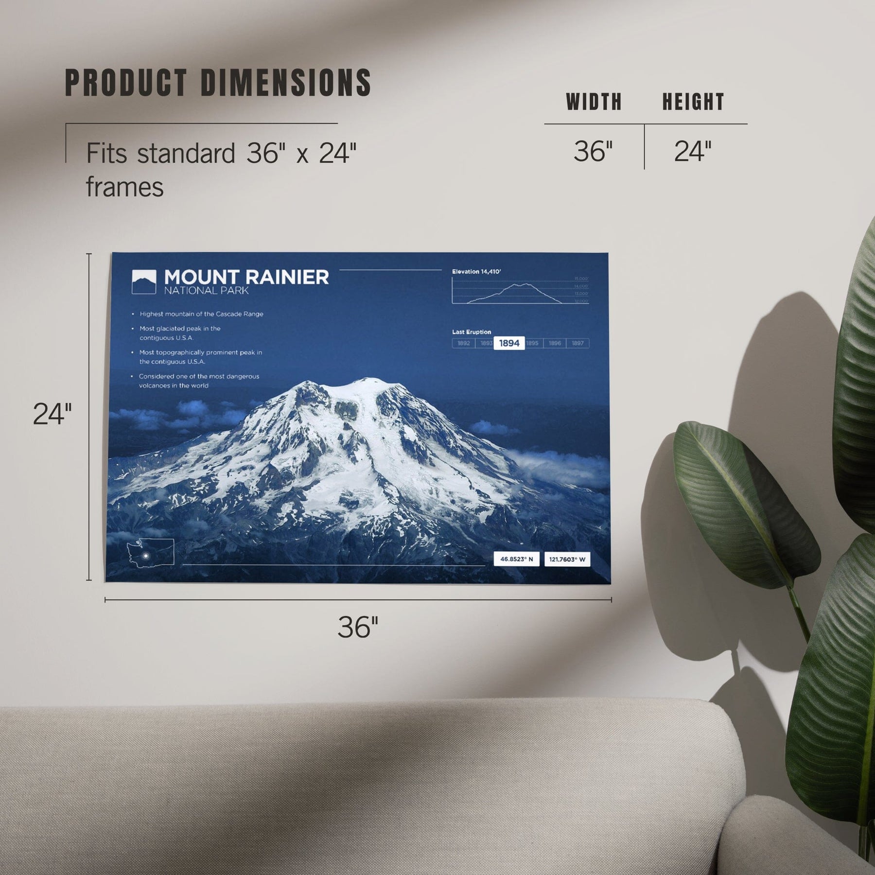 Mount Rainier National Park, Washington, Aerial View, Infographic, Art & Giclee Prints Art Lantern Press