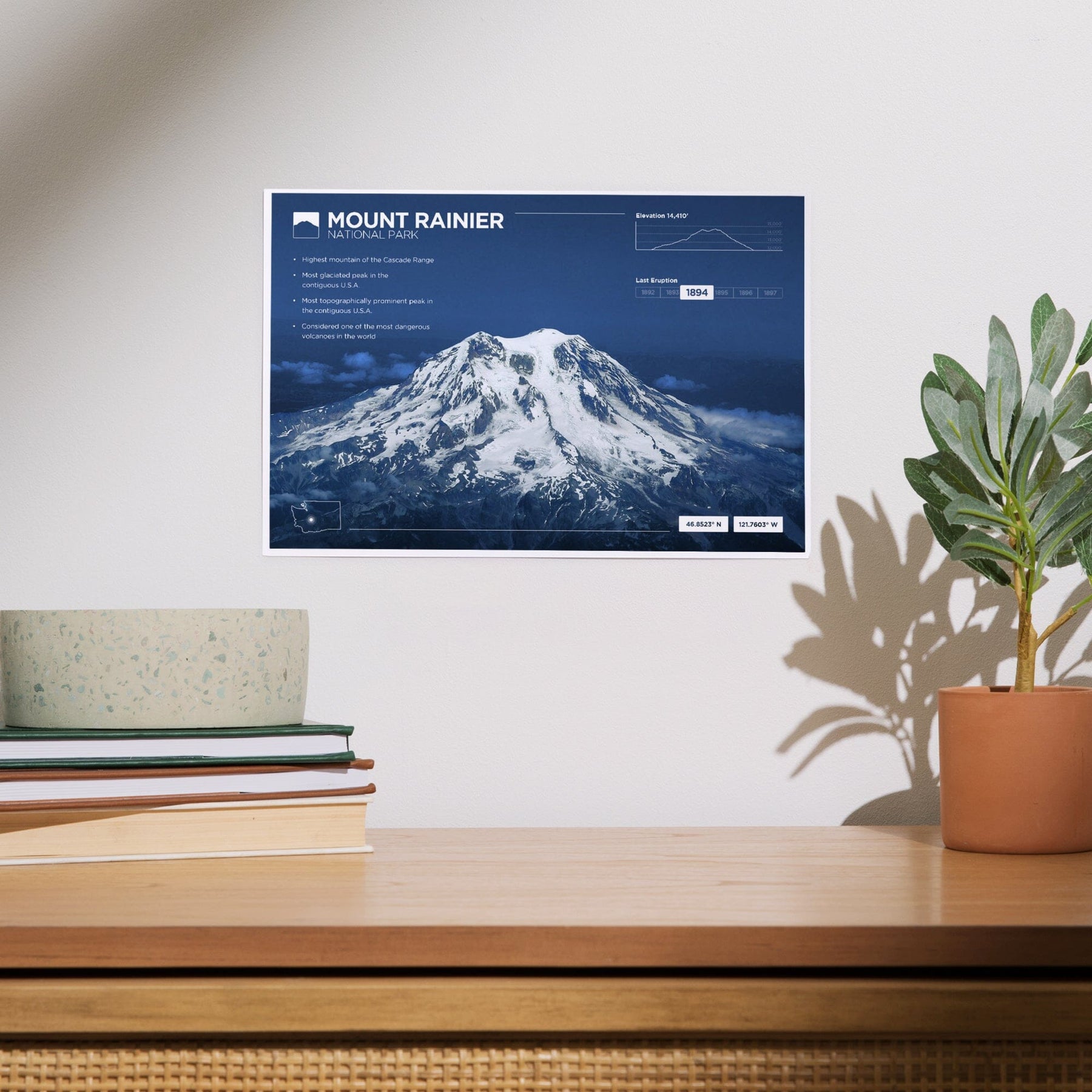 Mount Rainier National Park, Washington, Aerial View, Infographic, Art & Giclee Prints