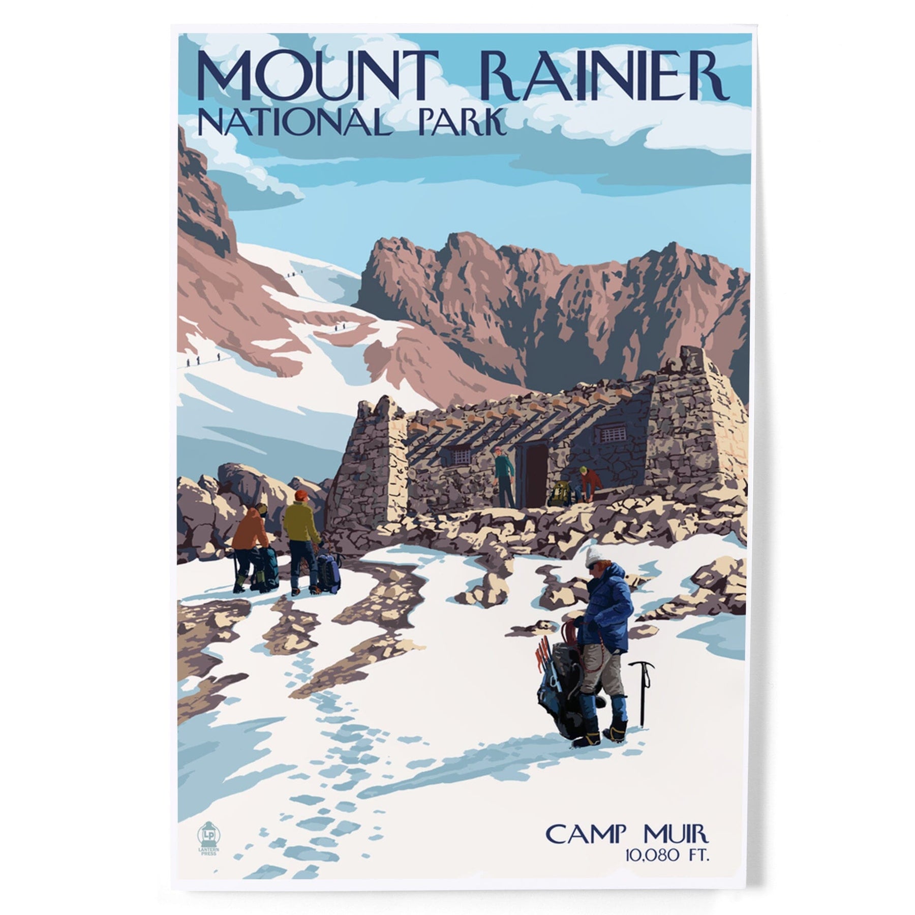 Mount Rainier National Park, Washington, Camp Muir and Climbers, Art & Giclee Prints Art Lantern Press