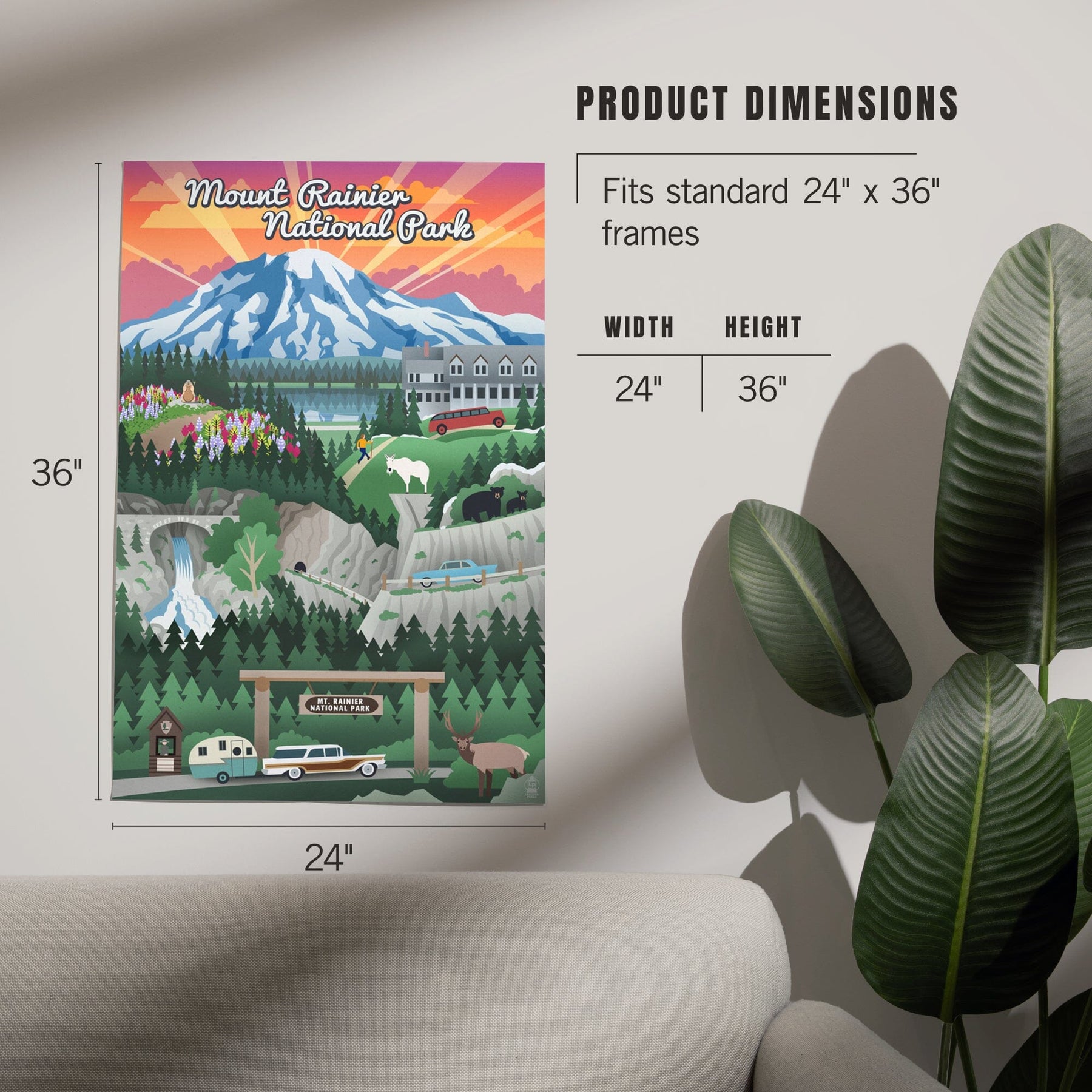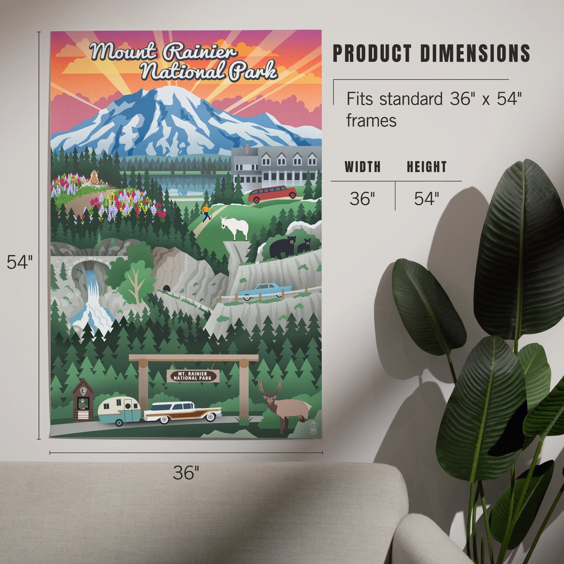 Mount Rainier National Park, Washington, Retro View, Art & Giclee Prints Art Lantern Press