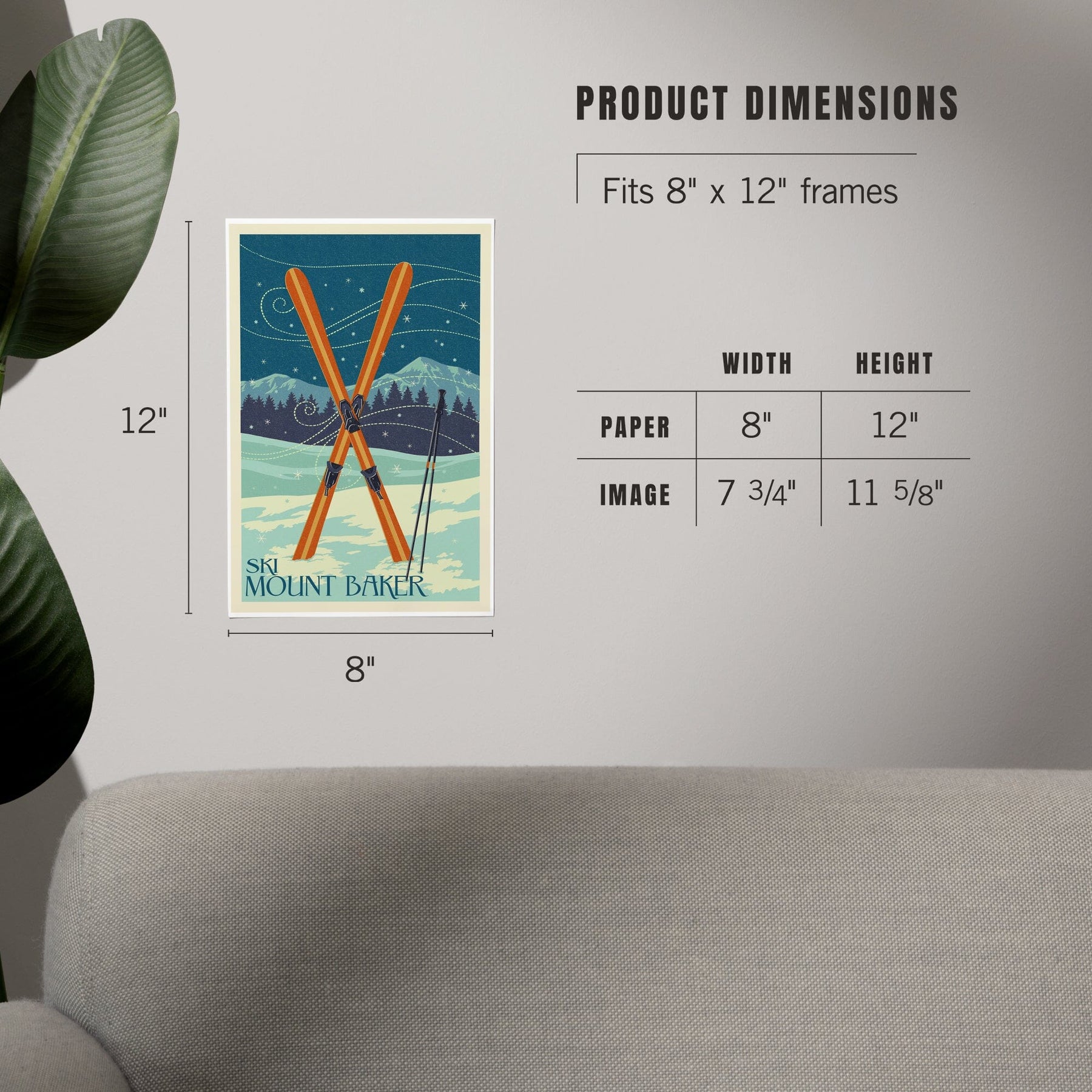 Mt. Baker, Washington, Crossed Skis, Letterpress, Art & Giclee Prints Art Lantern Press