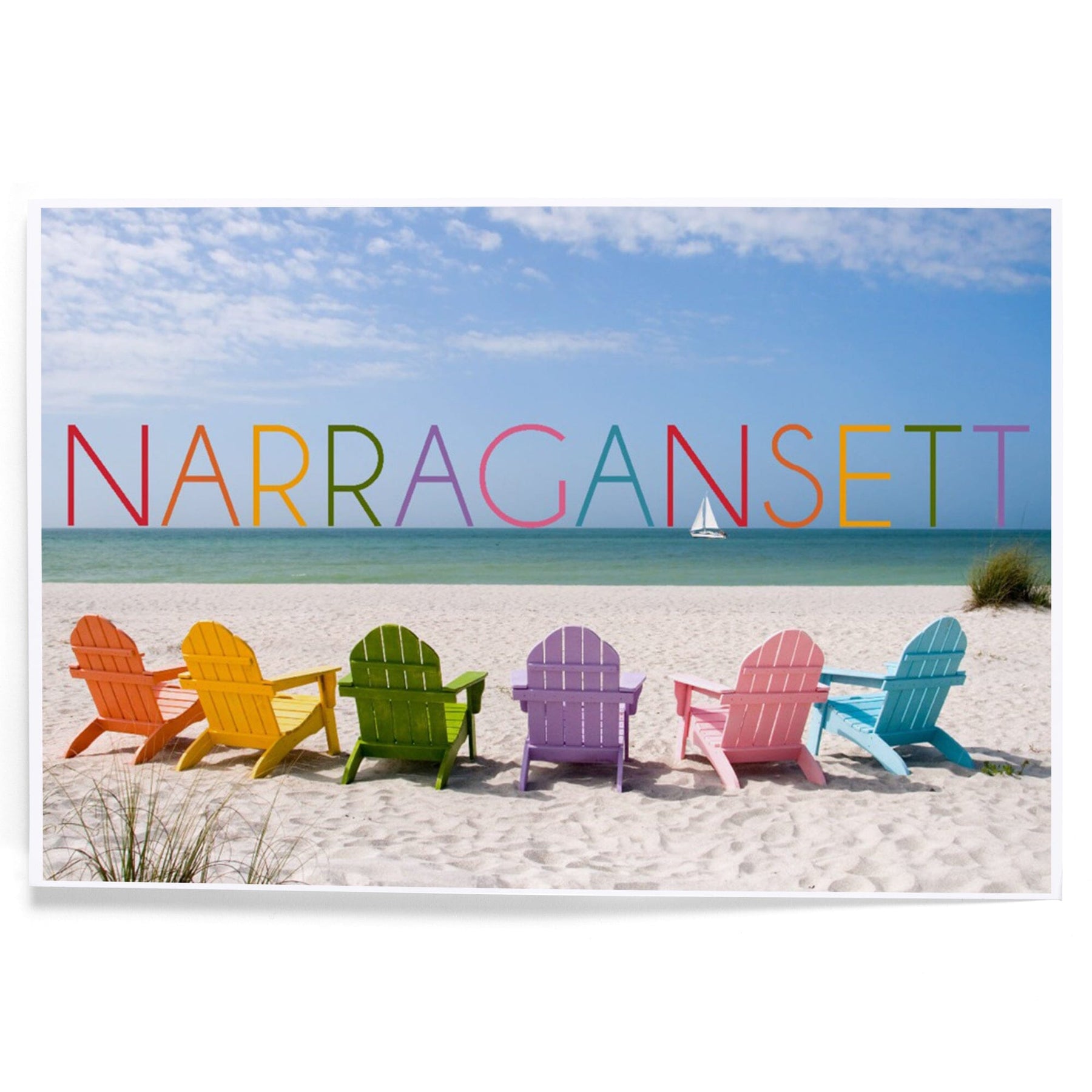 Narragansett, Rhode Island, Colorful Beach Chairs, Art & Giclee Prints Art Lantern Press