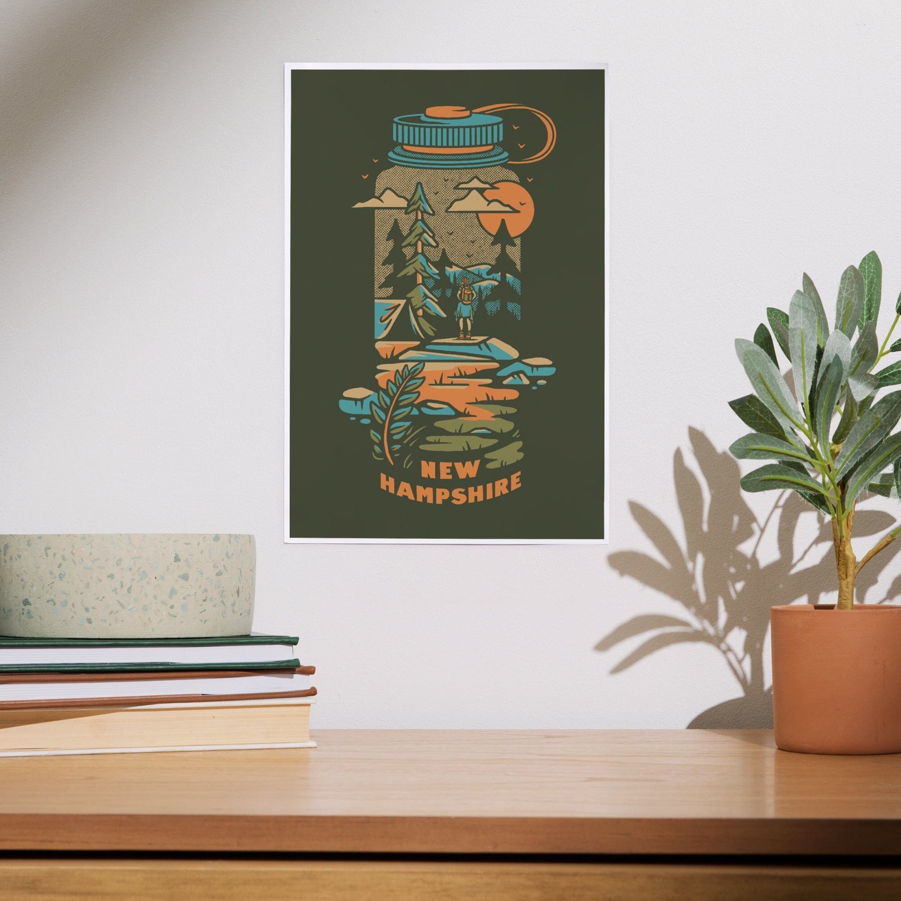 New Hampshire, Waterbottle, Distressed Vector, Art & Giclee Prints
