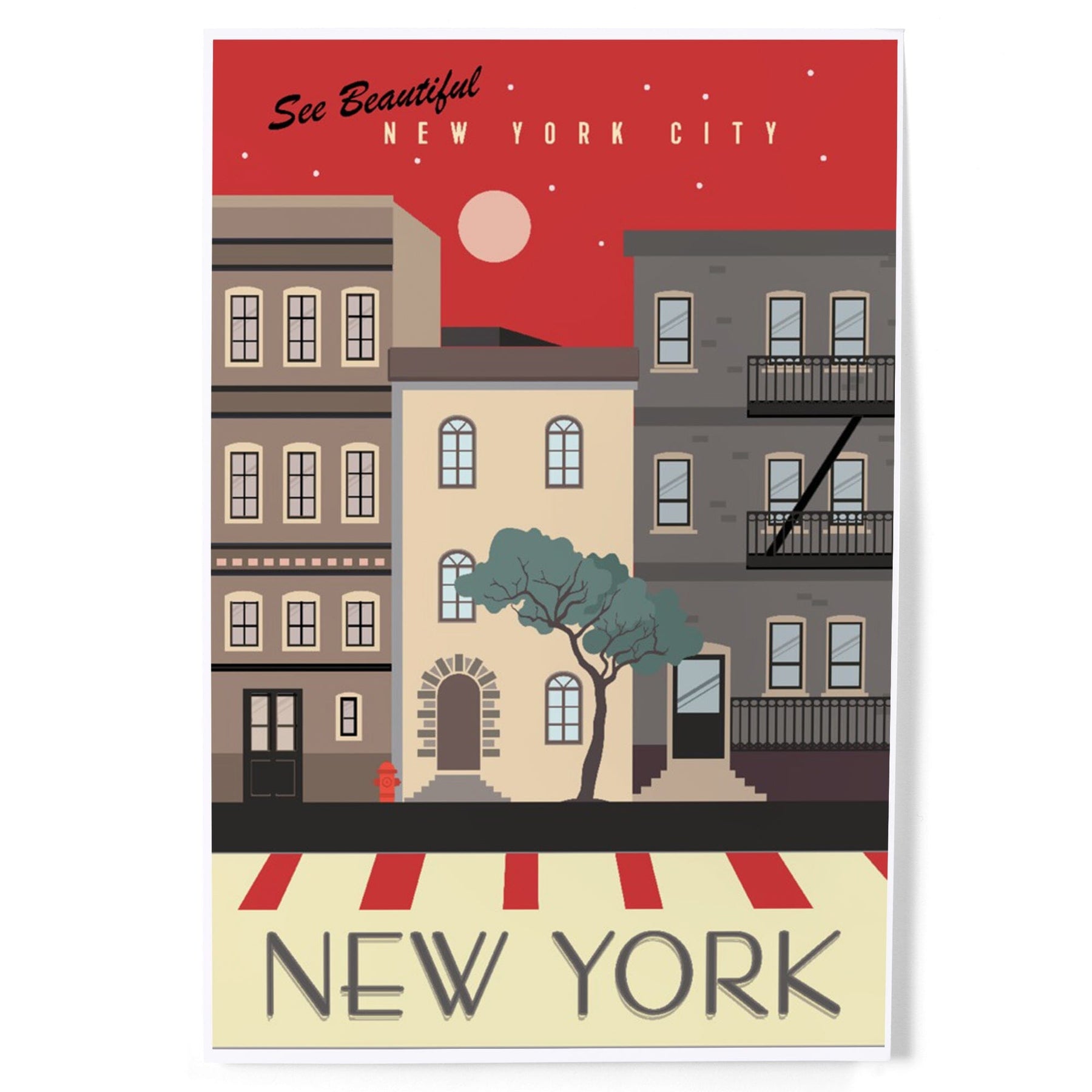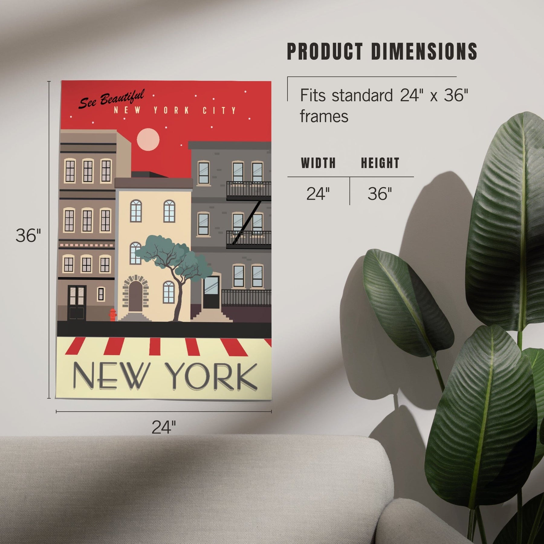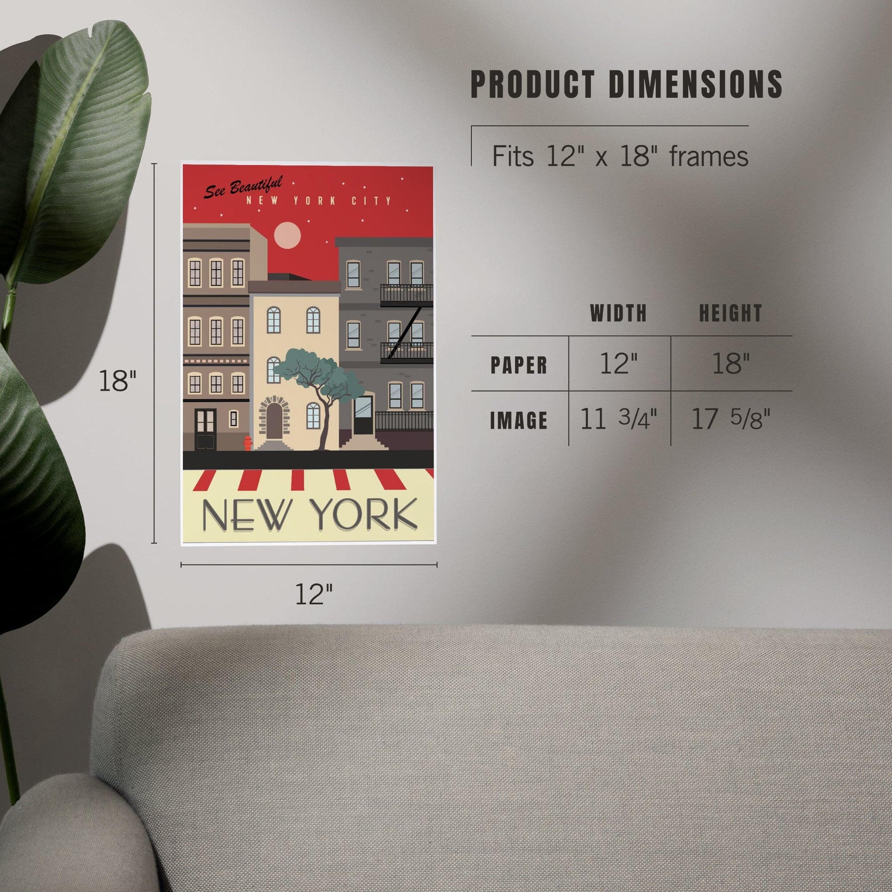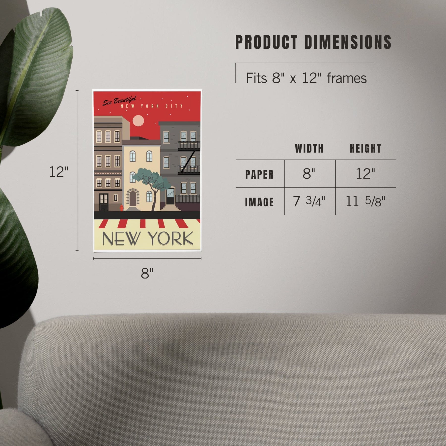 New York City, New York, Brownstones, Street Vector, Art & Giclee Prints Art Lantern Press