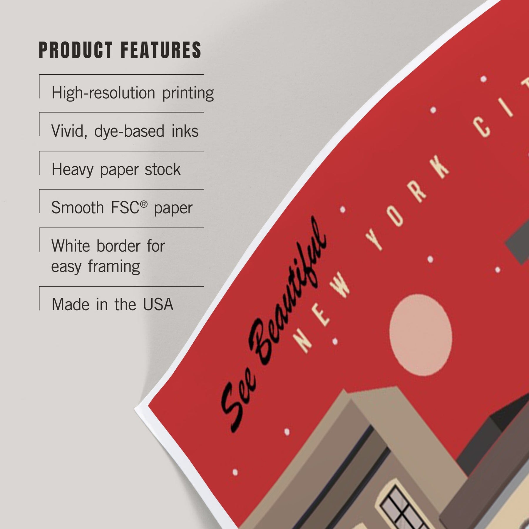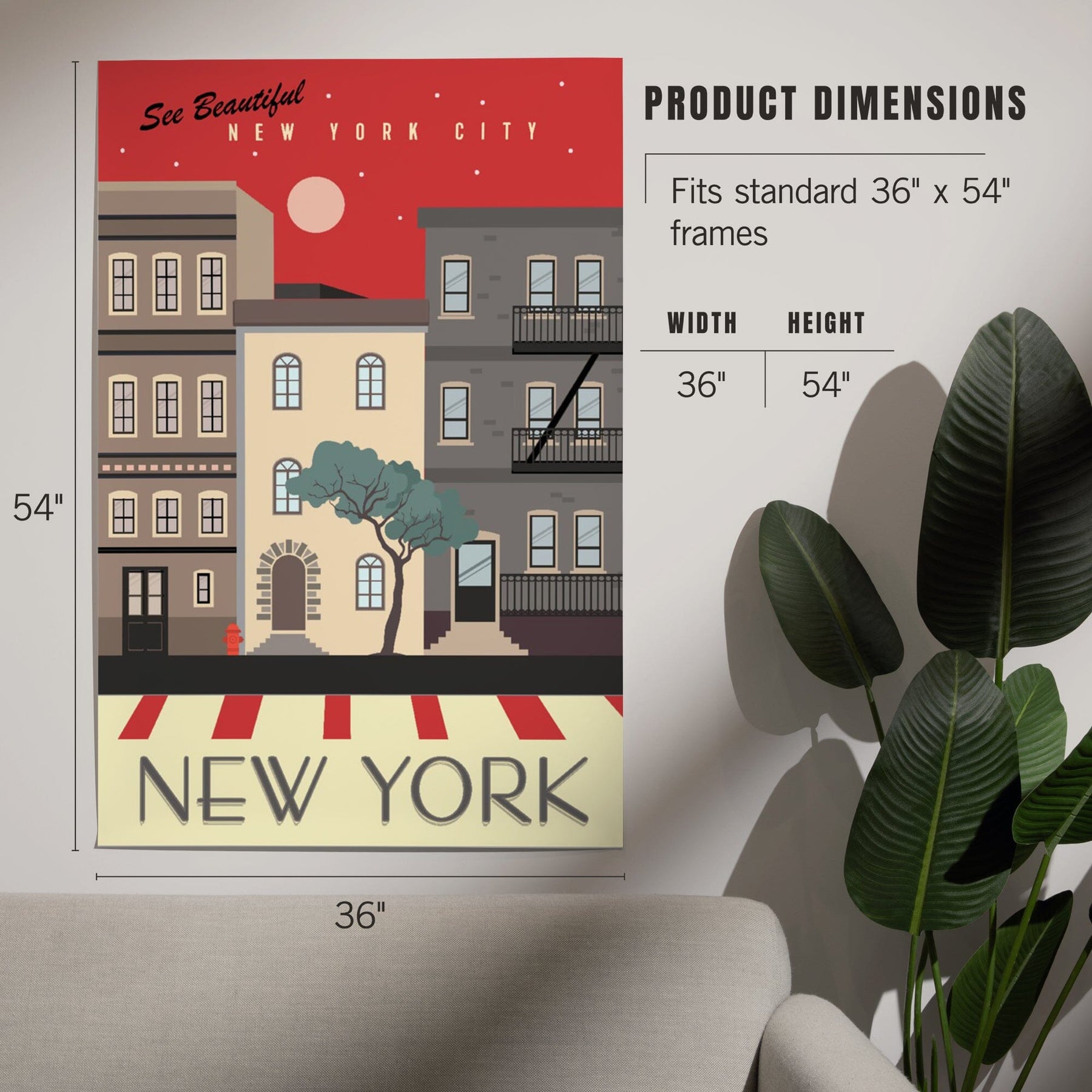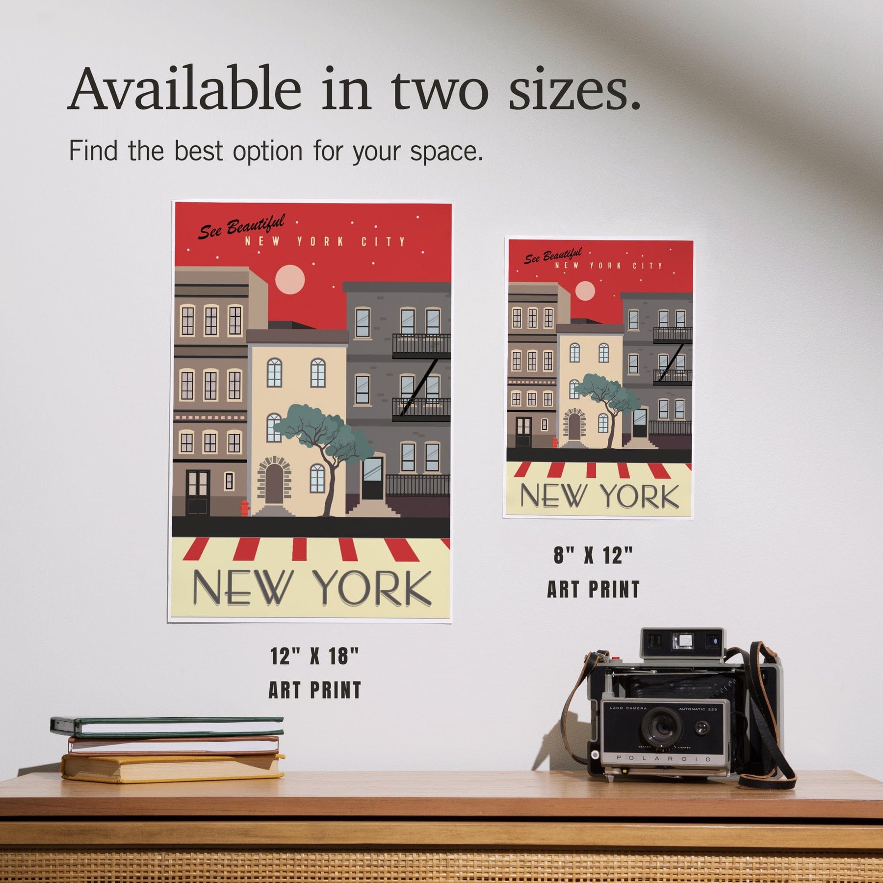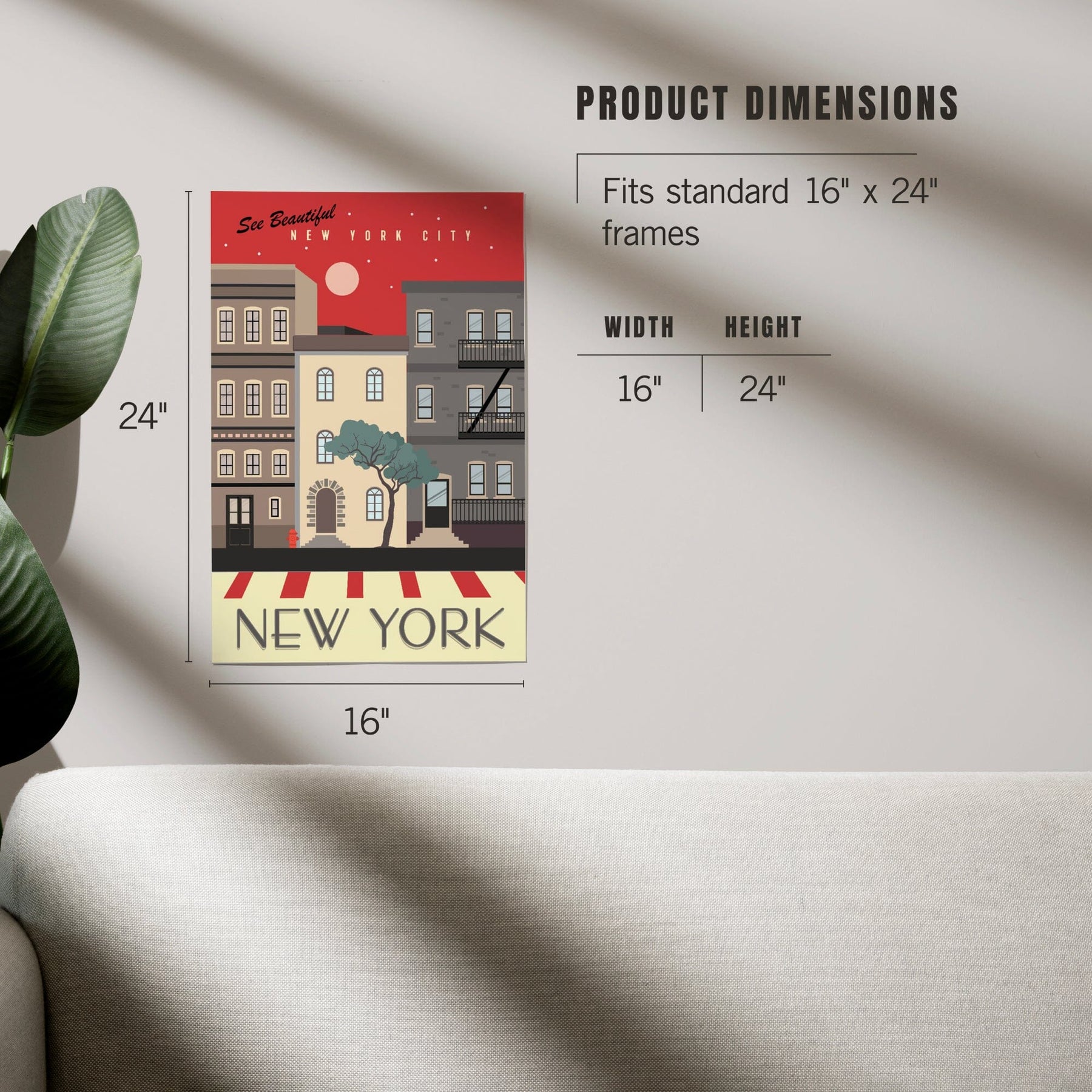 New York City, New York, Brownstones, Street Vector, Art & Giclee Prints Art Lantern Press