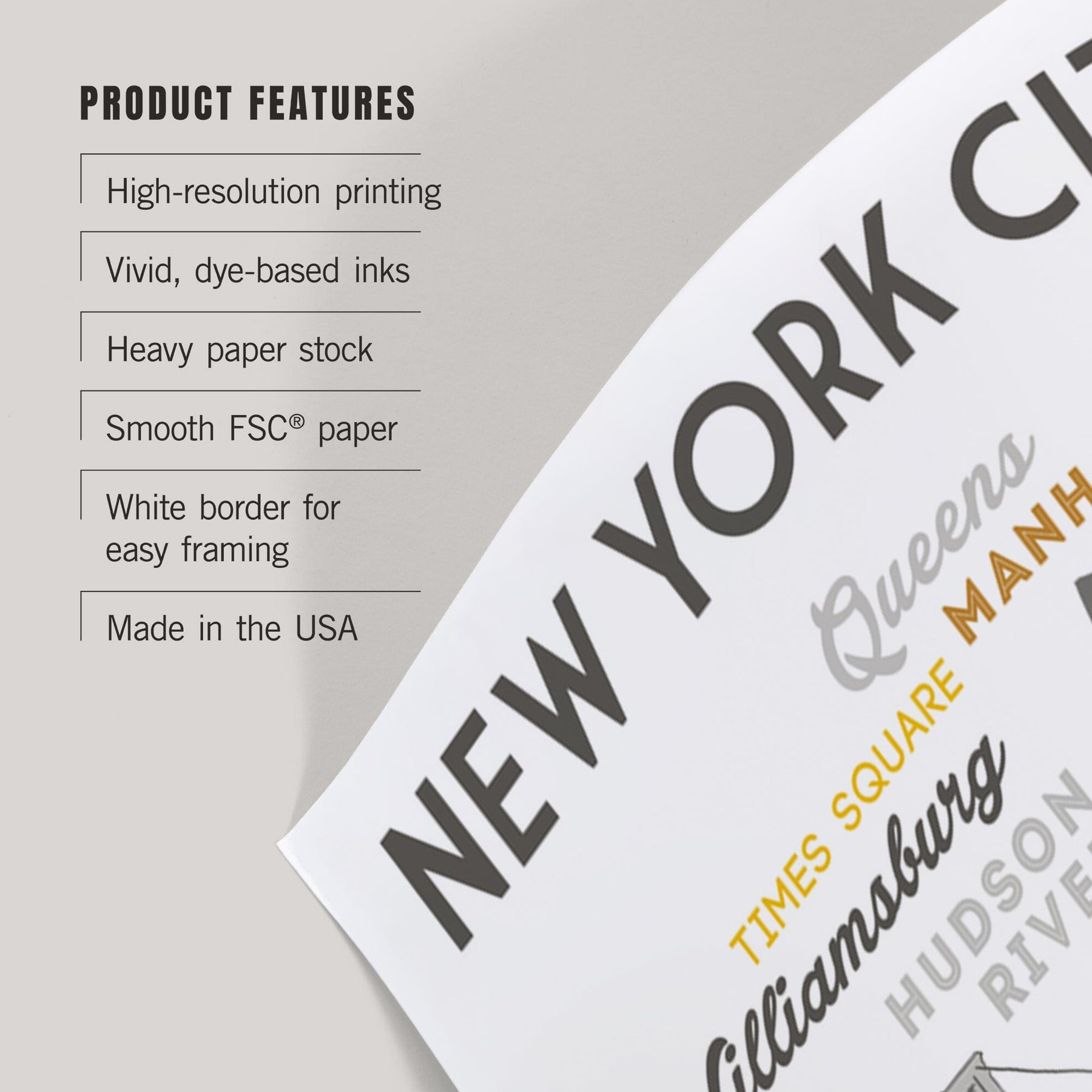 New York City, New York, Typography and Icons, Art & Giclee Prints