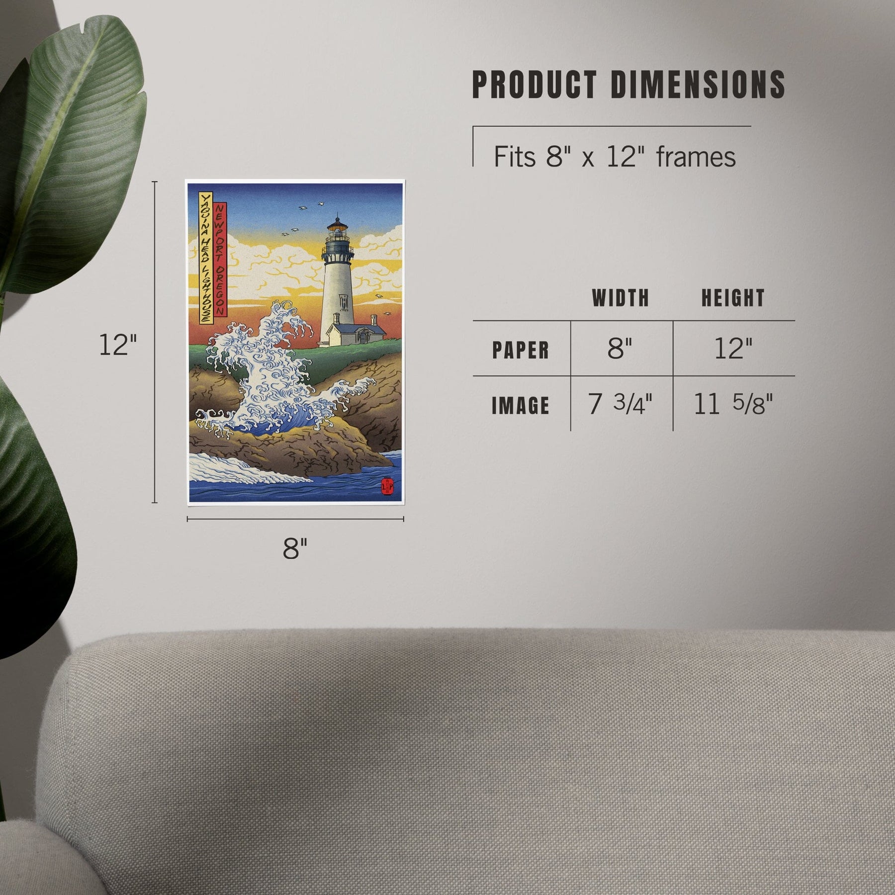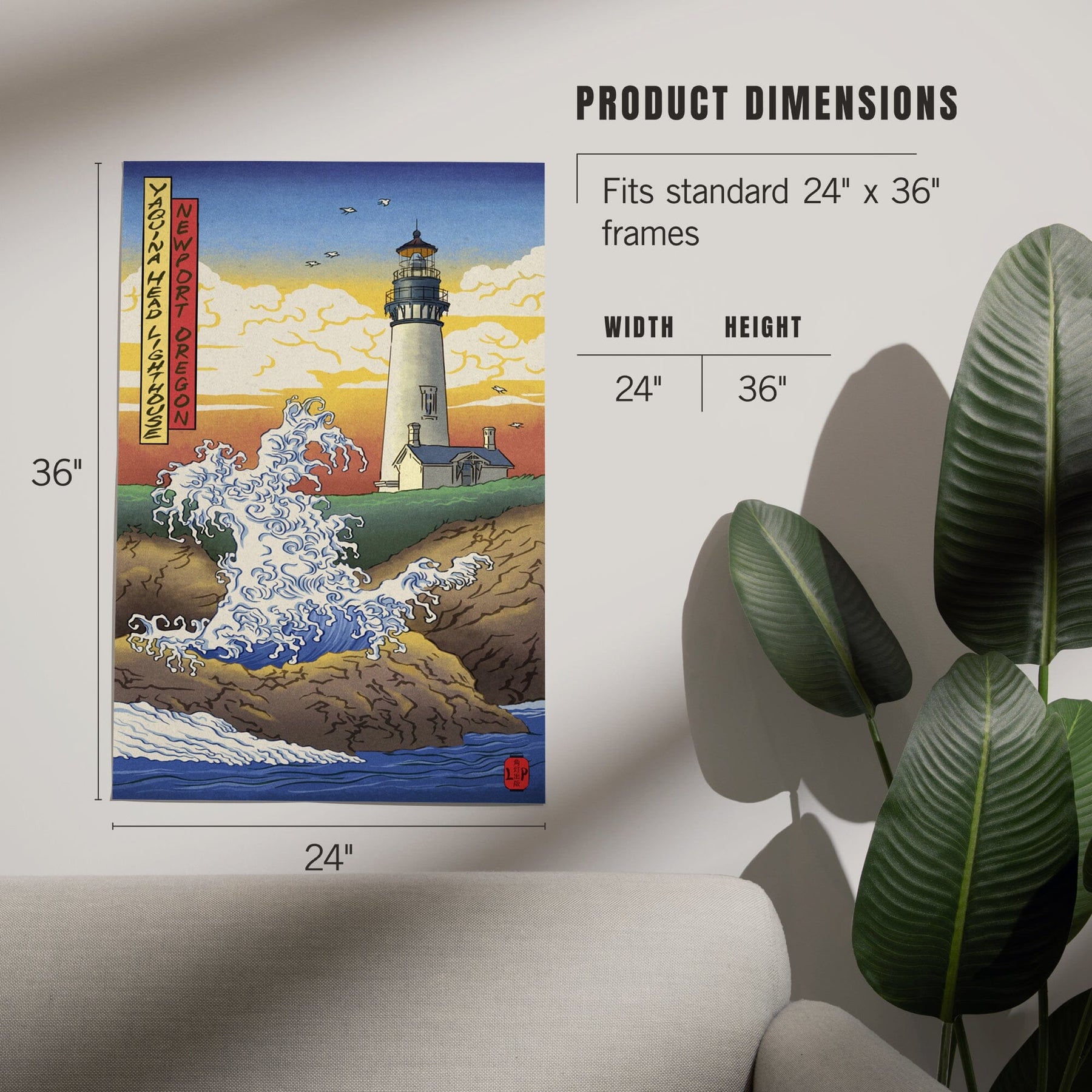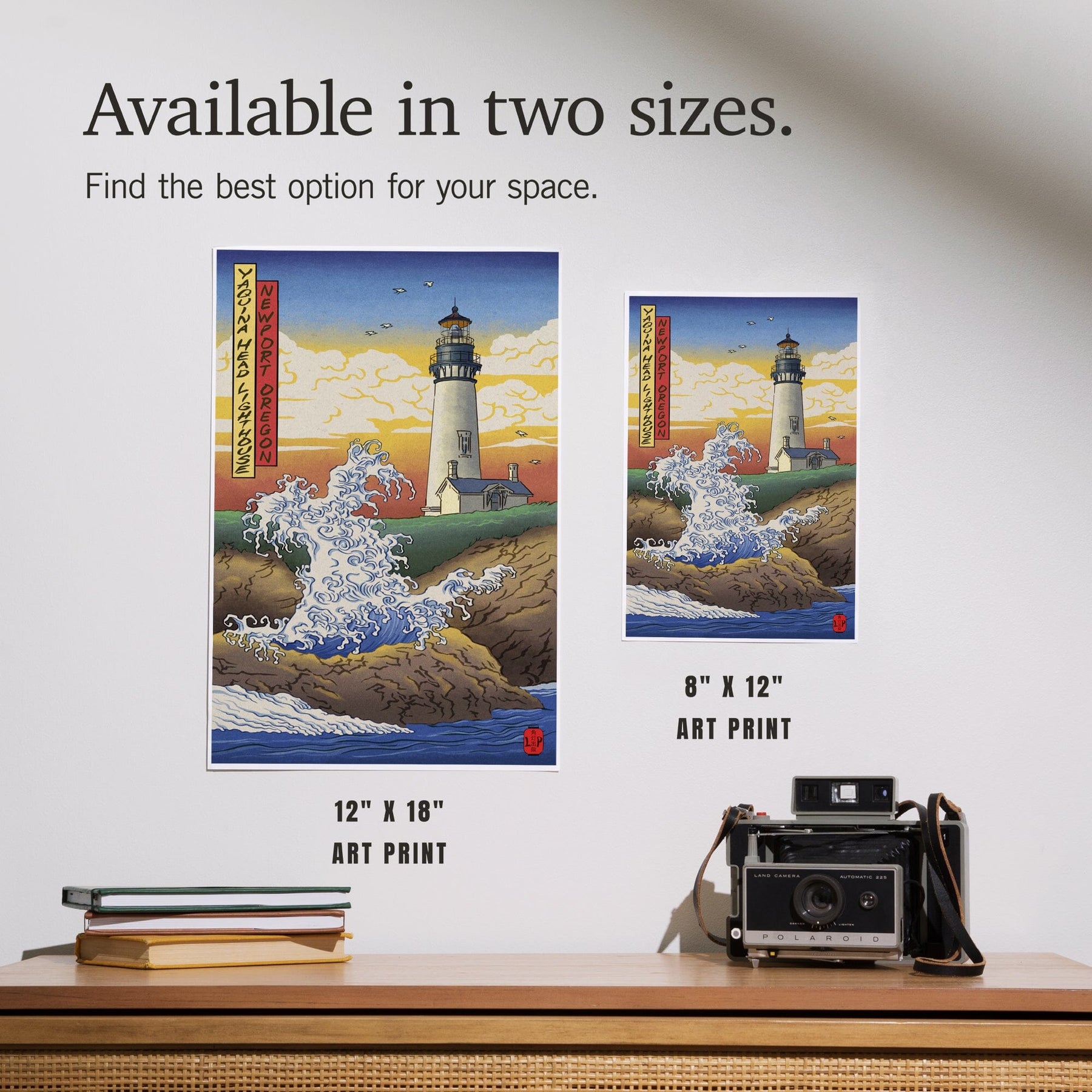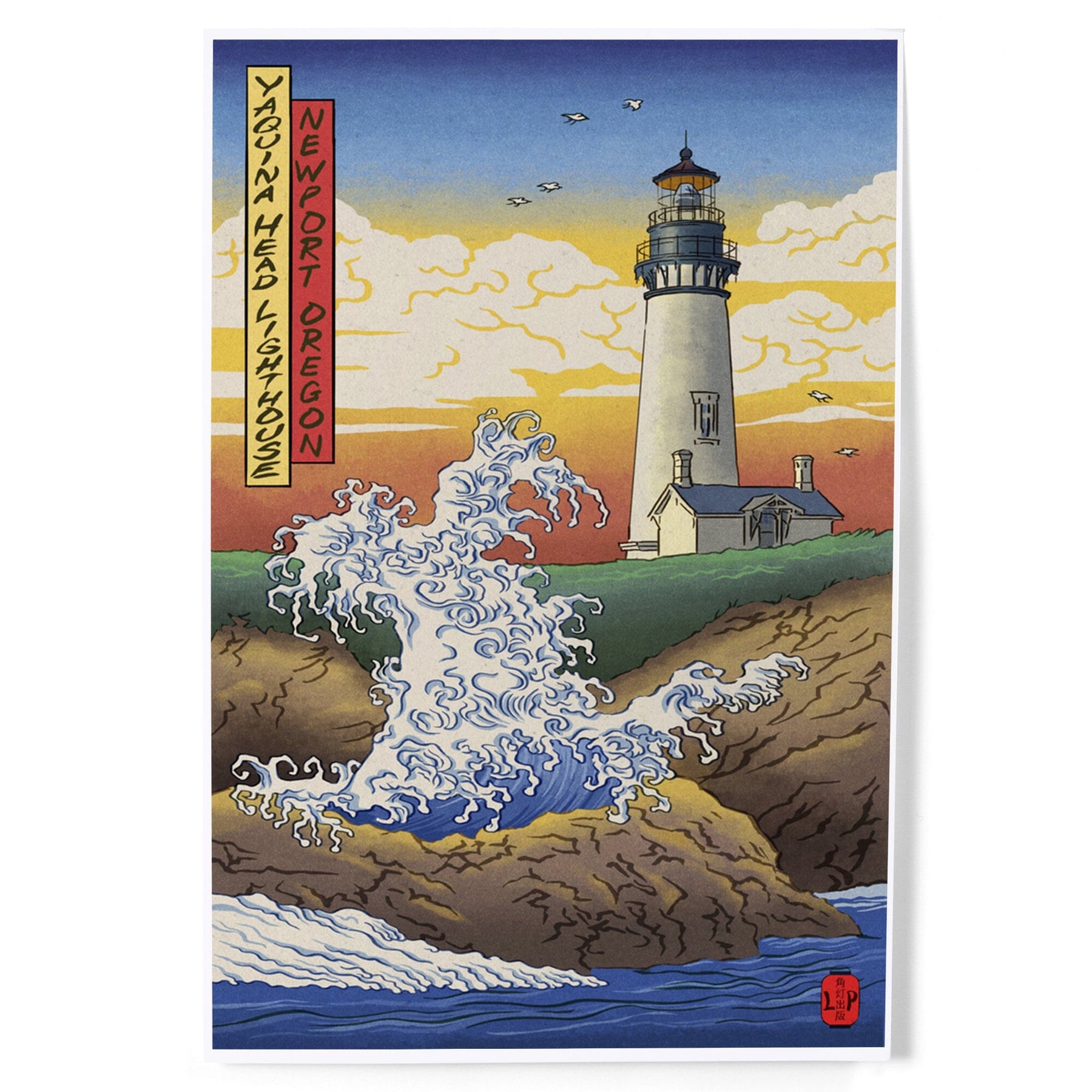 Newport, Oregon, Yaquina Head Lighthouse Woodblock, Art & Giclee Prints Art Lantern Press