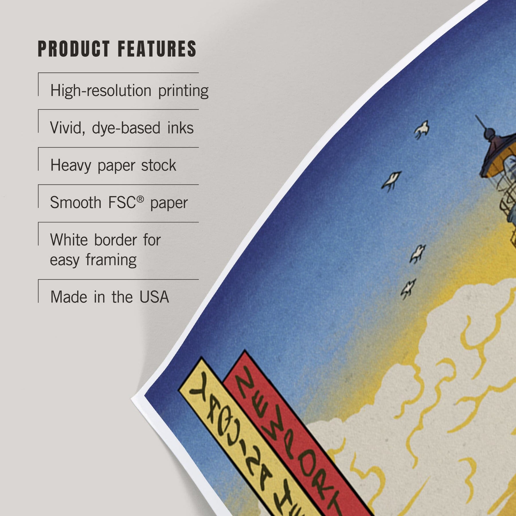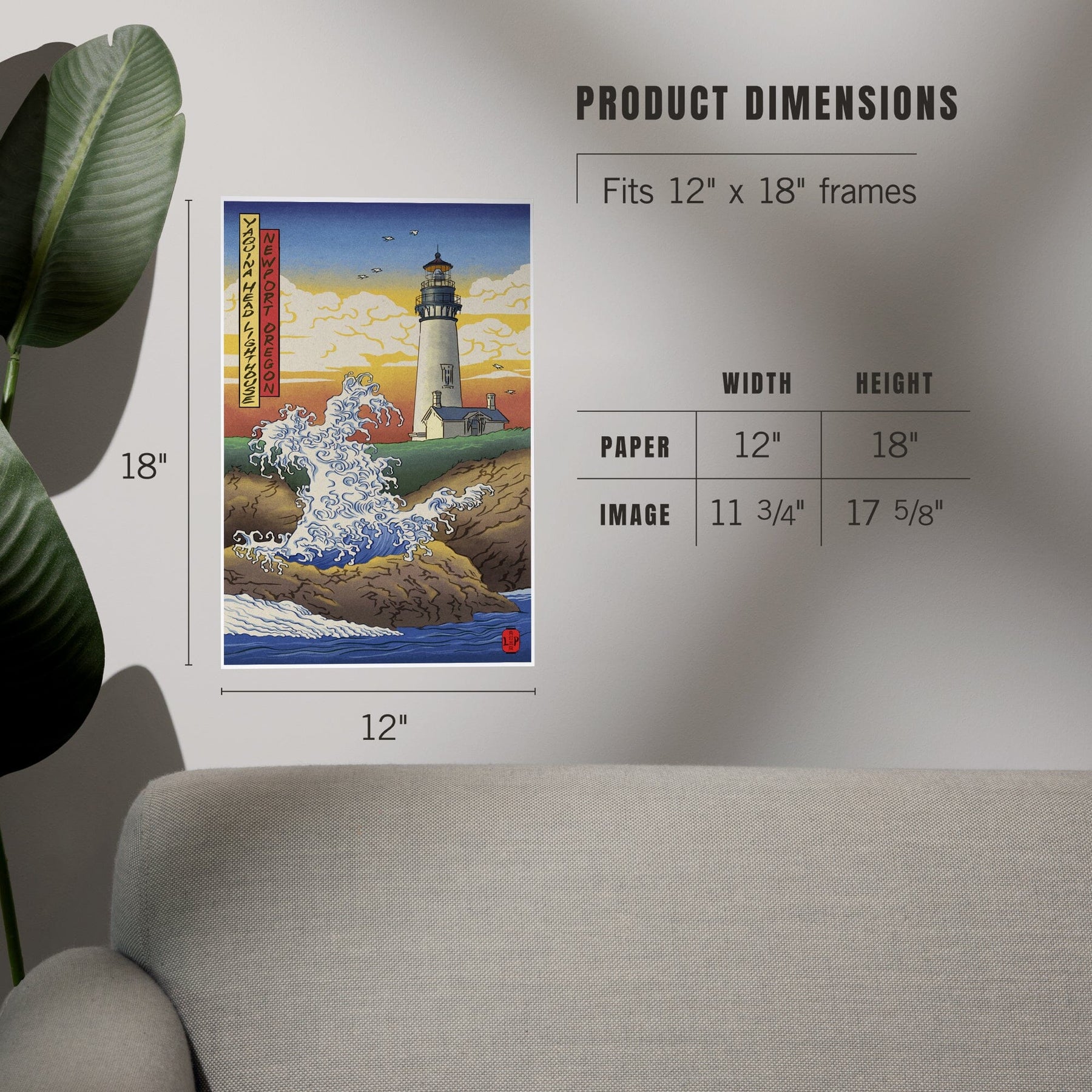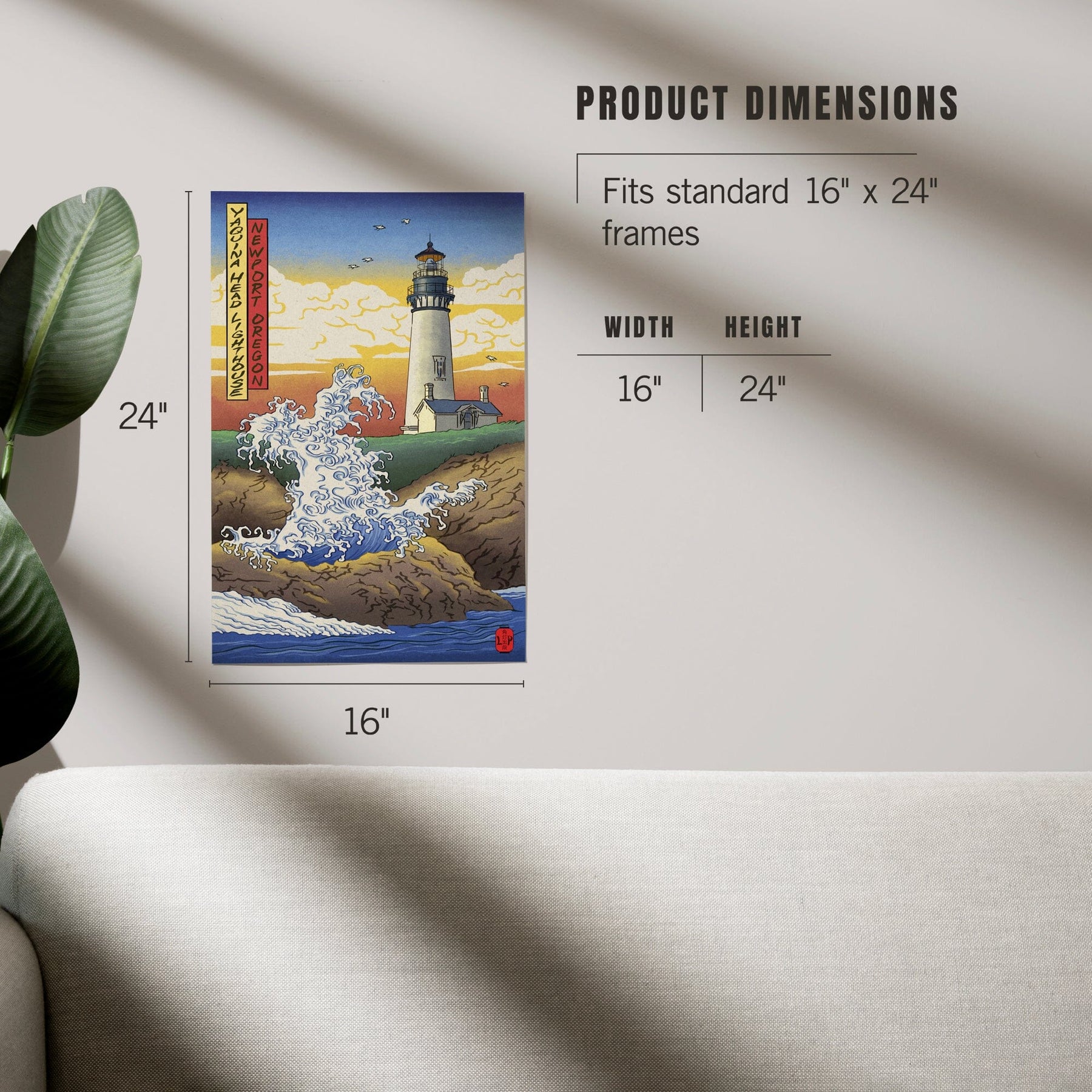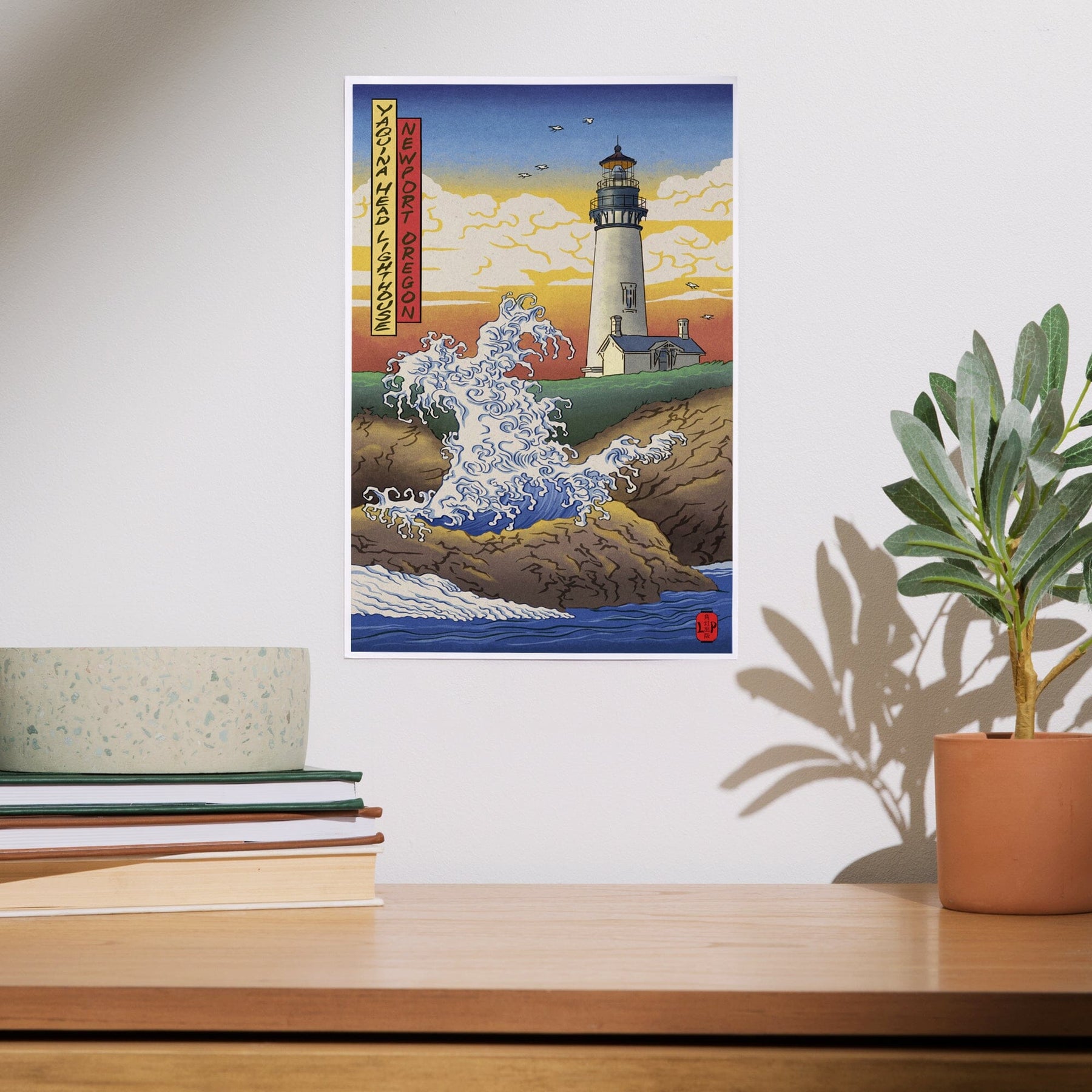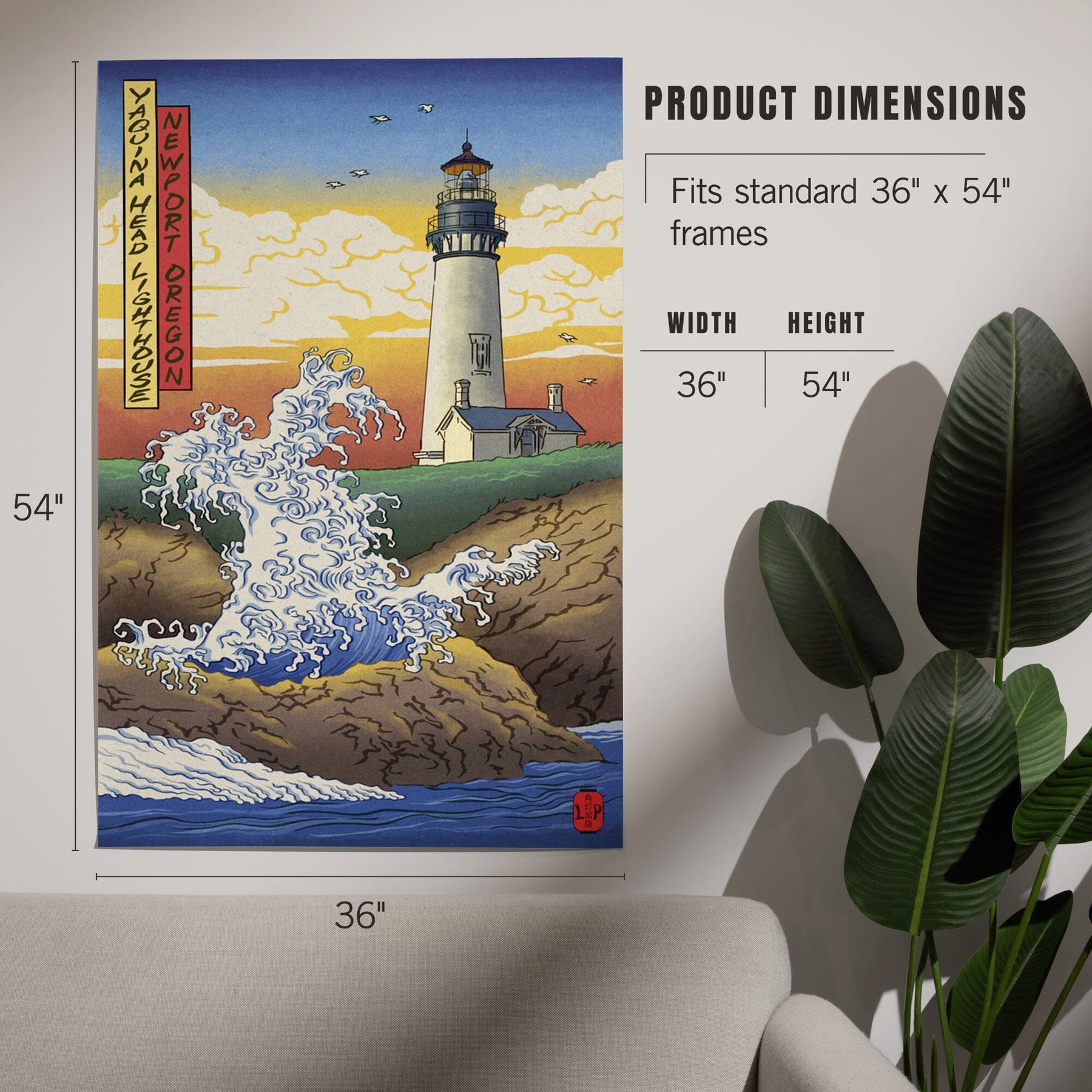 Newport, Oregon, Yaquina Head Lighthouse Woodblock, Art & Giclee Prints Art Lantern Press