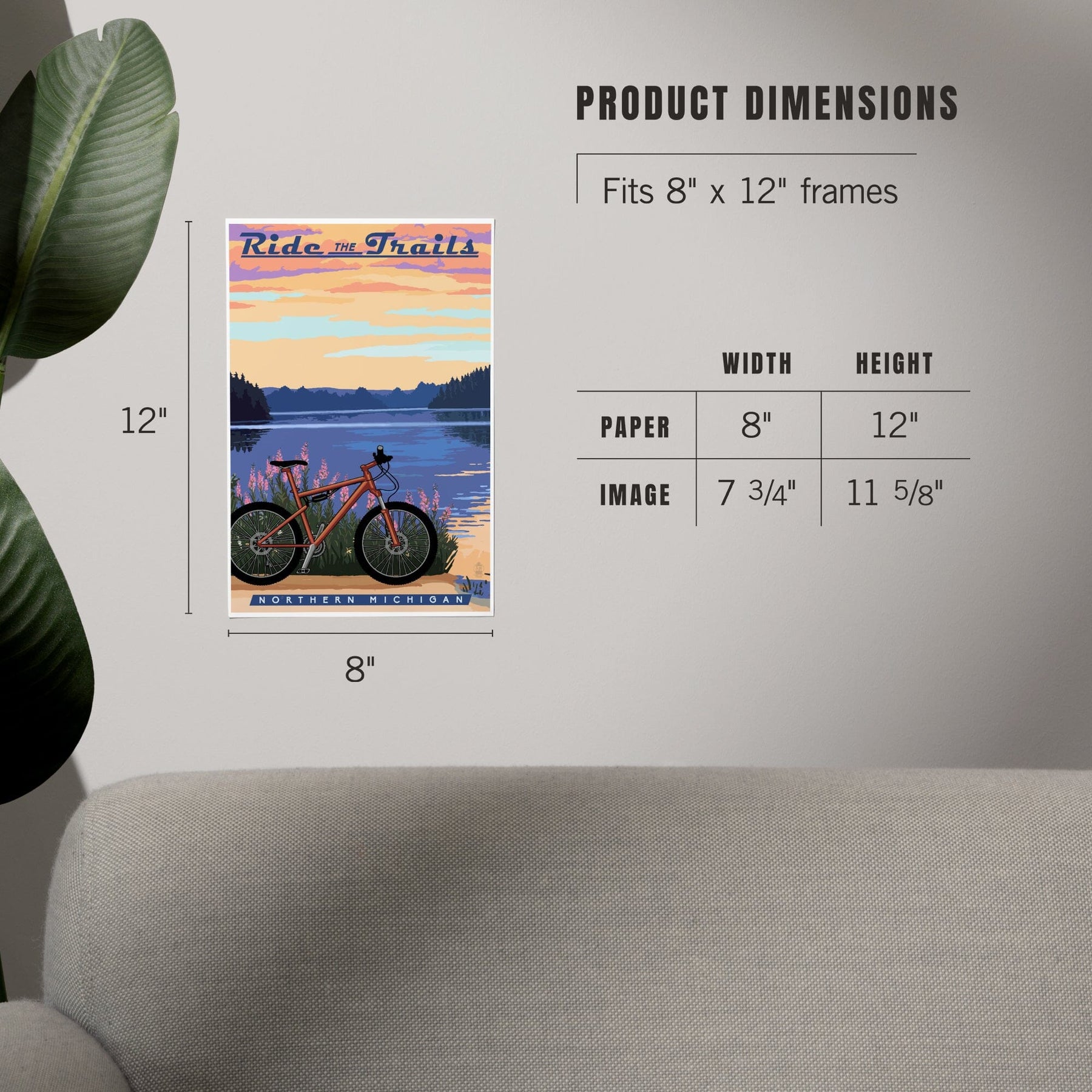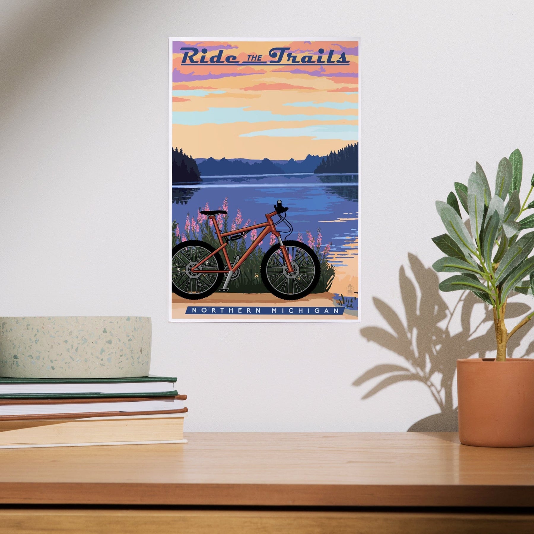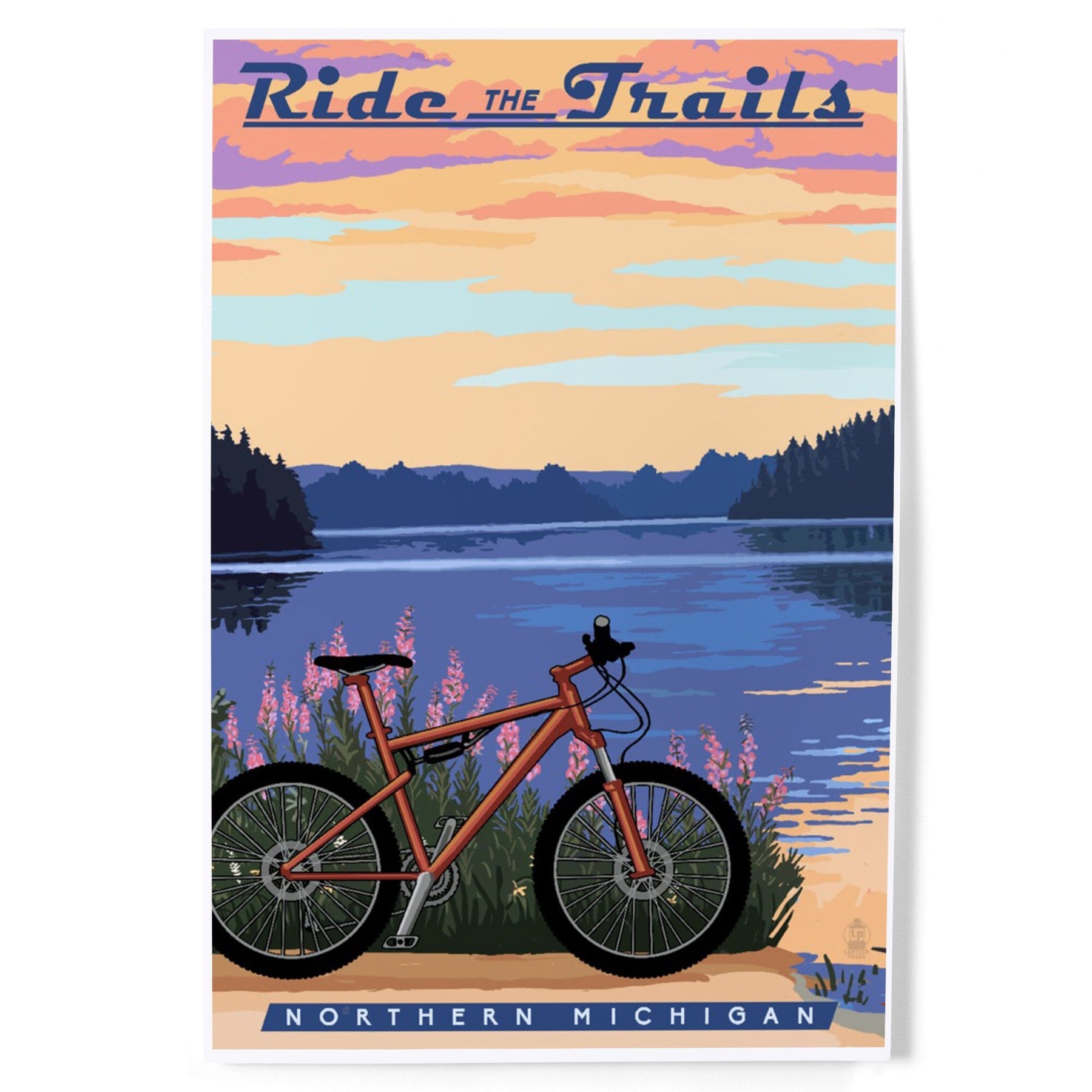 Northern Michigan, Bike and Lake, Ride the Trails, Art & Giclee Prints Art Lantern Press