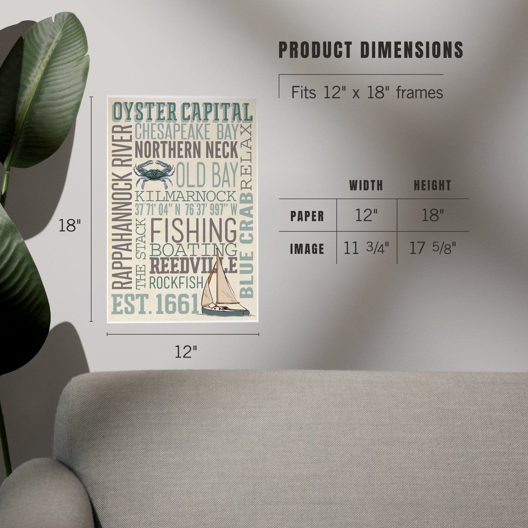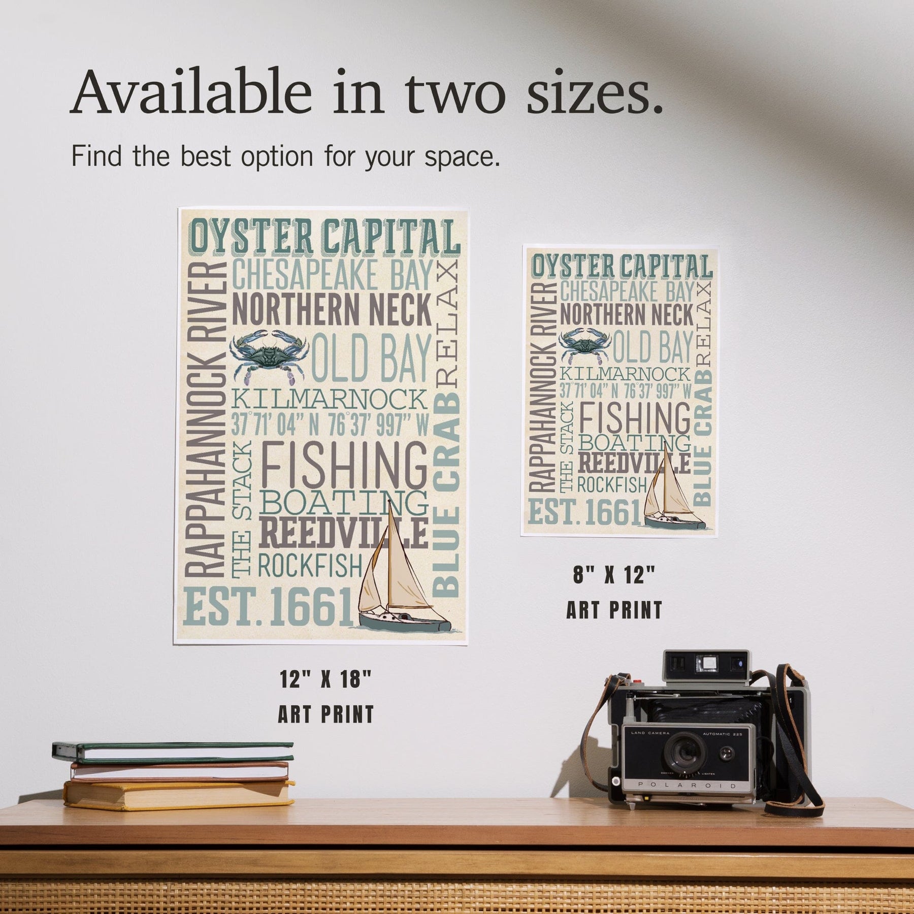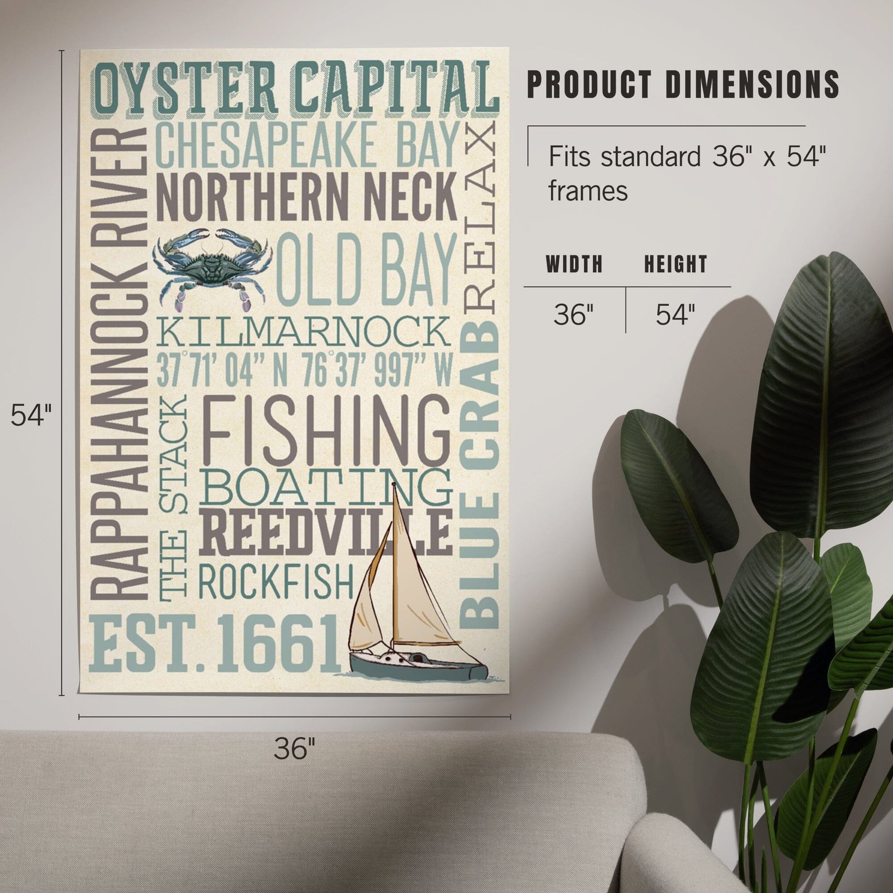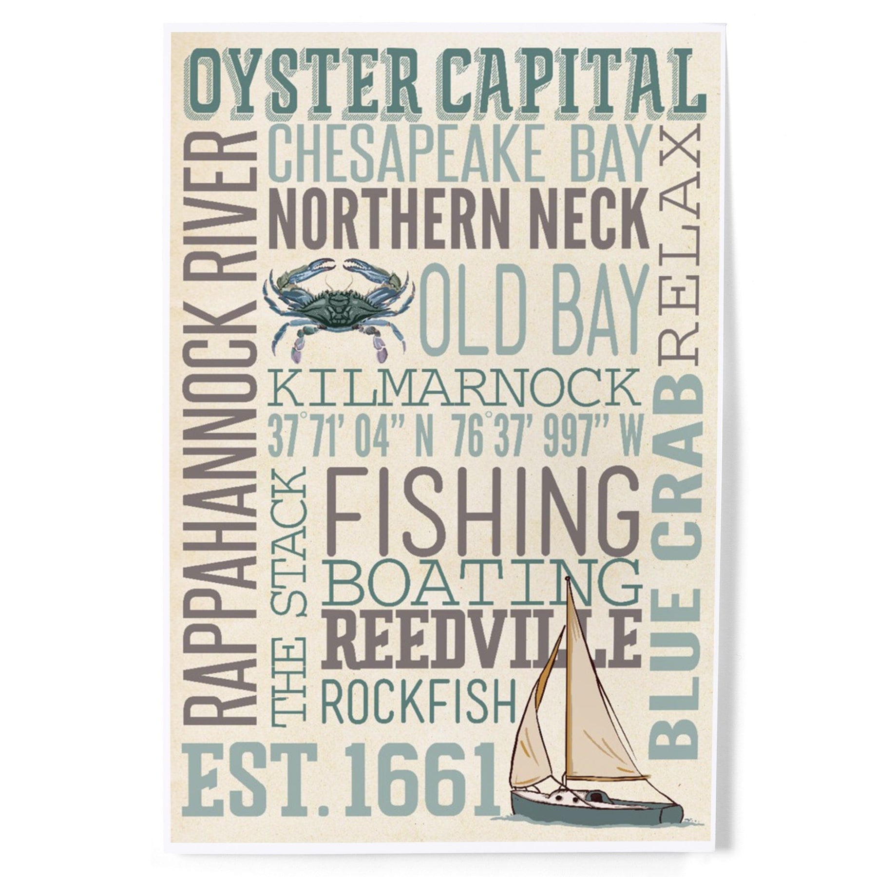 Northern Neck, Virginia, Chesapeake Bay, Oyster Capital, Typography, Art & Giclee Prints Art Lantern Press