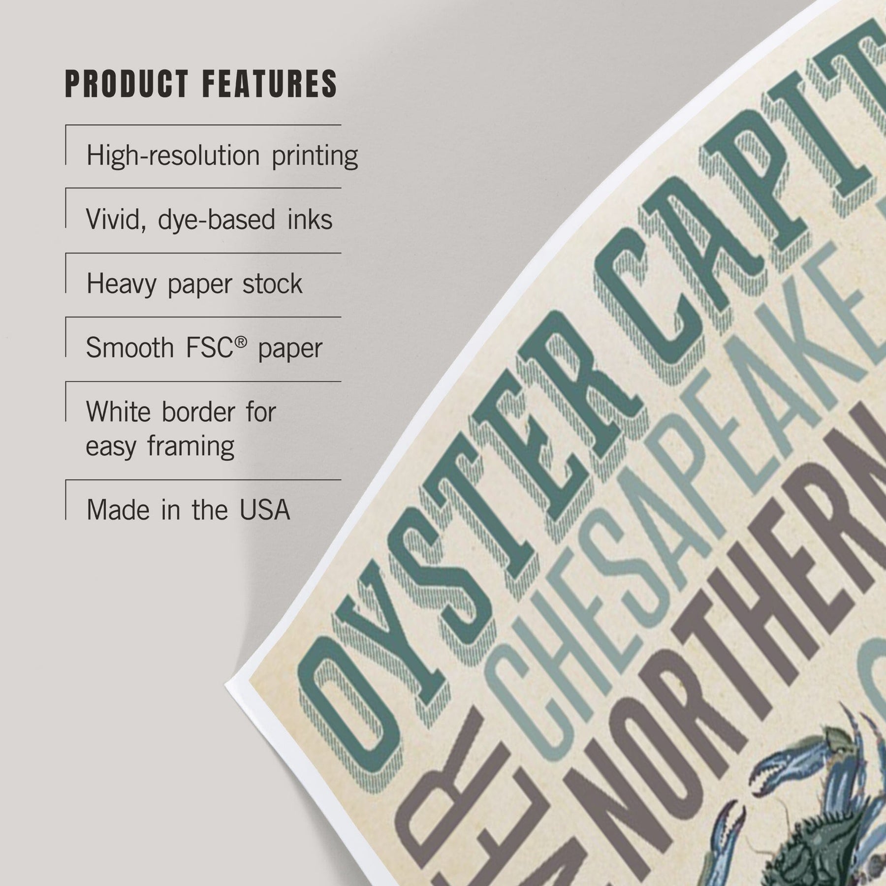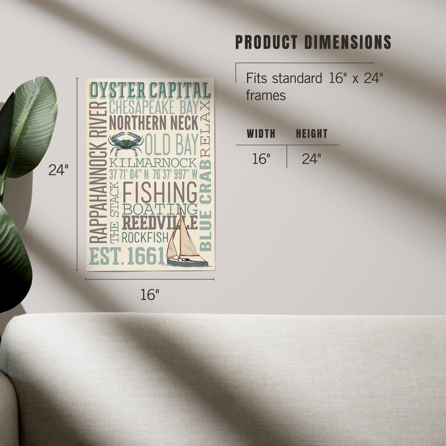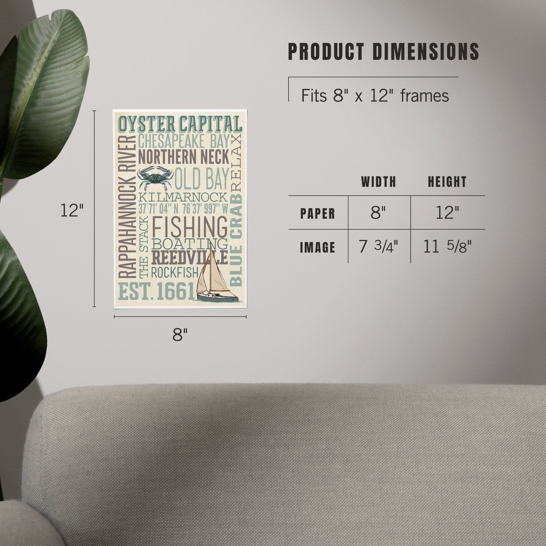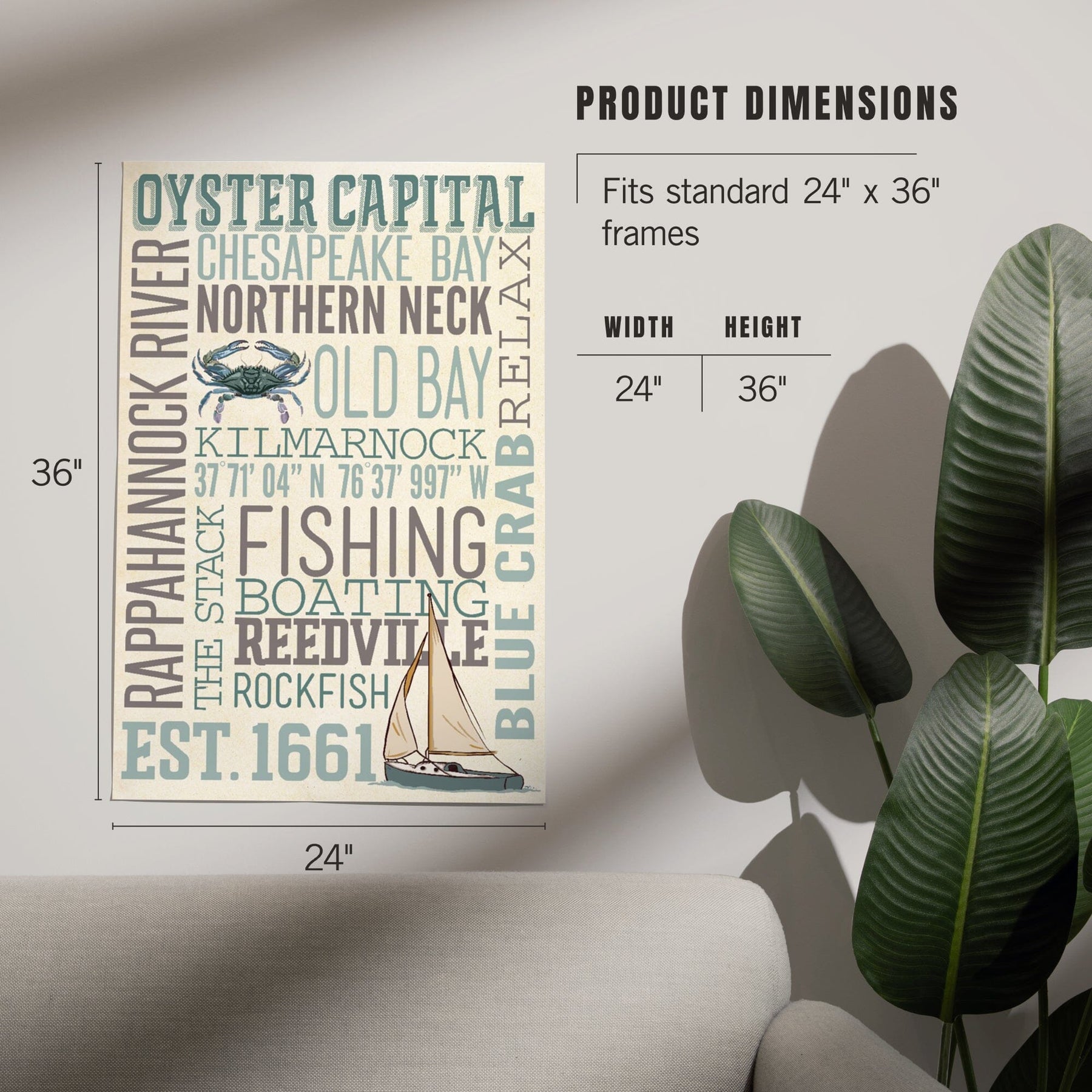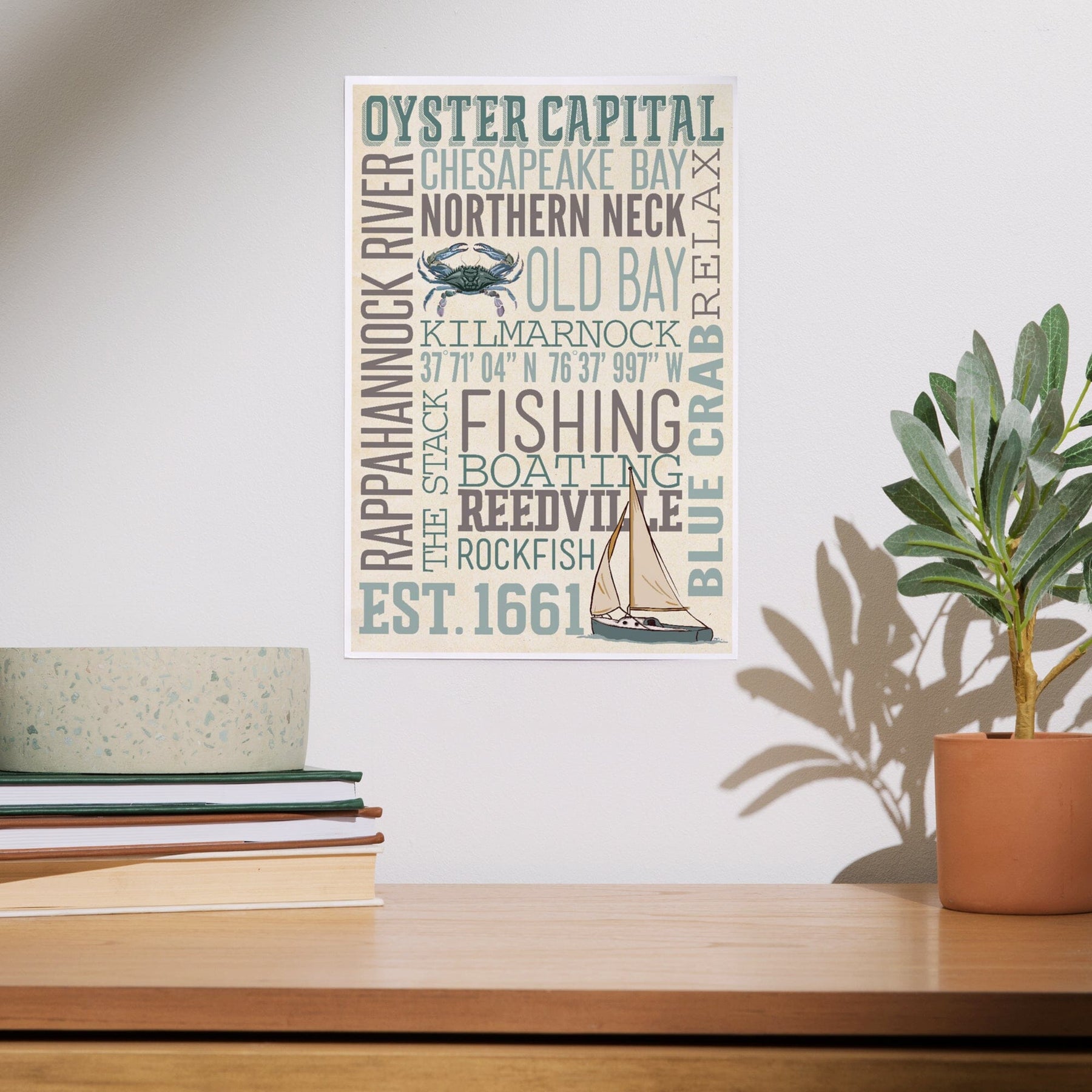 Northern Neck, Virginia, Chesapeake Bay, Oyster Capital, Typography, Art & Giclee Prints Art Lantern Press