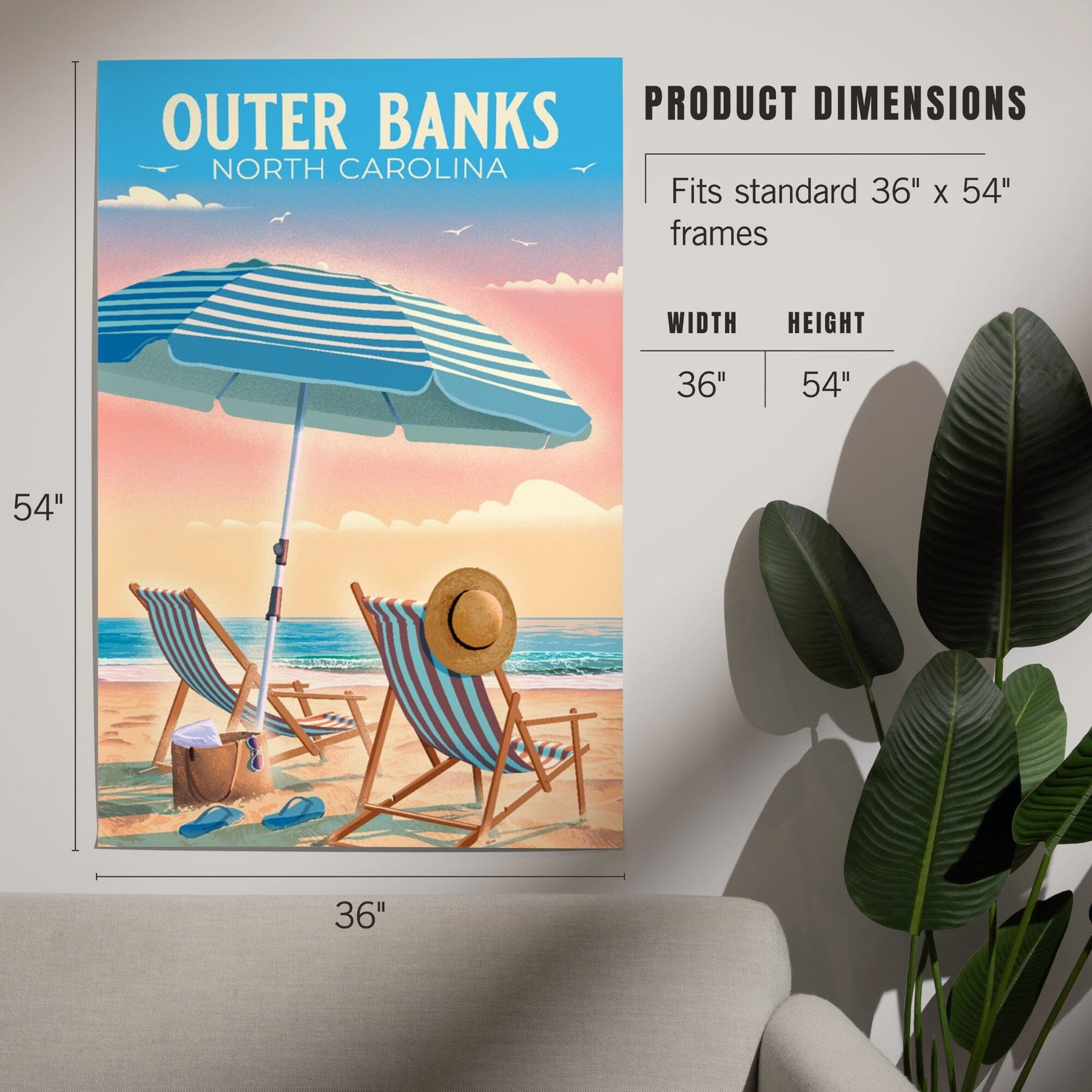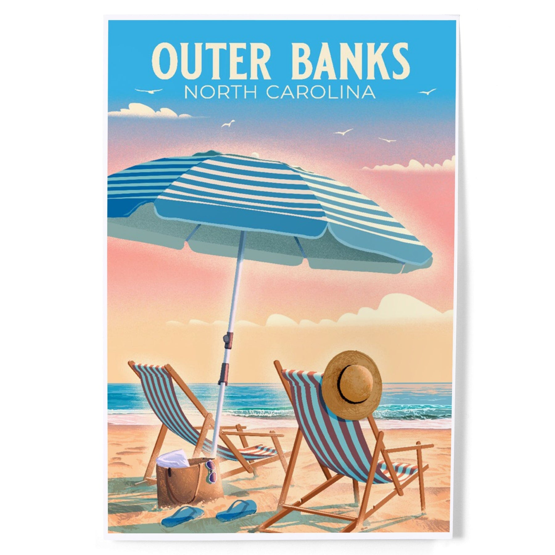 Outer Banks, North Carolina, Beach Chair and Umbrella, Art & Giclee Prints Art Lantern Press