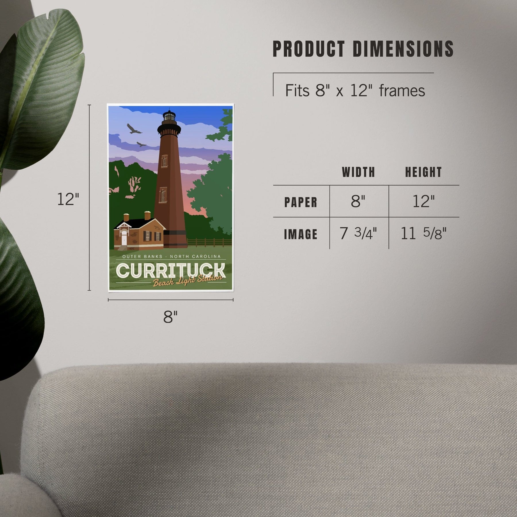 Outer Banks, North Carolina, Currituck Beach Lighthouse, Vector Style, Art & Giclee Prints Art Lantern Press
