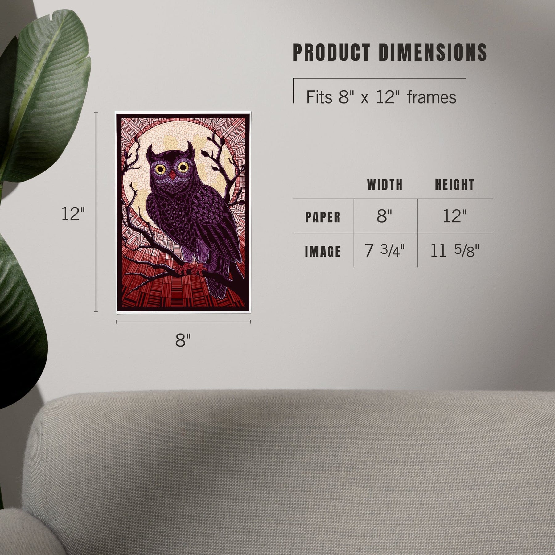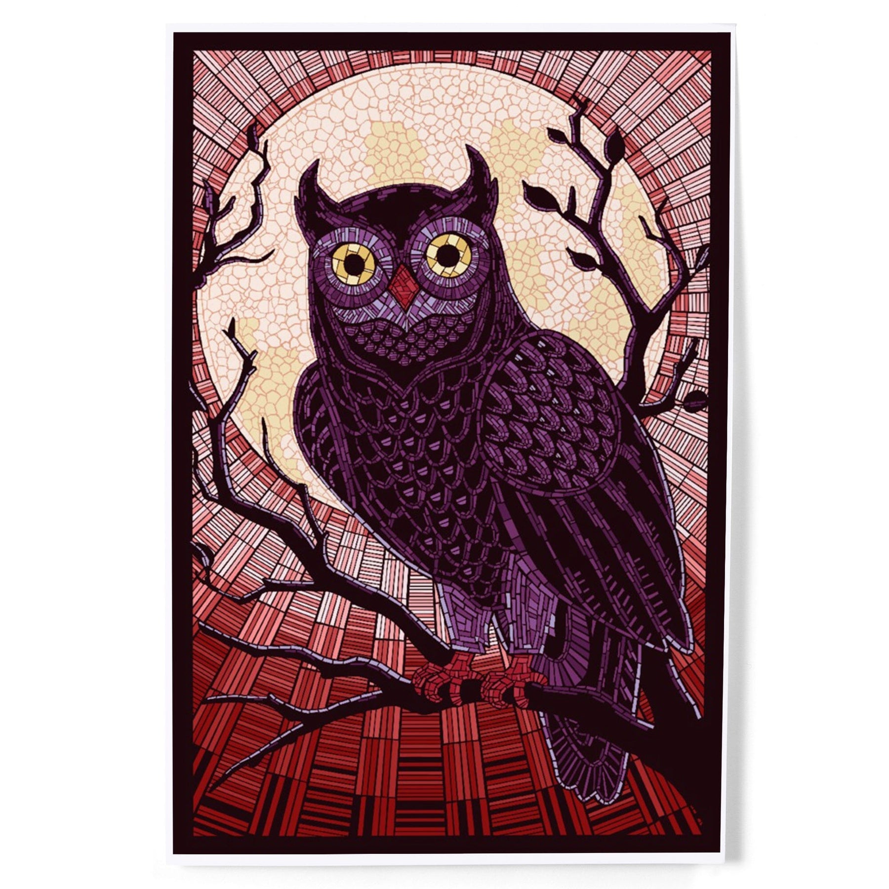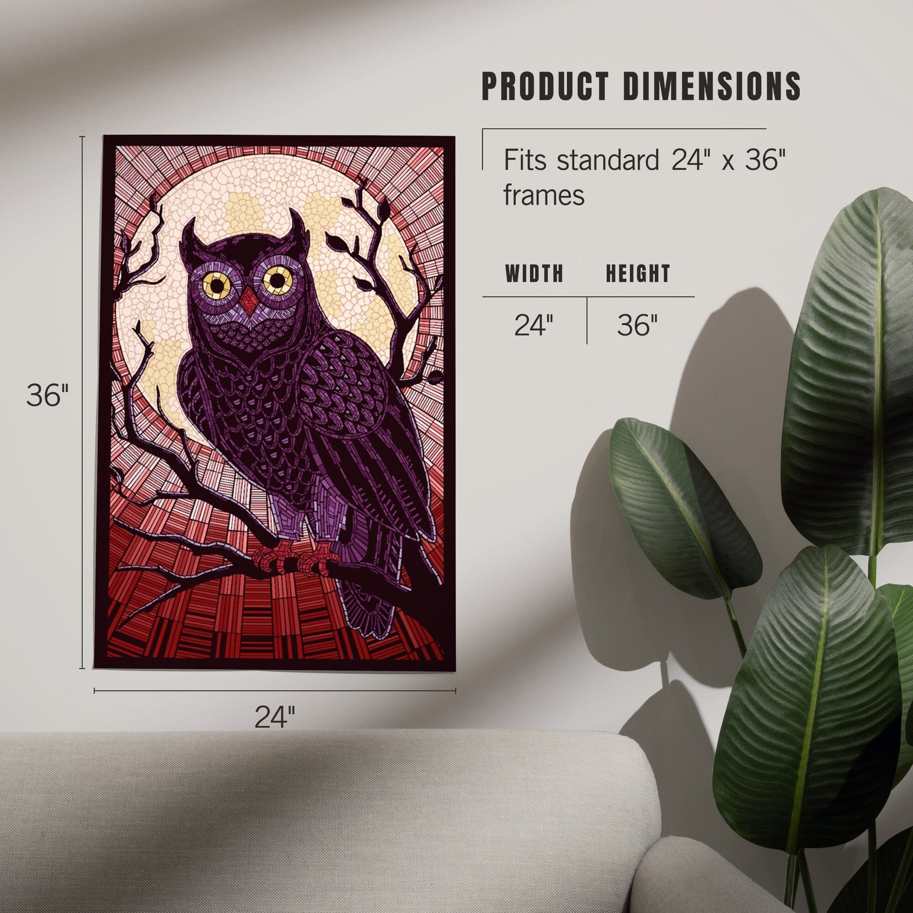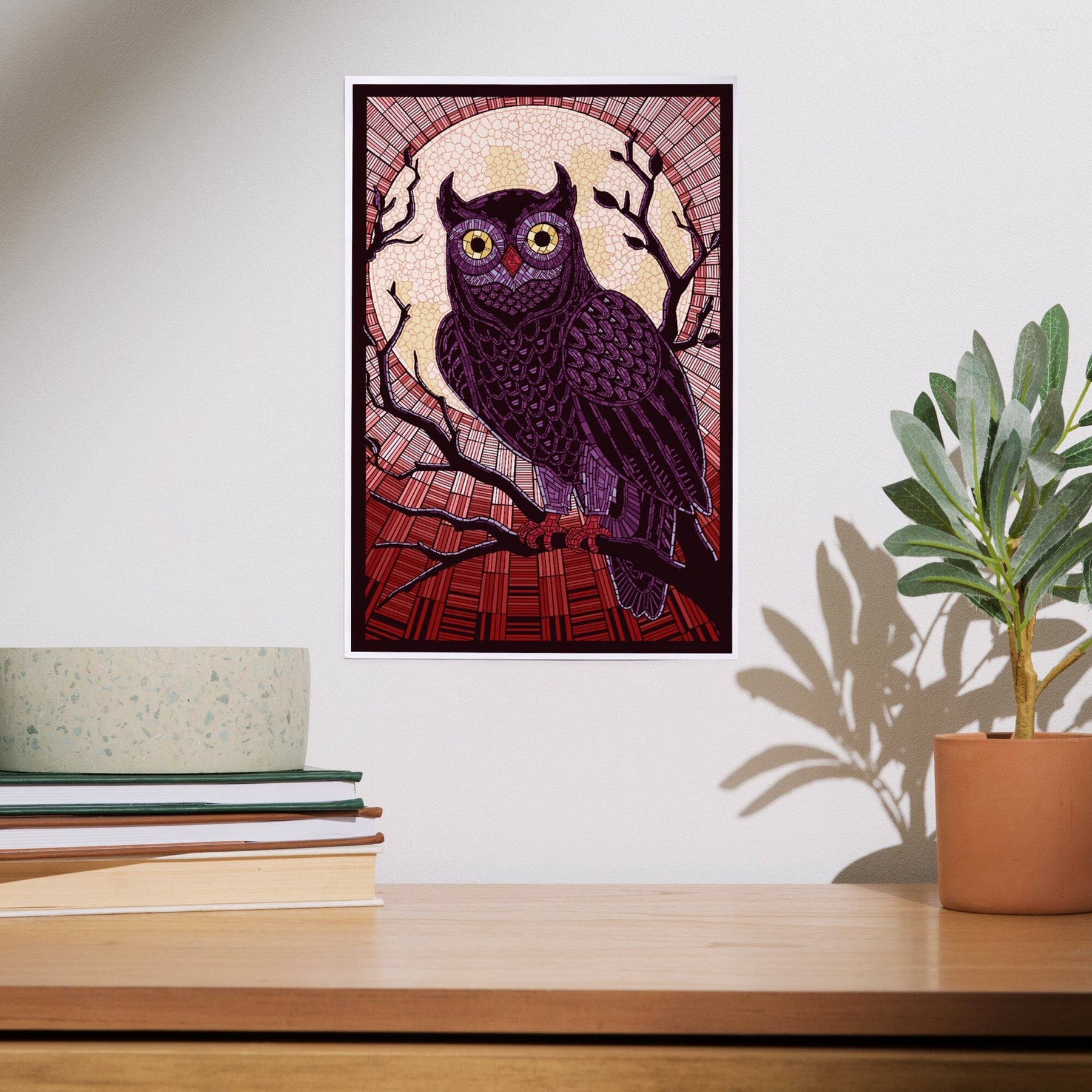 Owl, Paper Mosaic (Red), Art & Giclee Prints Art Lantern Press