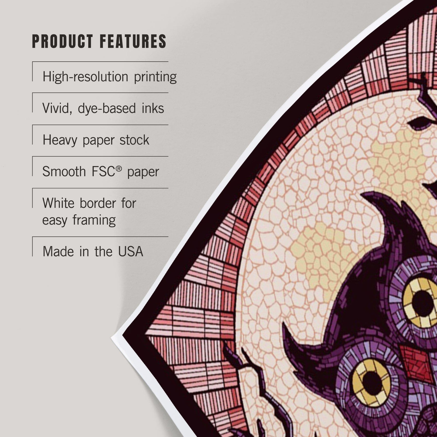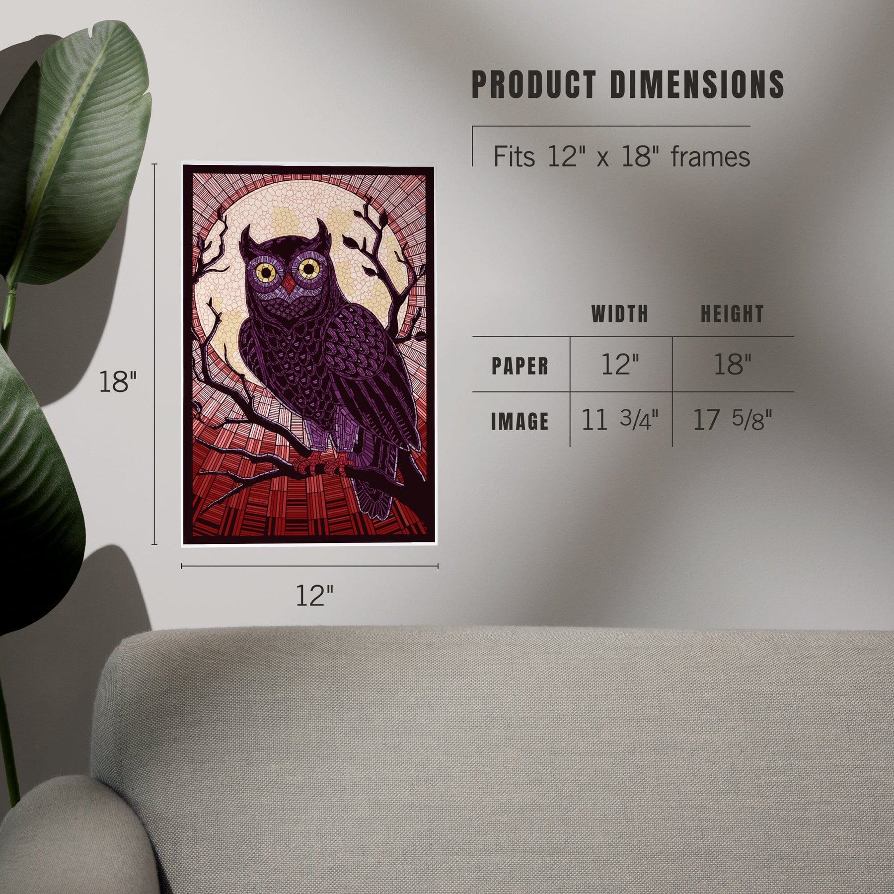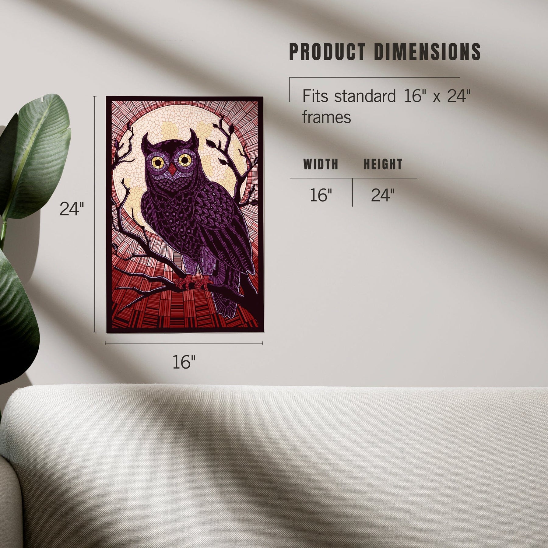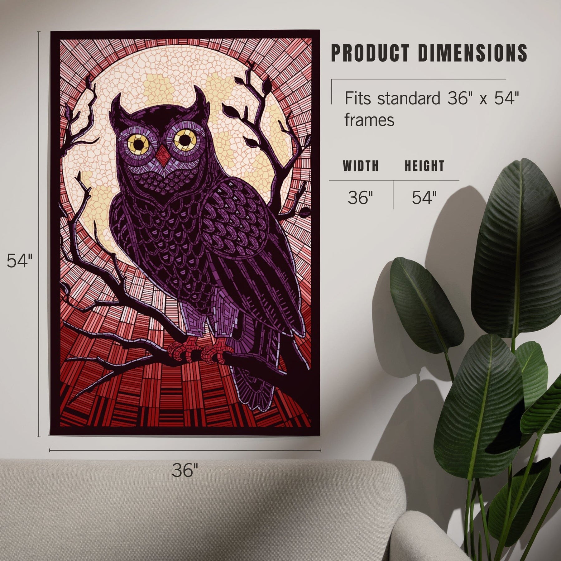 Owl, Paper Mosaic (Red), Art & Giclee Prints Art Lantern Press