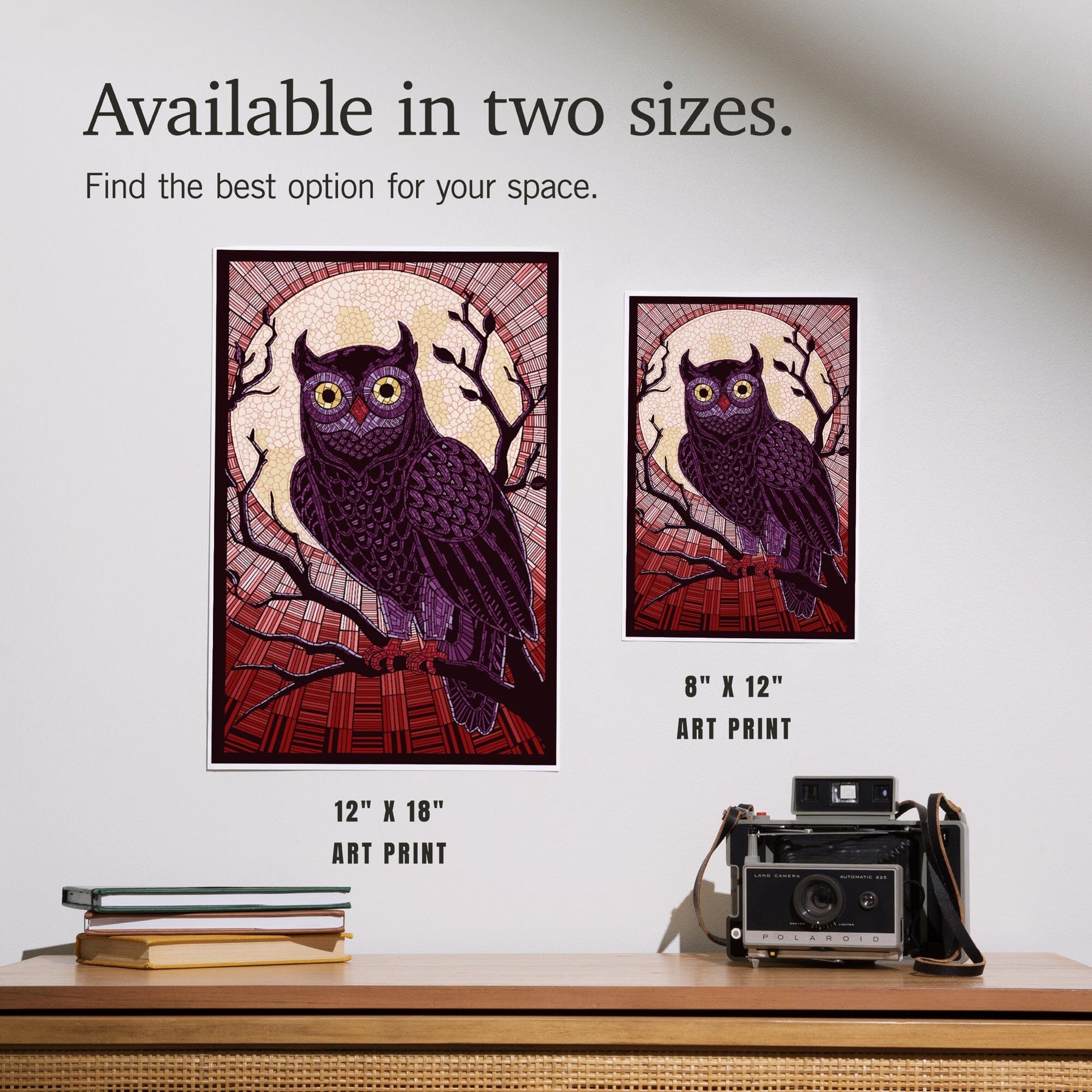 Owl, Paper Mosaic (Red), Art & Giclee Prints