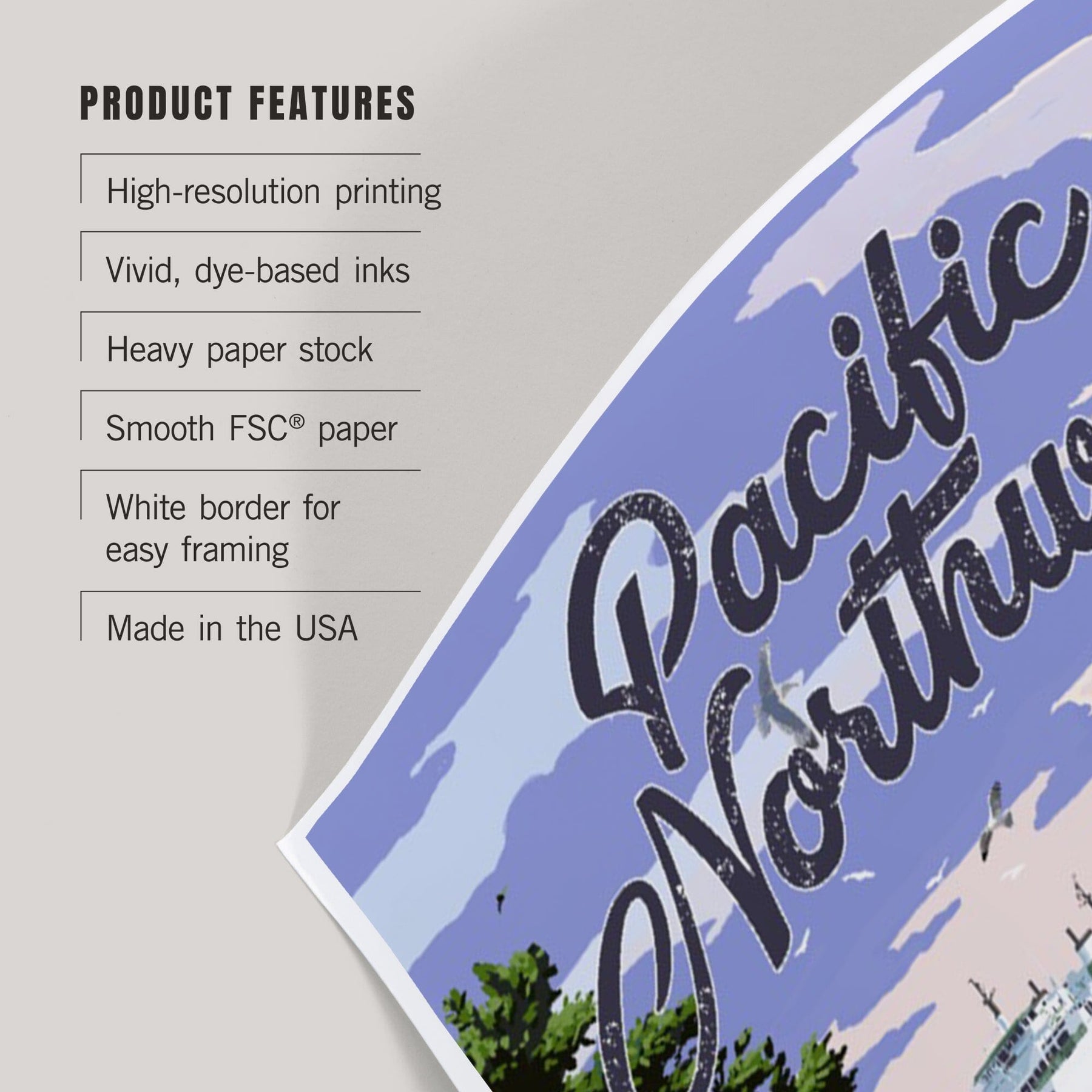 Pacific Northwest, Bike and Ferry, Art & Giclee Prints Art Lantern Press