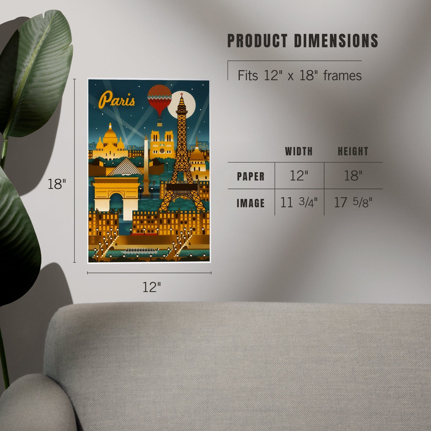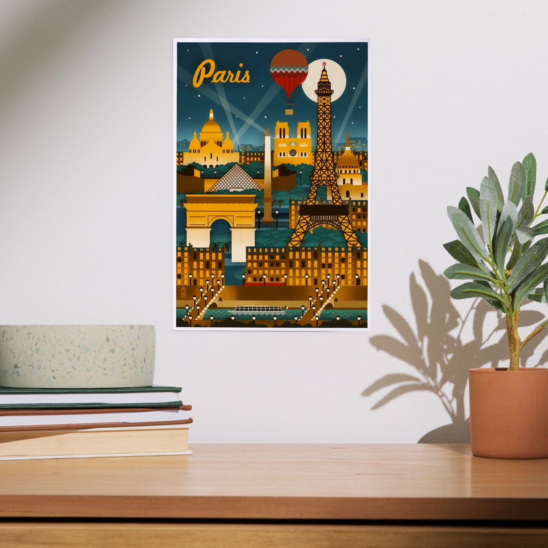 Paris, France, Retro Skyline, Art & Giclee Prints Art Lantern Press