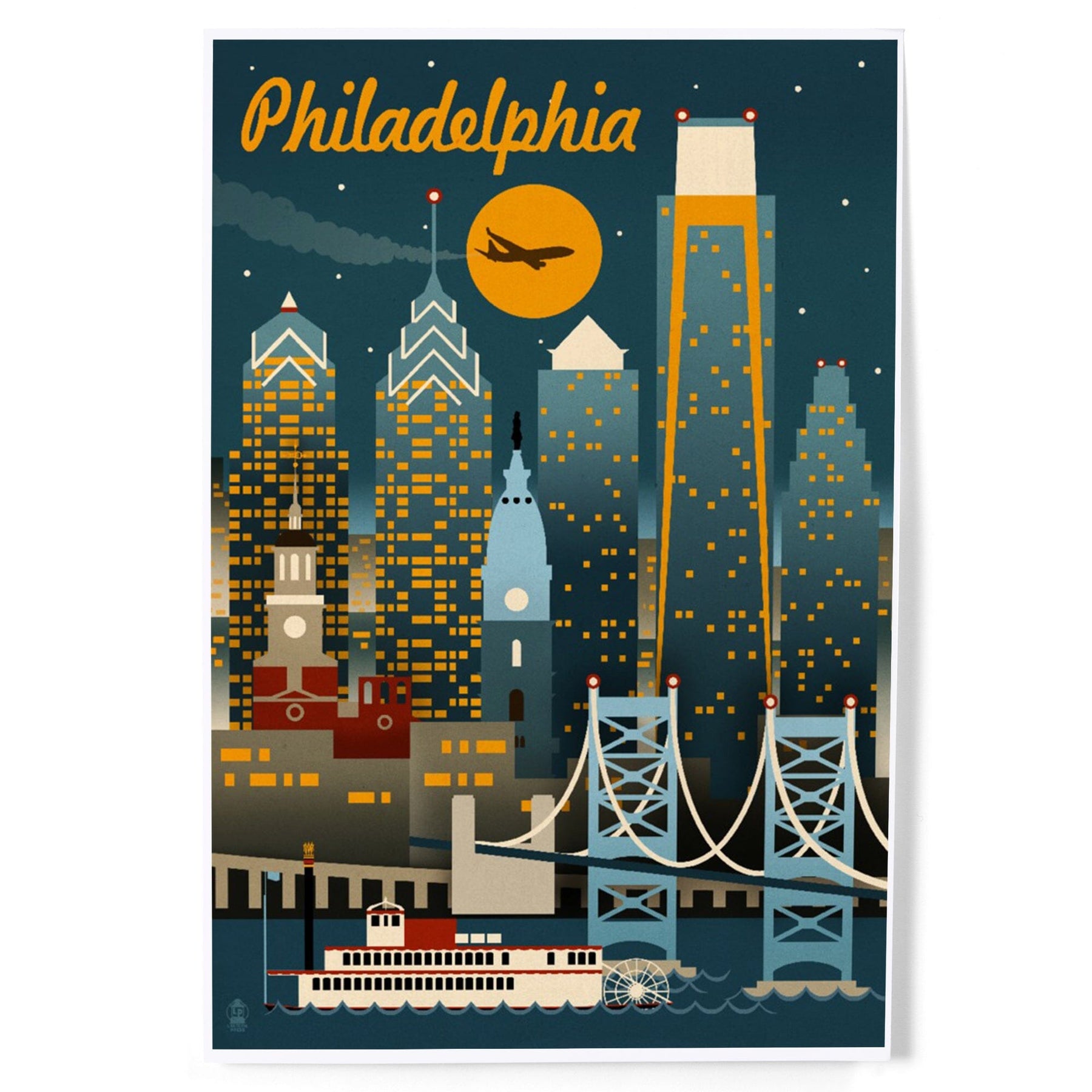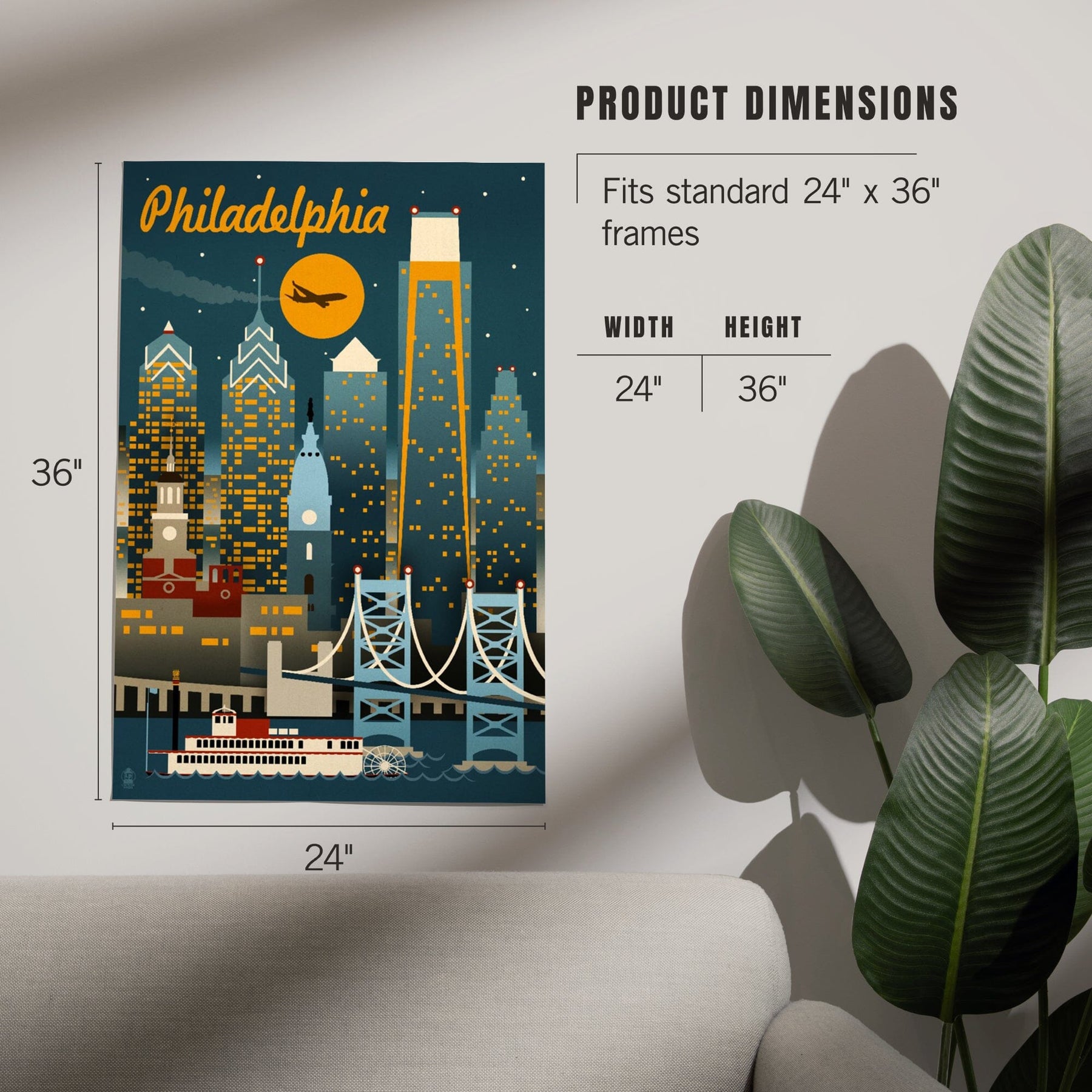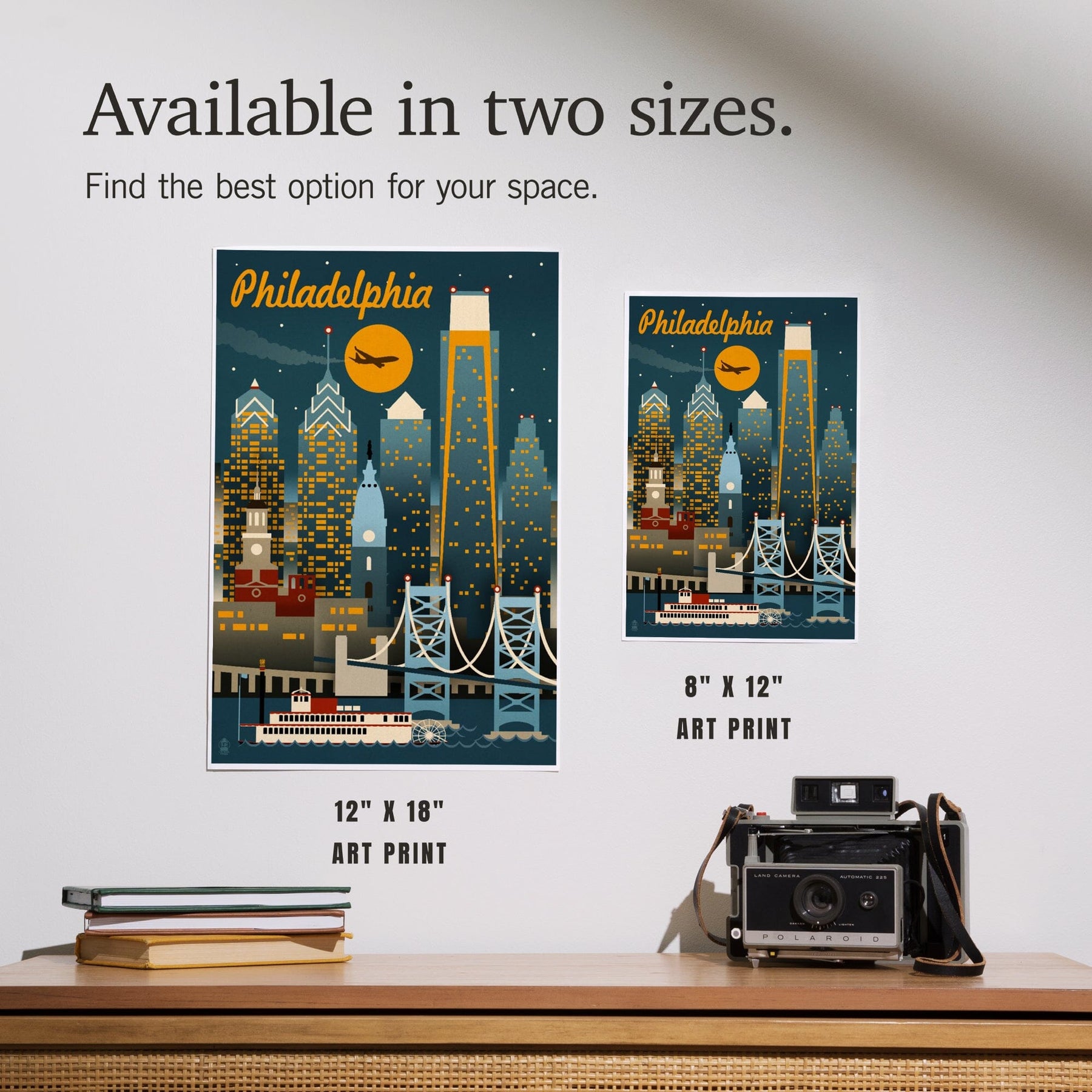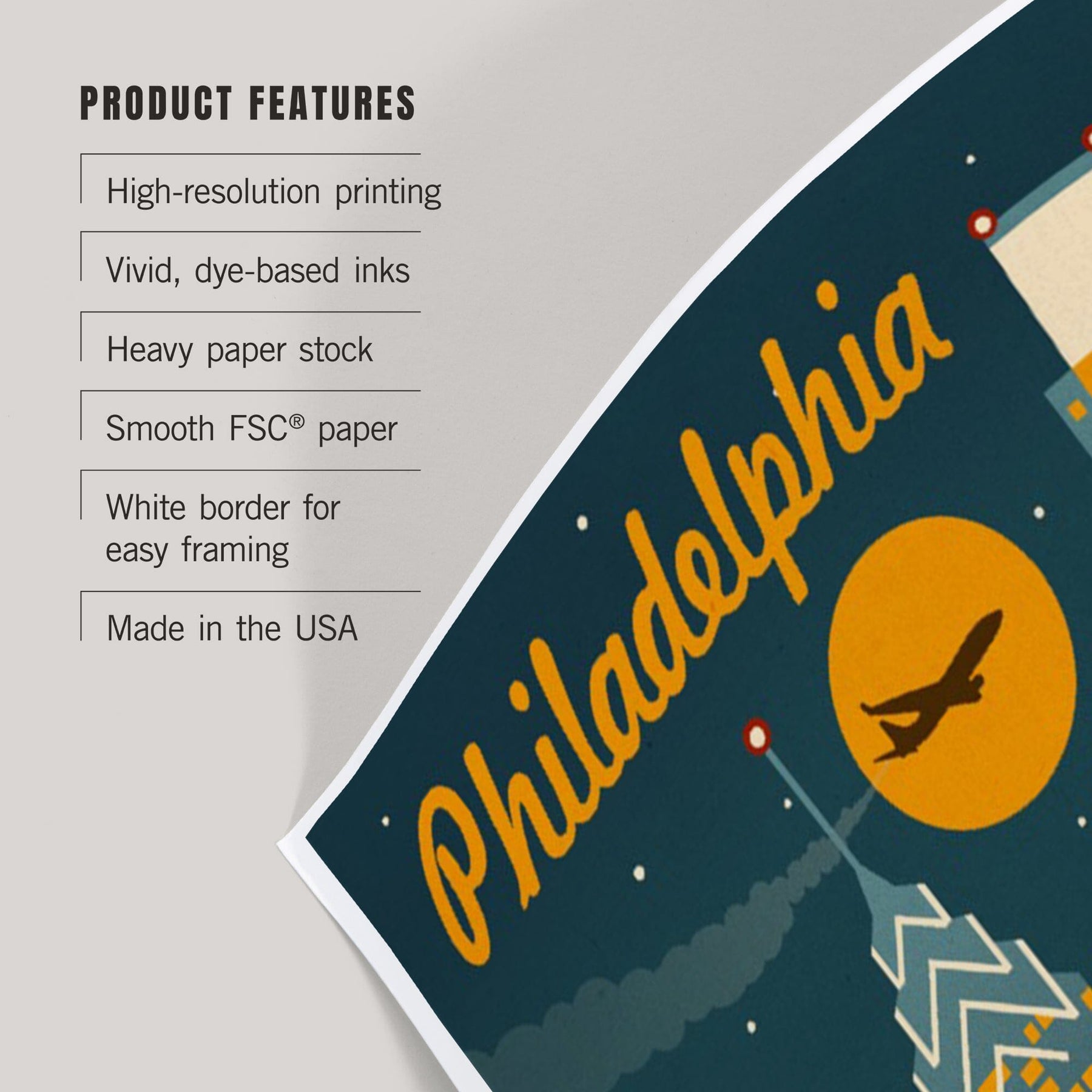 Philadelphia, Pennsylvania, ND, Retro Skyline, Art & Giclee Prints Art Lantern Press