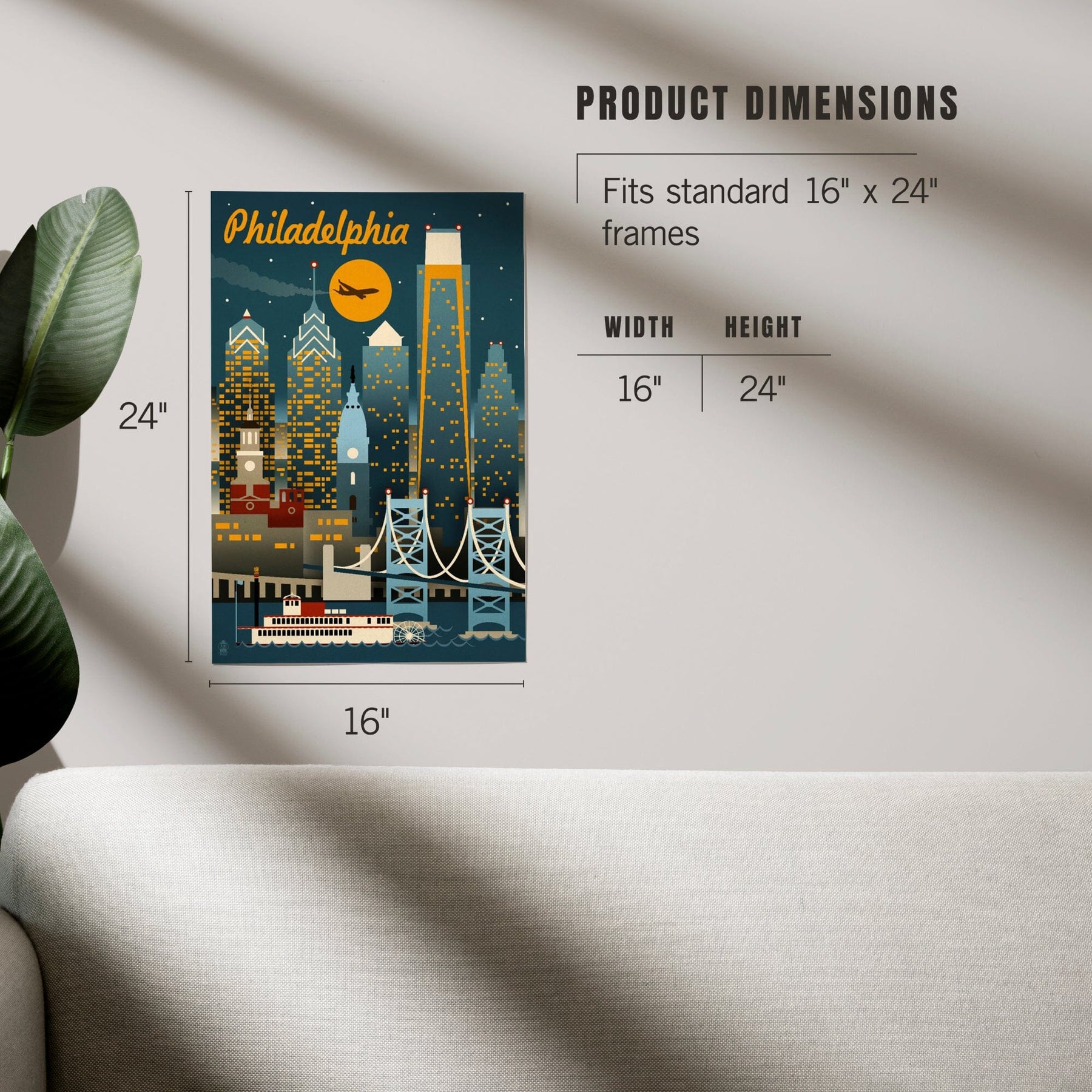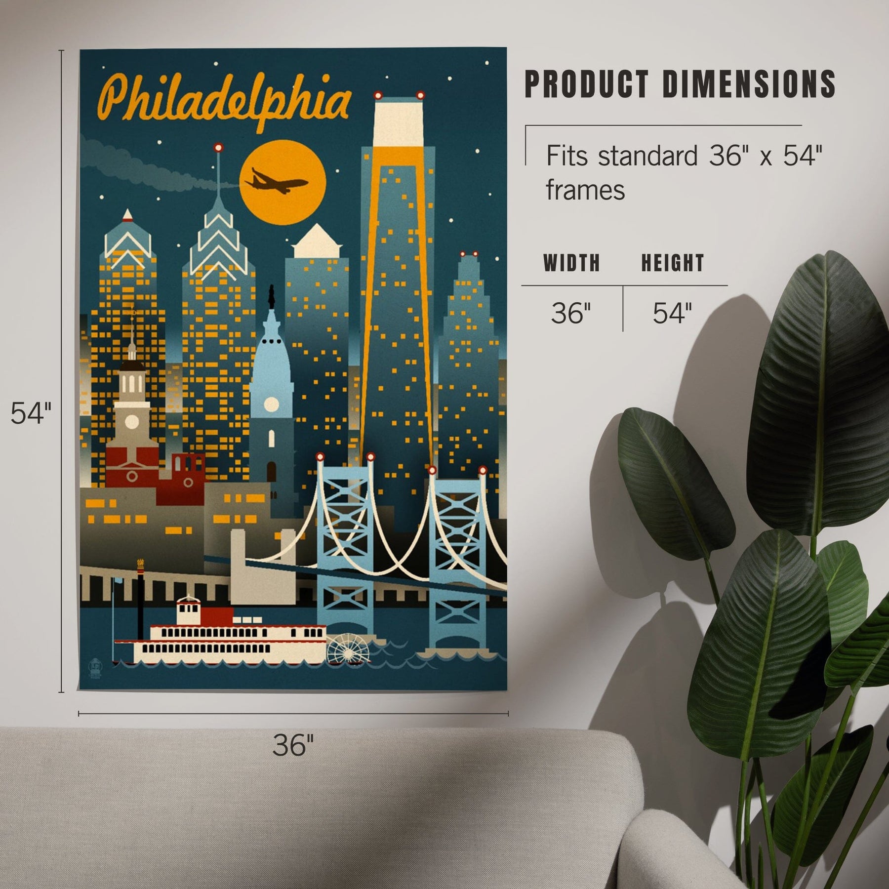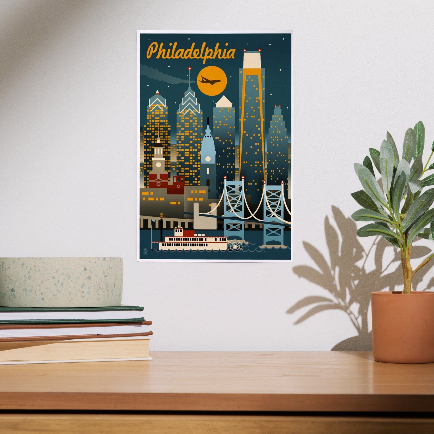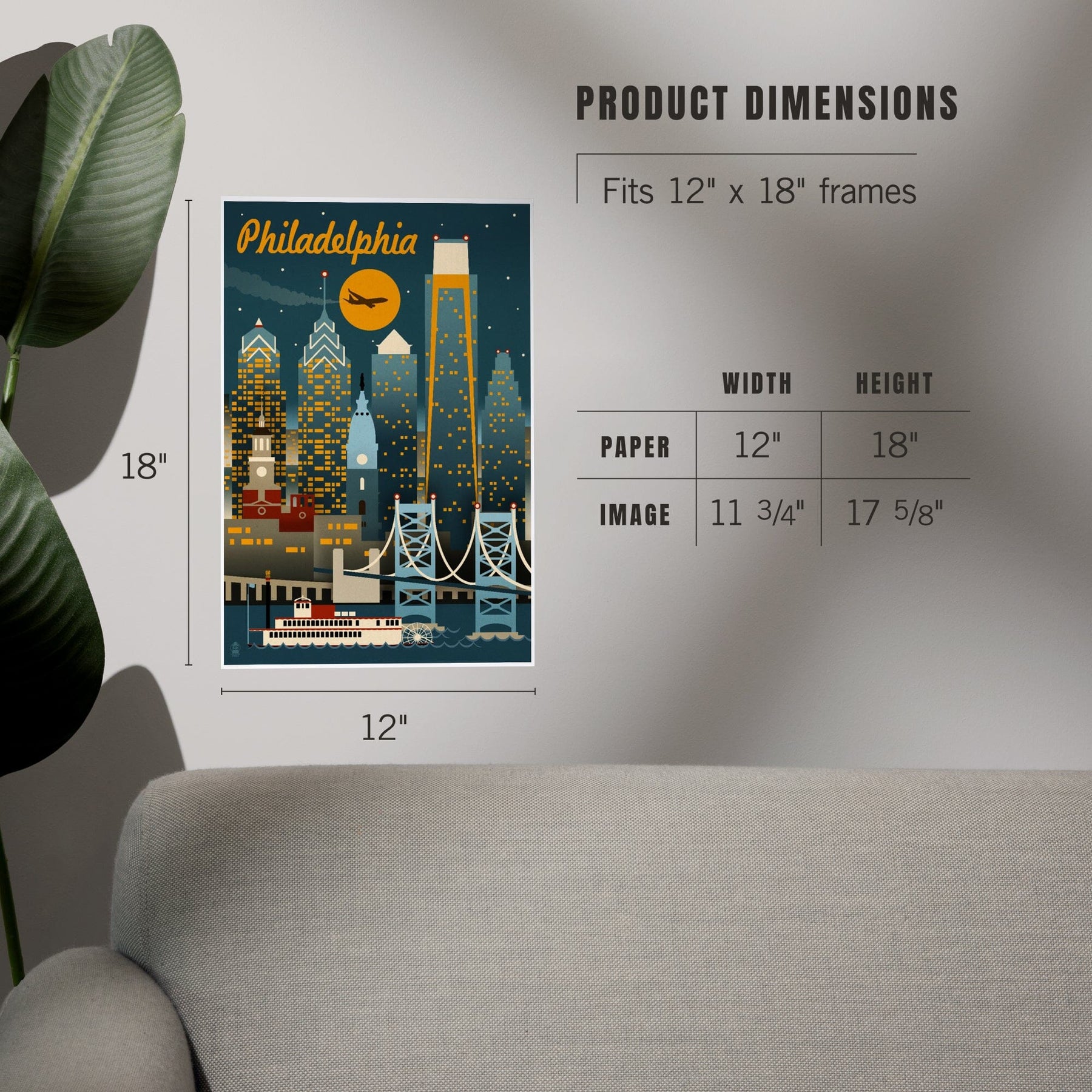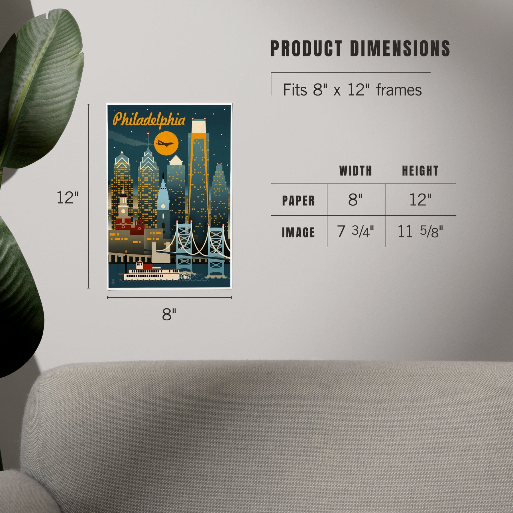 Philadelphia, Pennsylvania, ND, Retro Skyline, Art & Giclee Prints Art Lantern Press