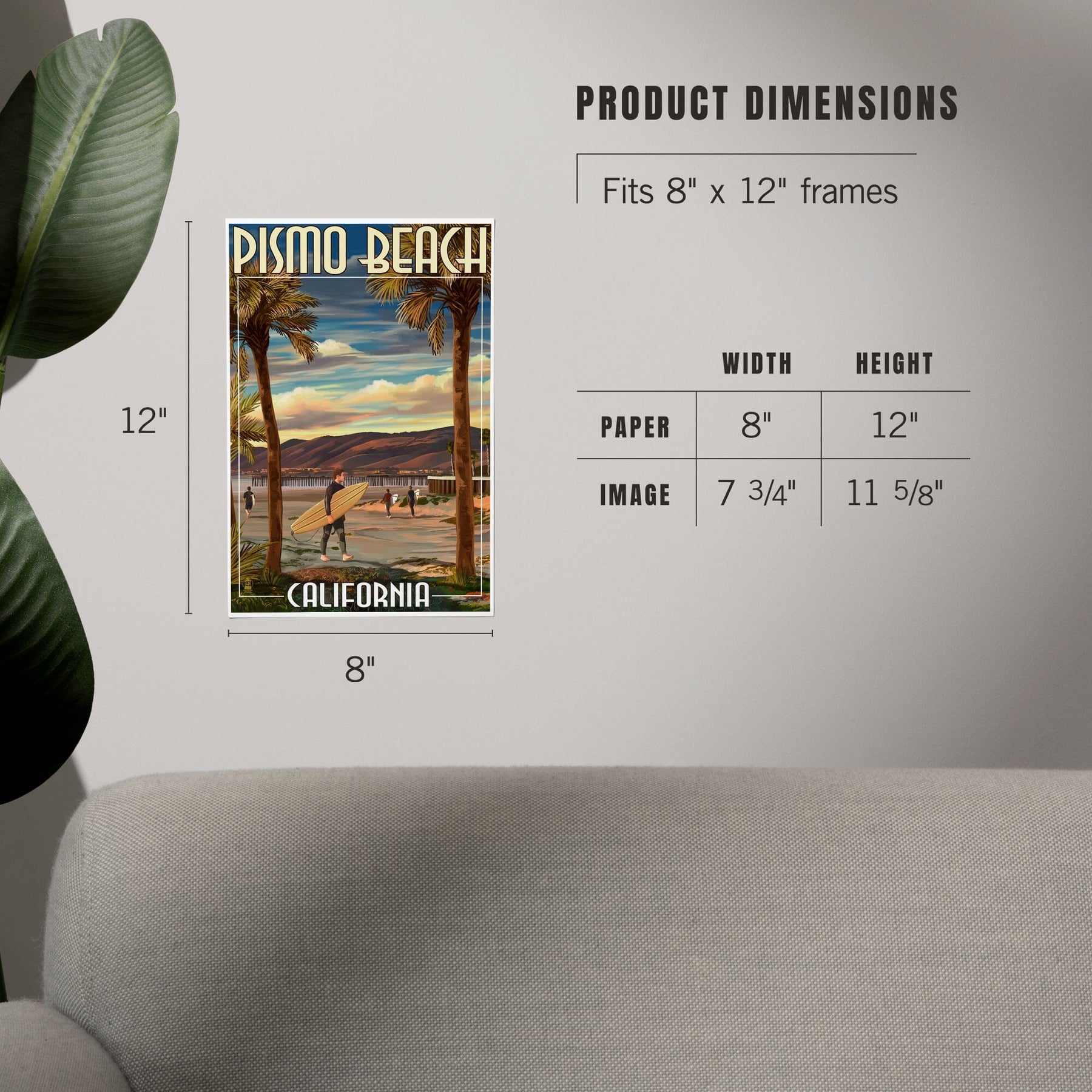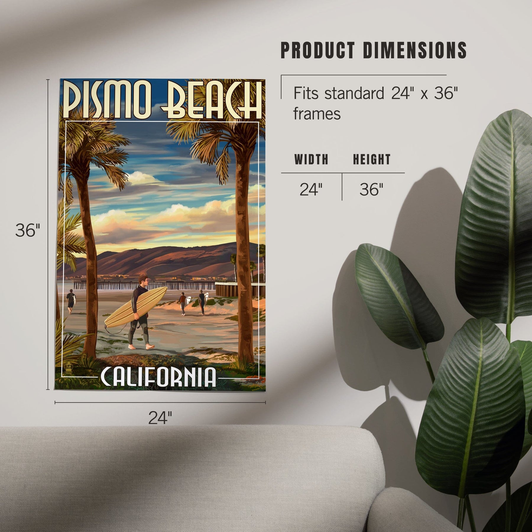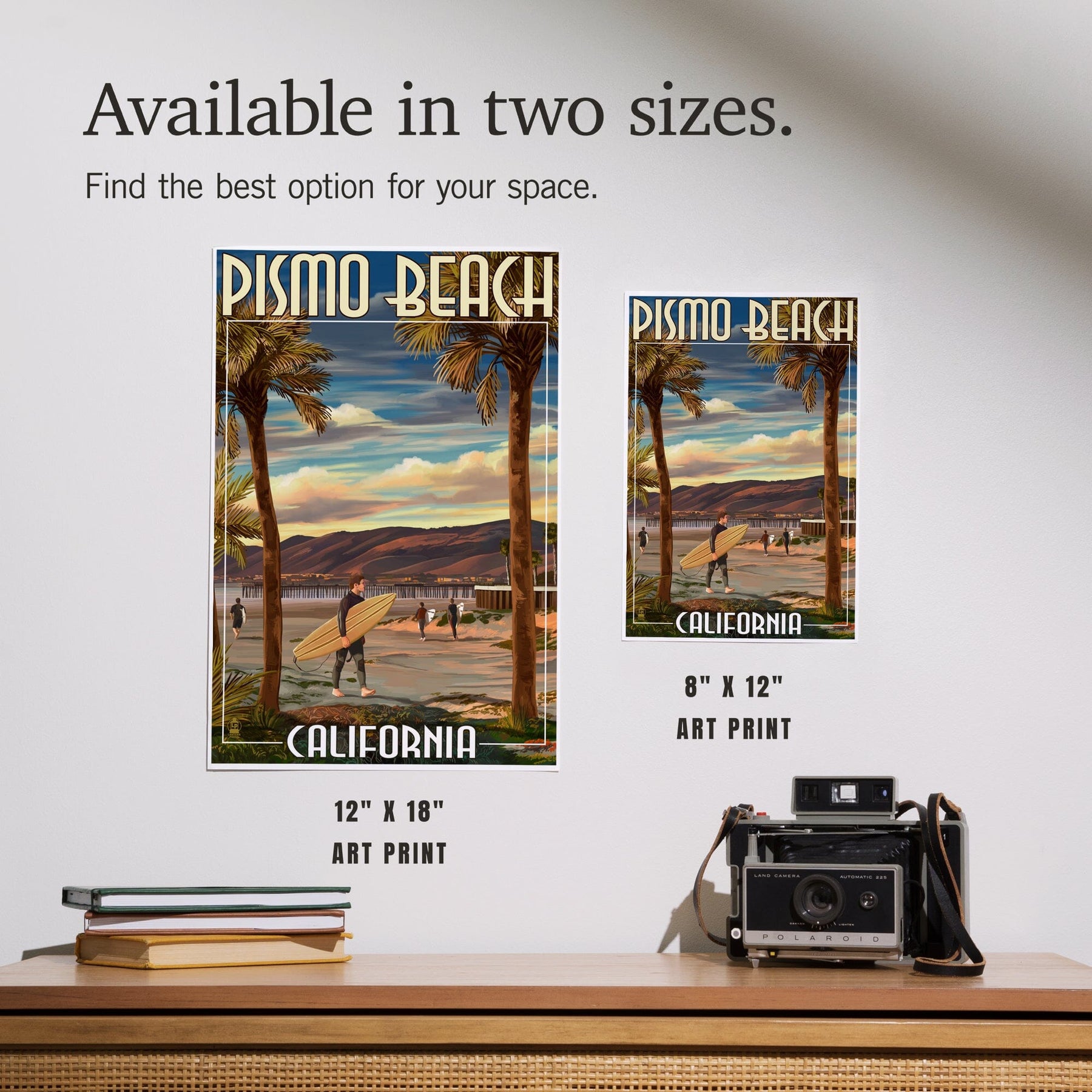 Pismo Beach, California, Surfer and Pier, Art & Giclee Prints Art Lantern Press