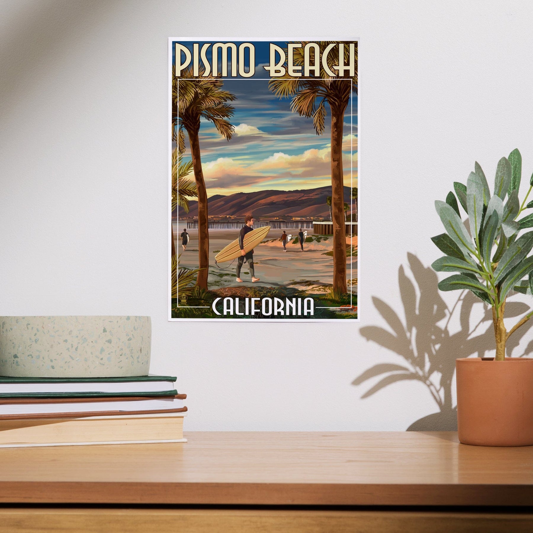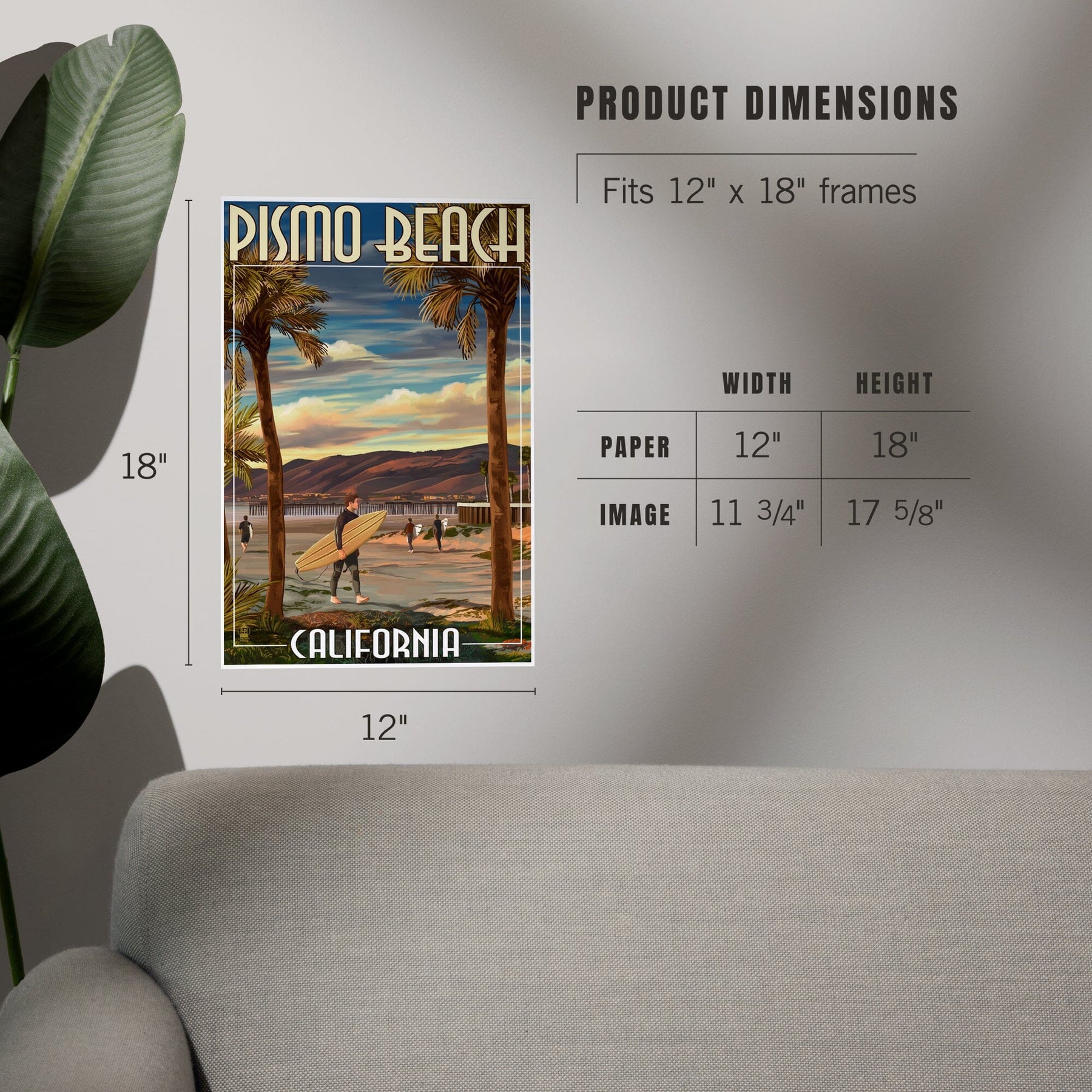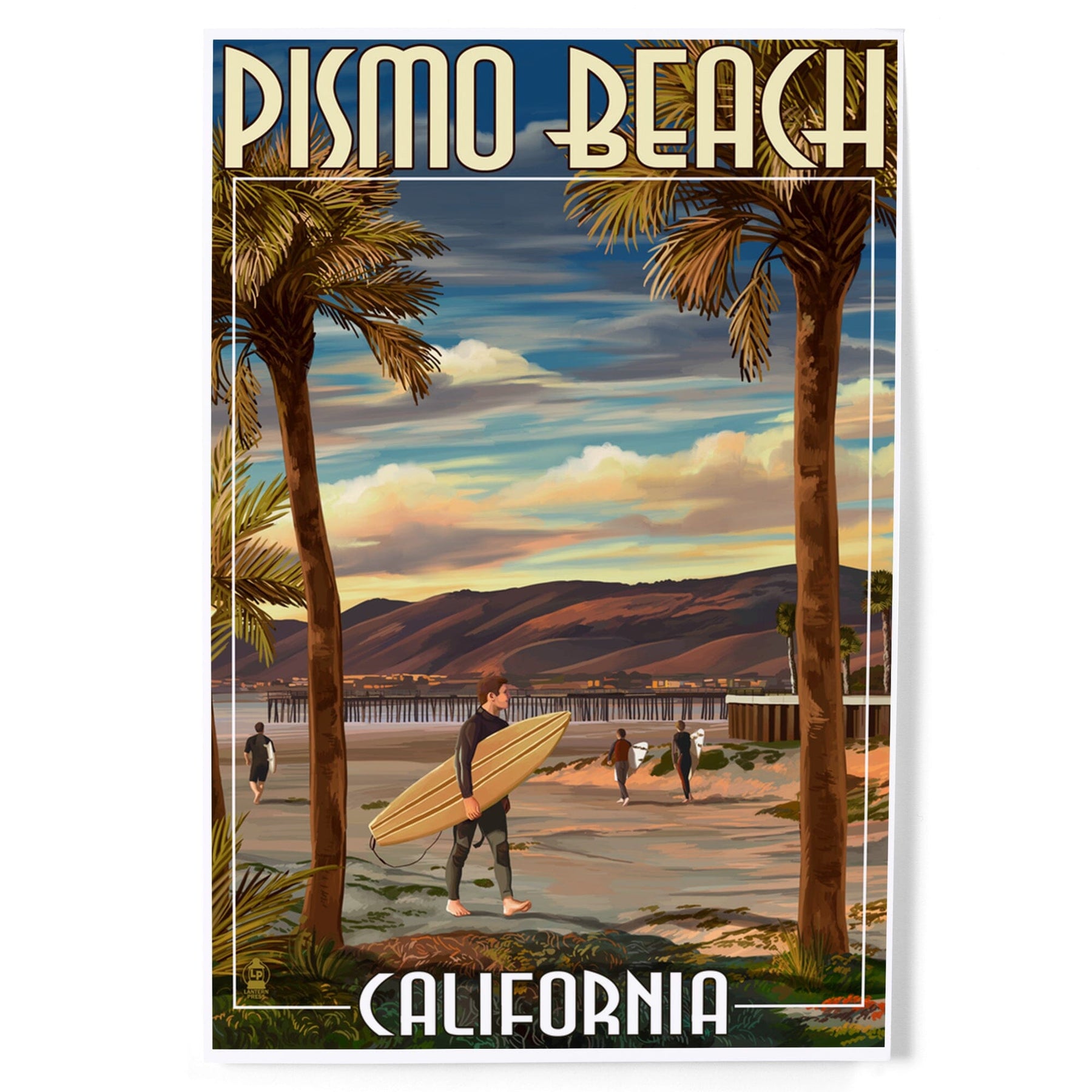 Pismo Beach, California, Surfer and Pier, Art & Giclee Prints Art Lantern Press