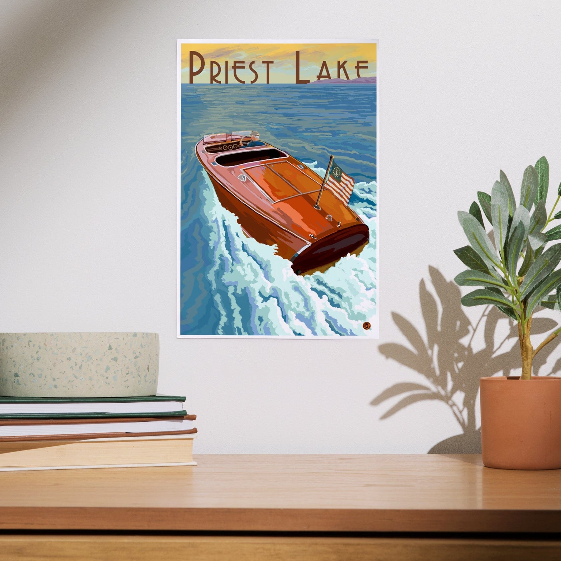 Priest Lake, Idaho, Wooden Boat, Art & Giclee Prints Art Lantern Press
