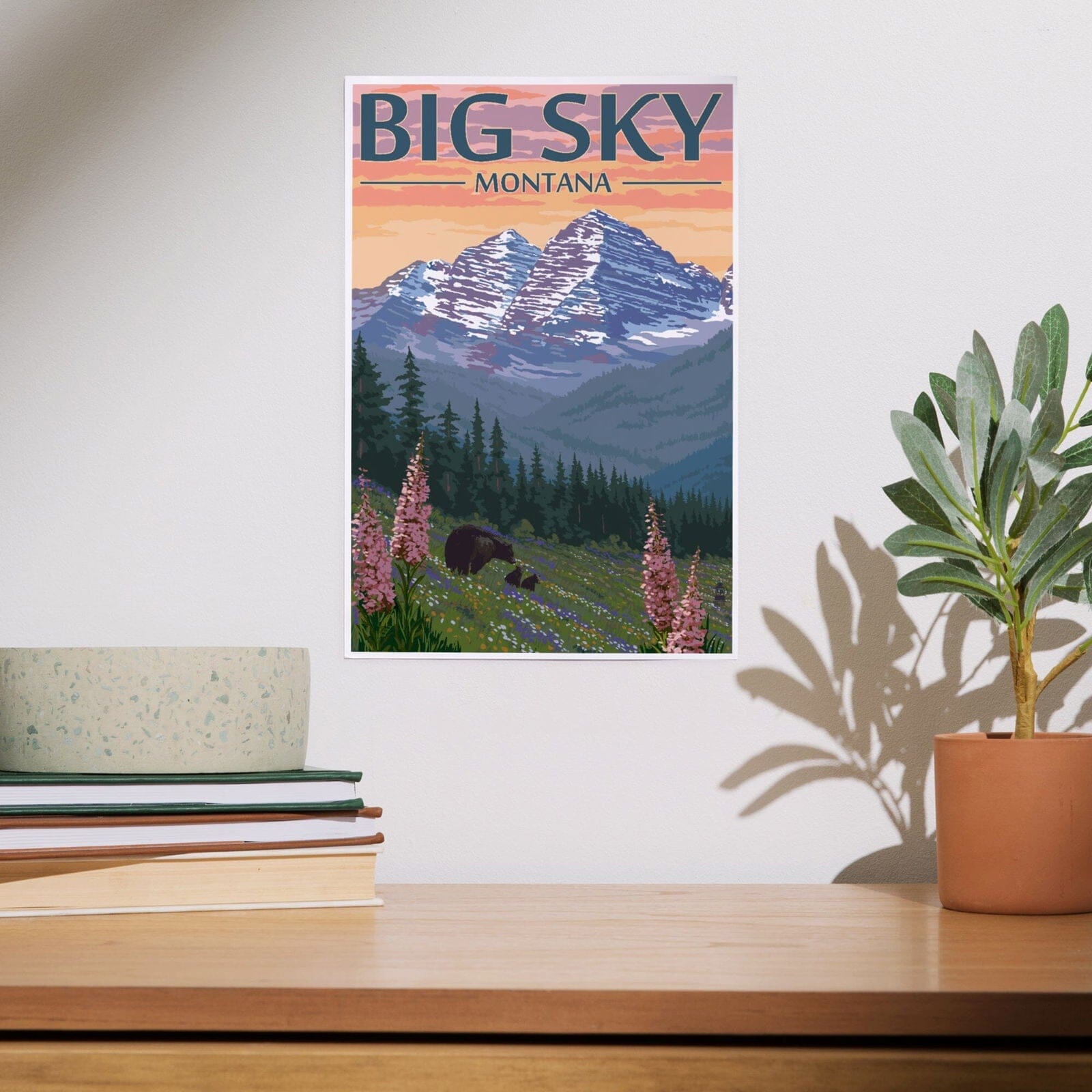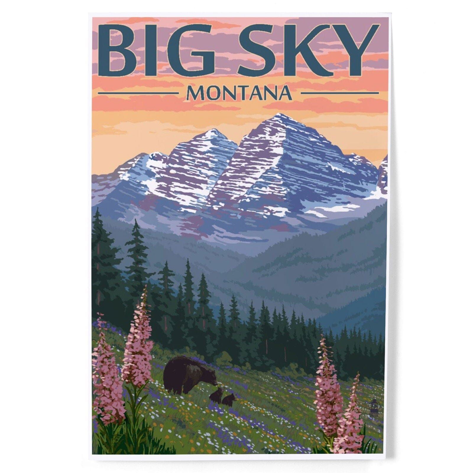 Big Sky, Montana, Bear and Spring Flowers, Art & Giclee Prints Art Lantern Press