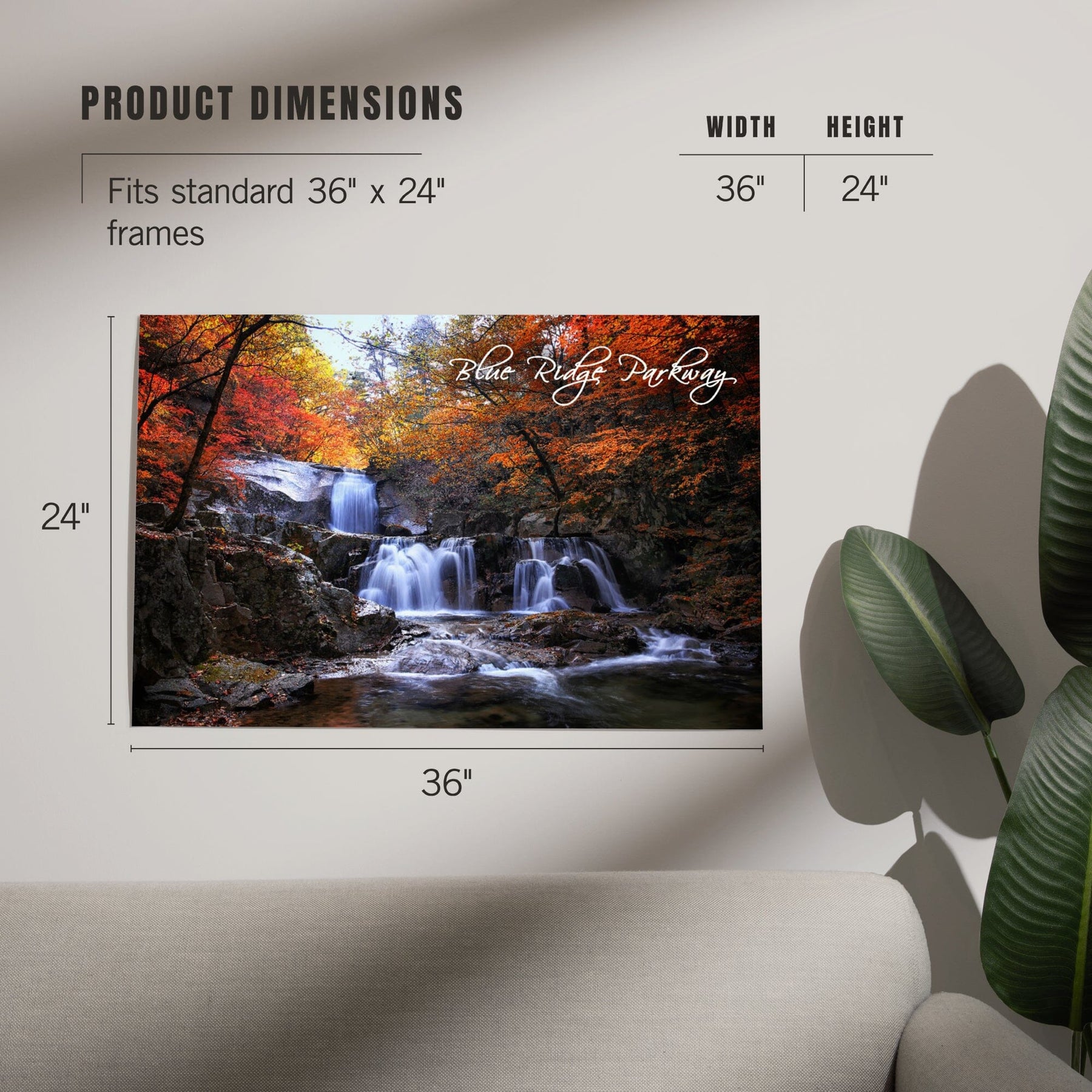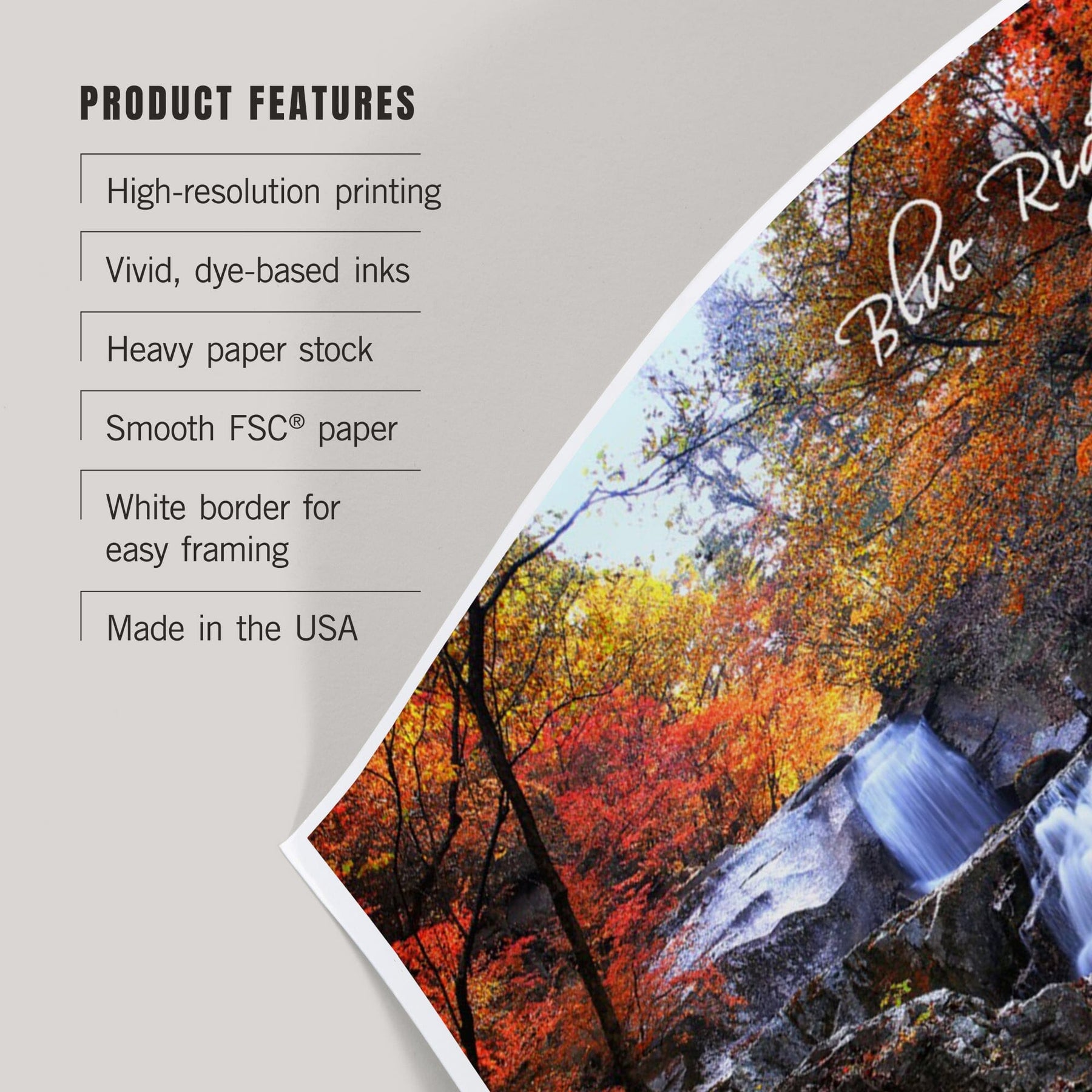 Blue Ridge Parkway, Waterfall and Autumn Colors, Art & Giclee Prints