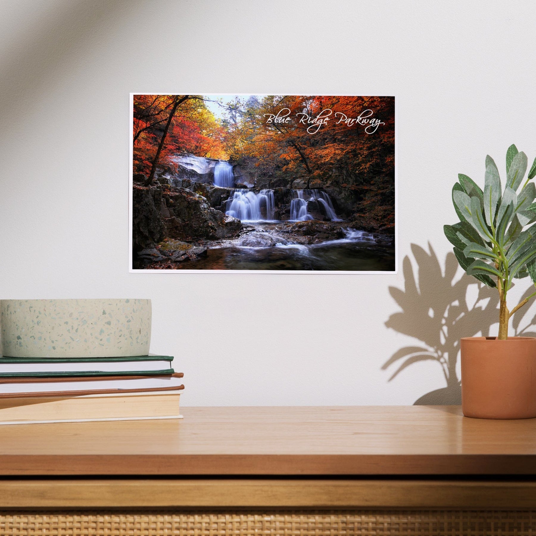 Blue Ridge Parkway, Waterfall and Autumn Colors, Art & Giclee Prints - Lantern Press