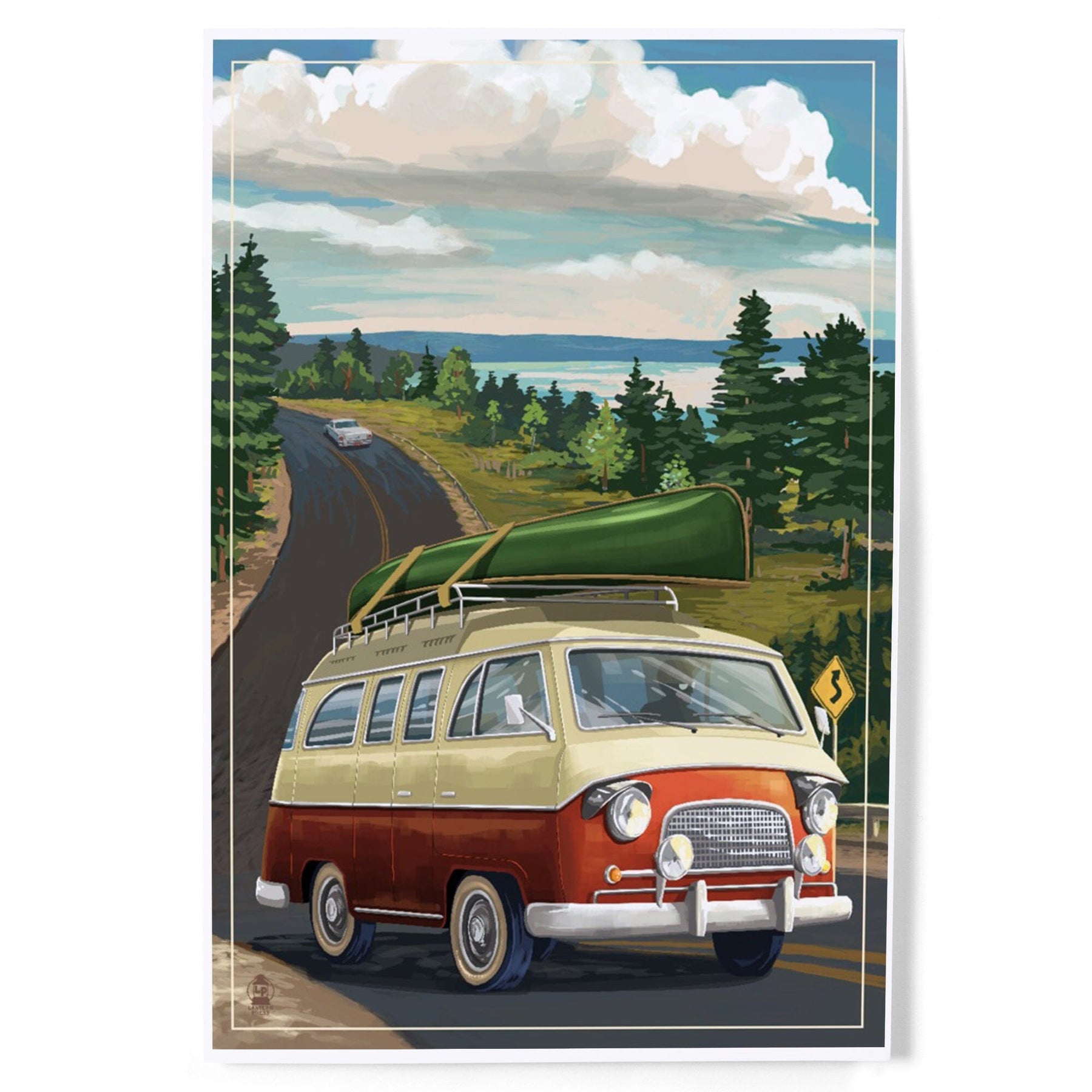 Camper Van, Canoe, Art & Giclee Prints Art Lantern Press 8 x 12 Art Print