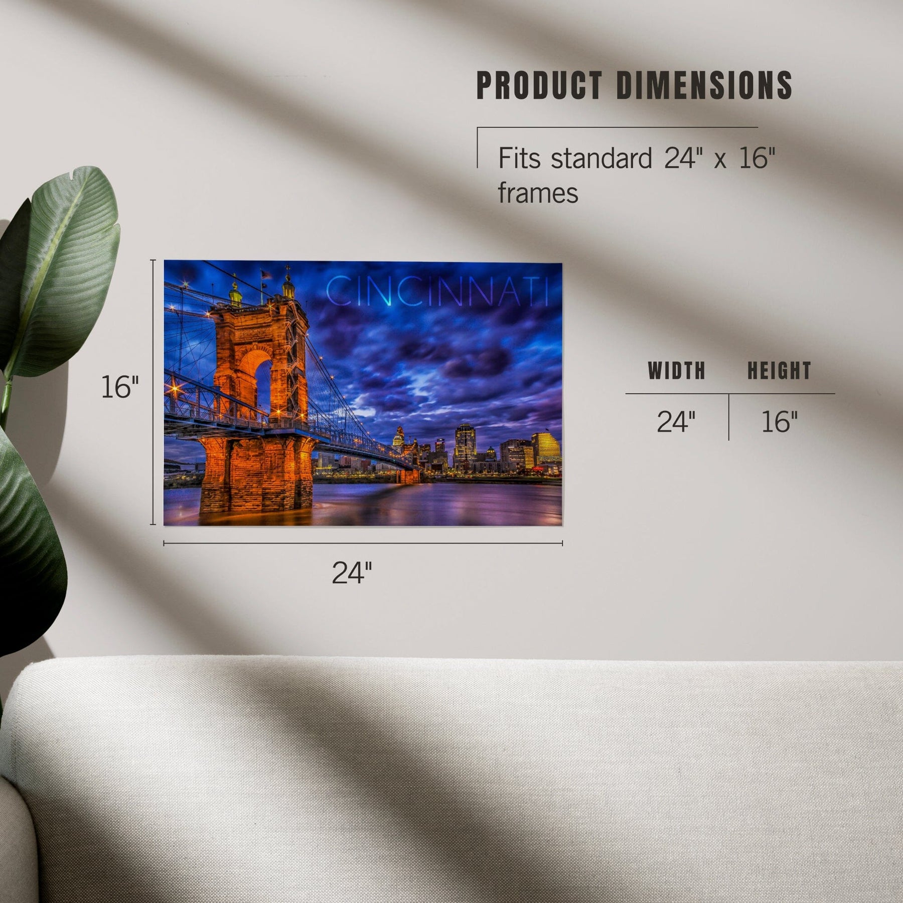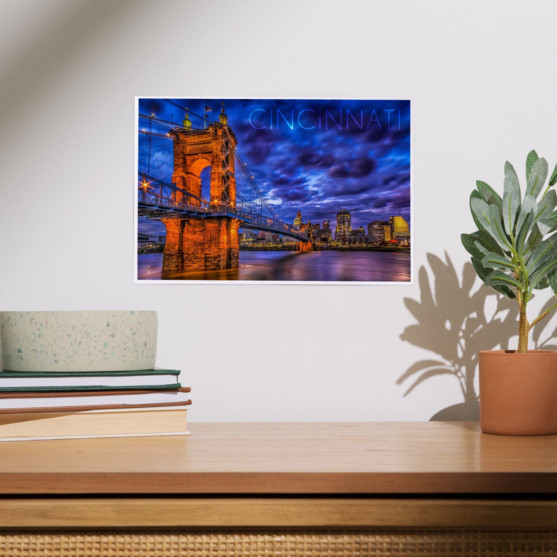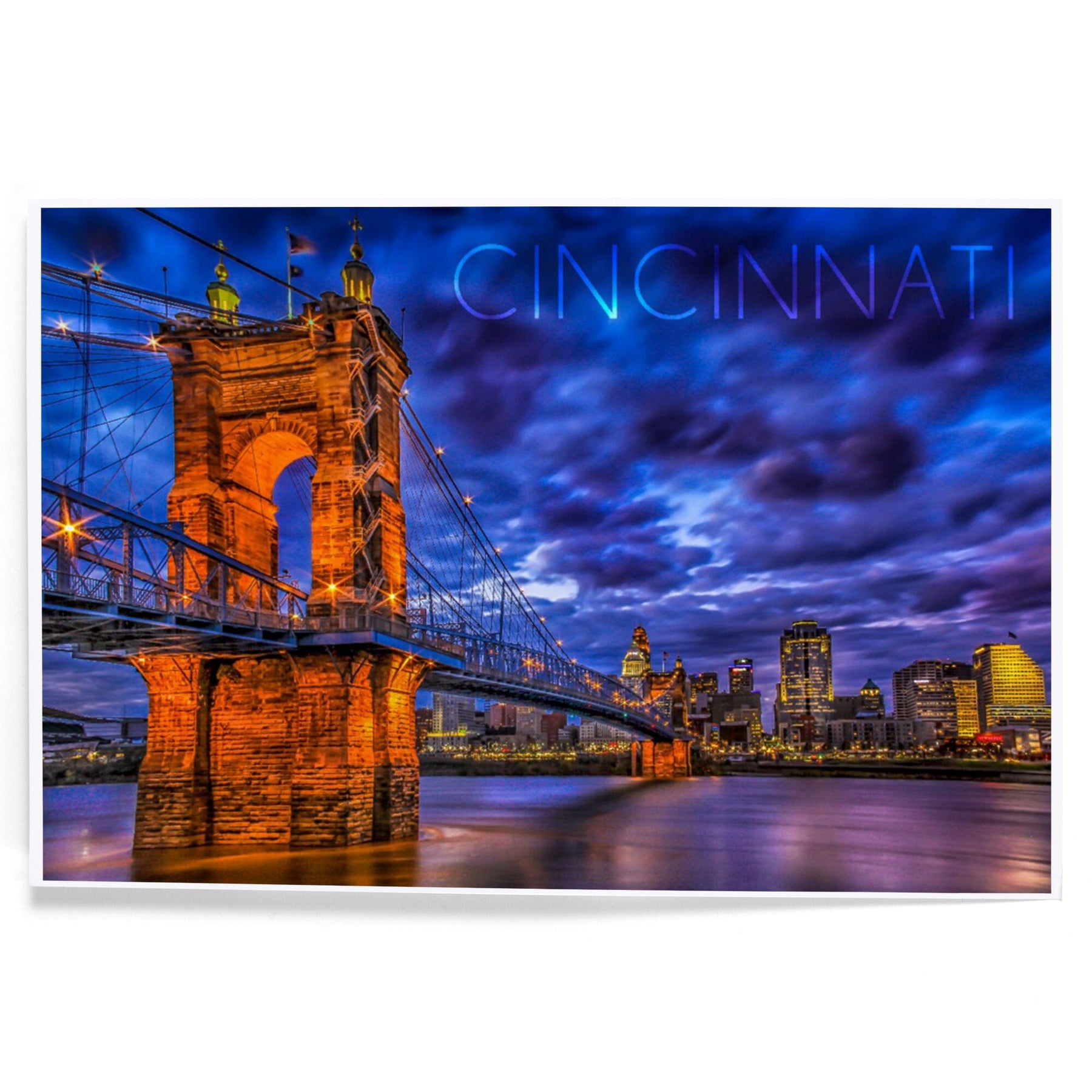 Cincinnati, Ohio, John A. Roebling Suspension Bridge at Night, Art & Giclee Prints - Lantern Press