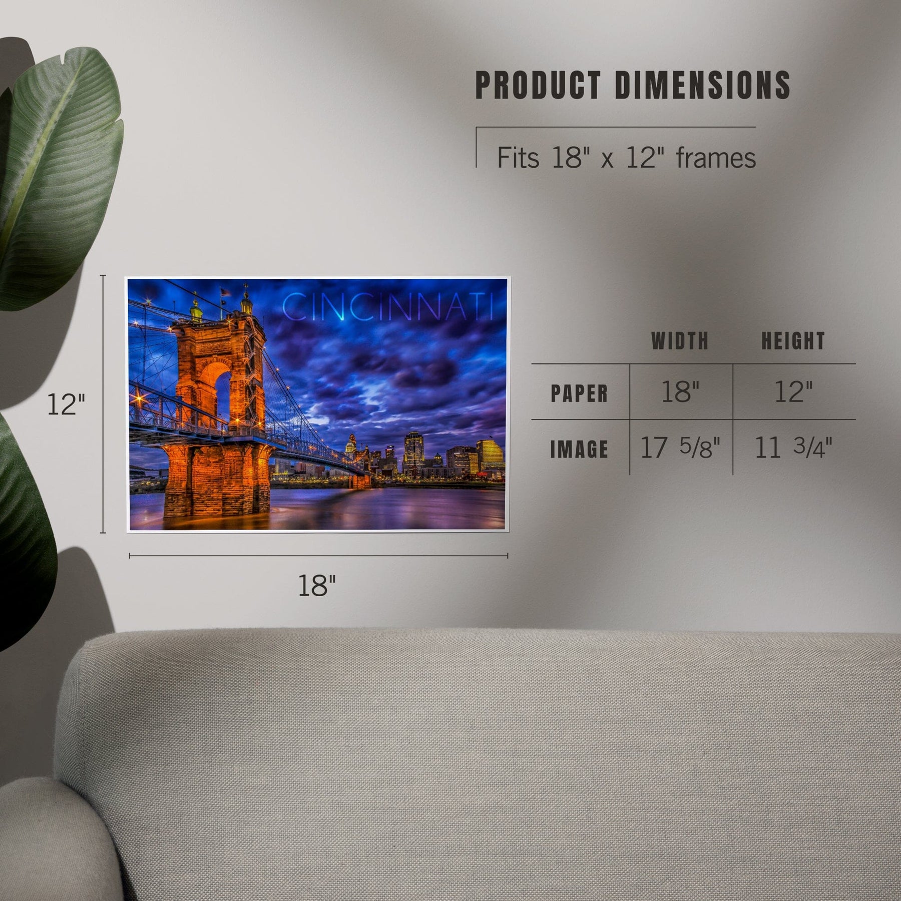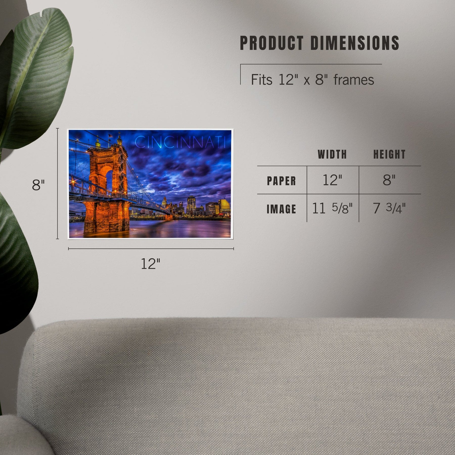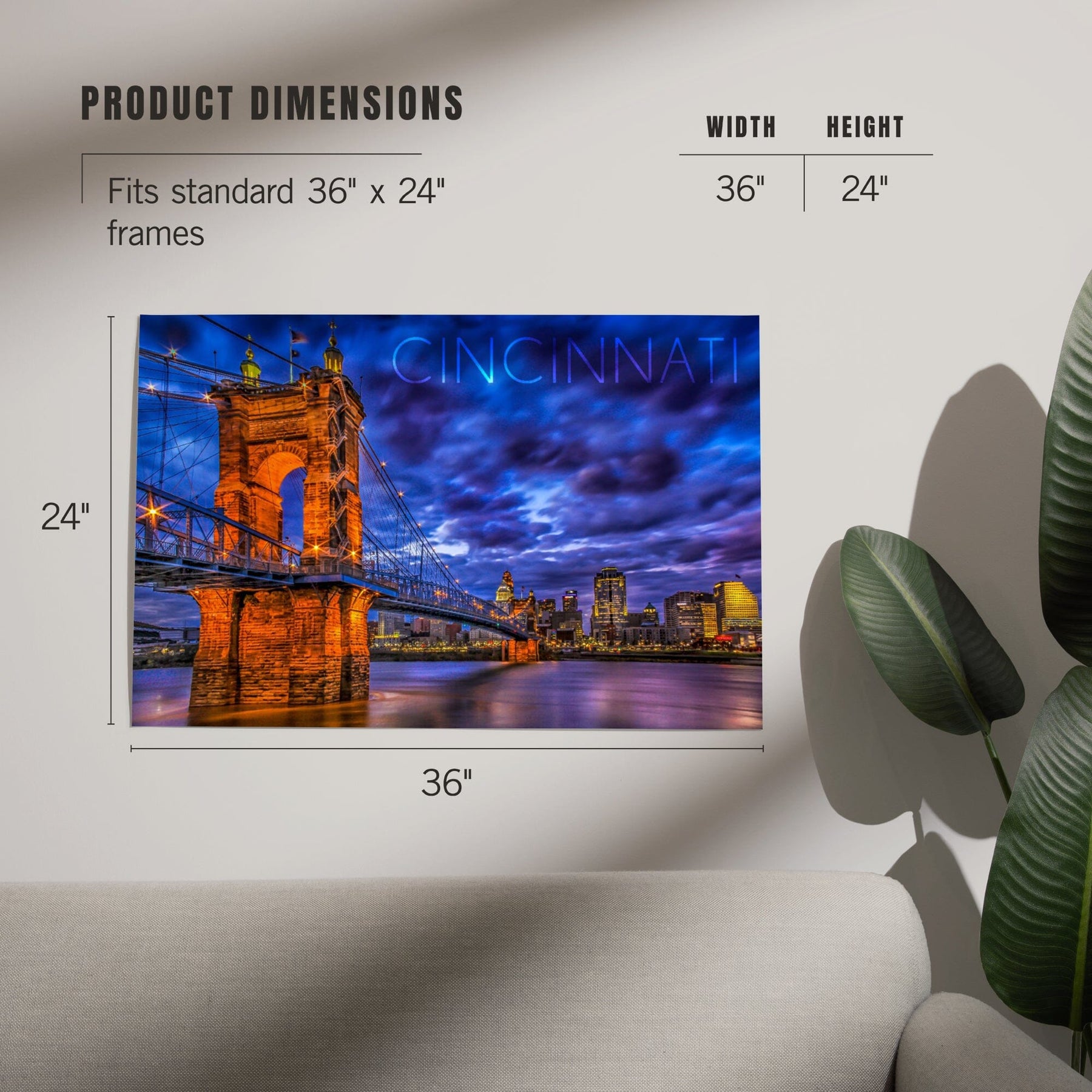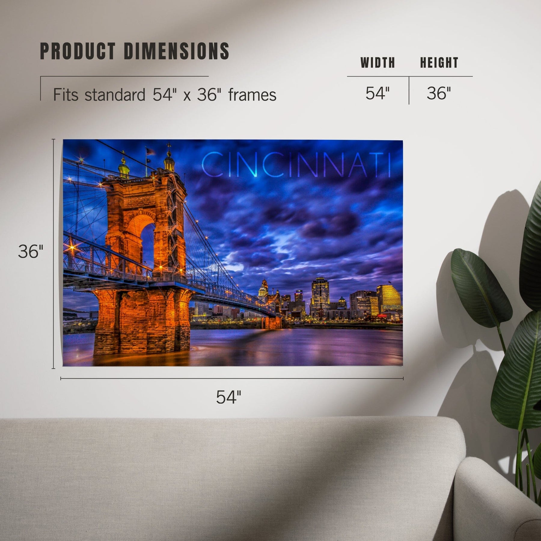Cincinnati, Ohio, John A. Roebling Suspension Bridge at Night, Art & Giclee Prints - Lantern Press