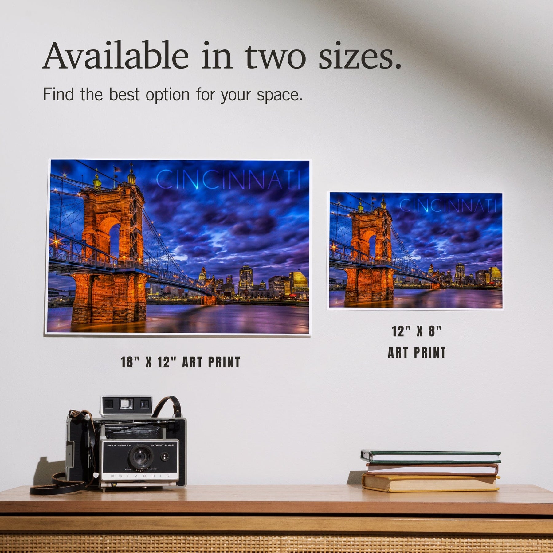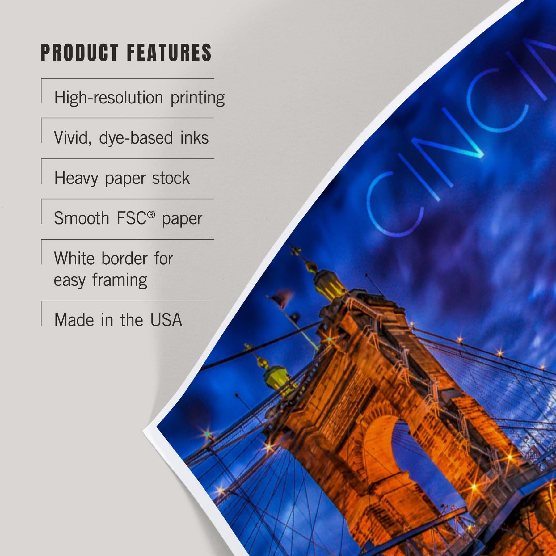 Cincinnati, Ohio, John A. Roebling Suspension Bridge at Night, Art & Giclee Prints